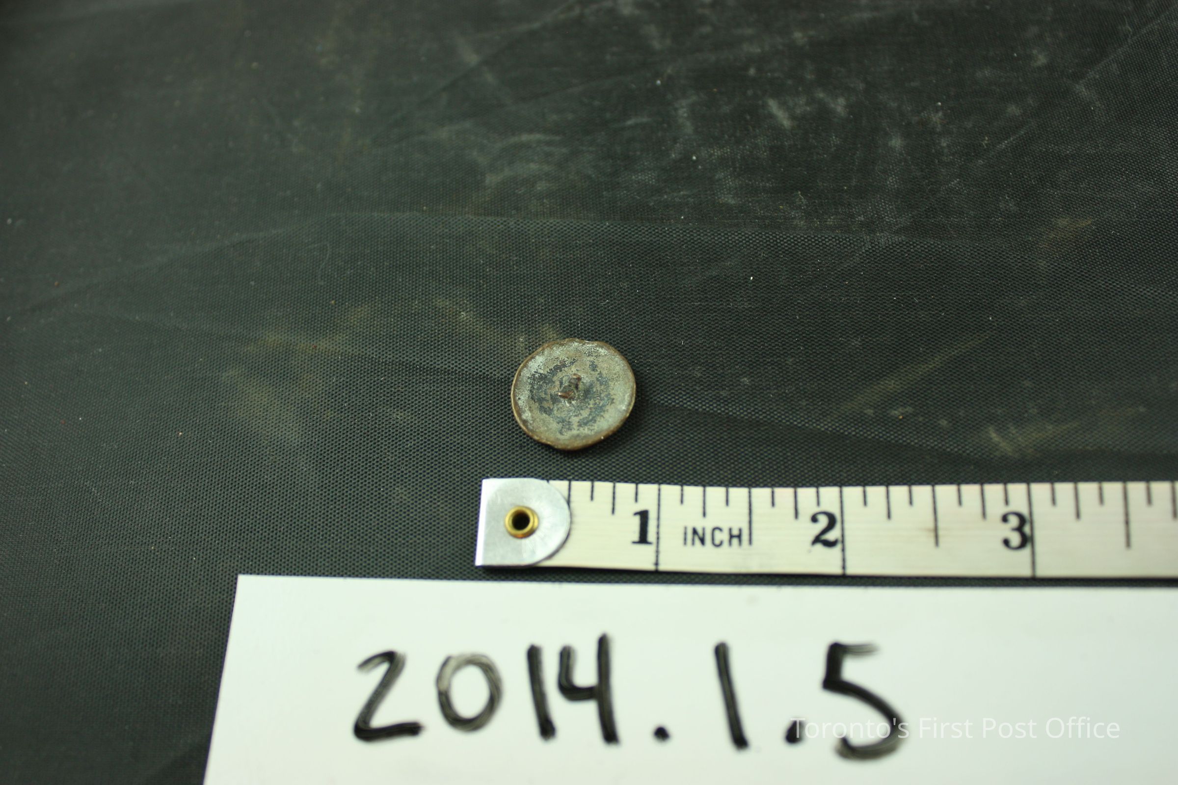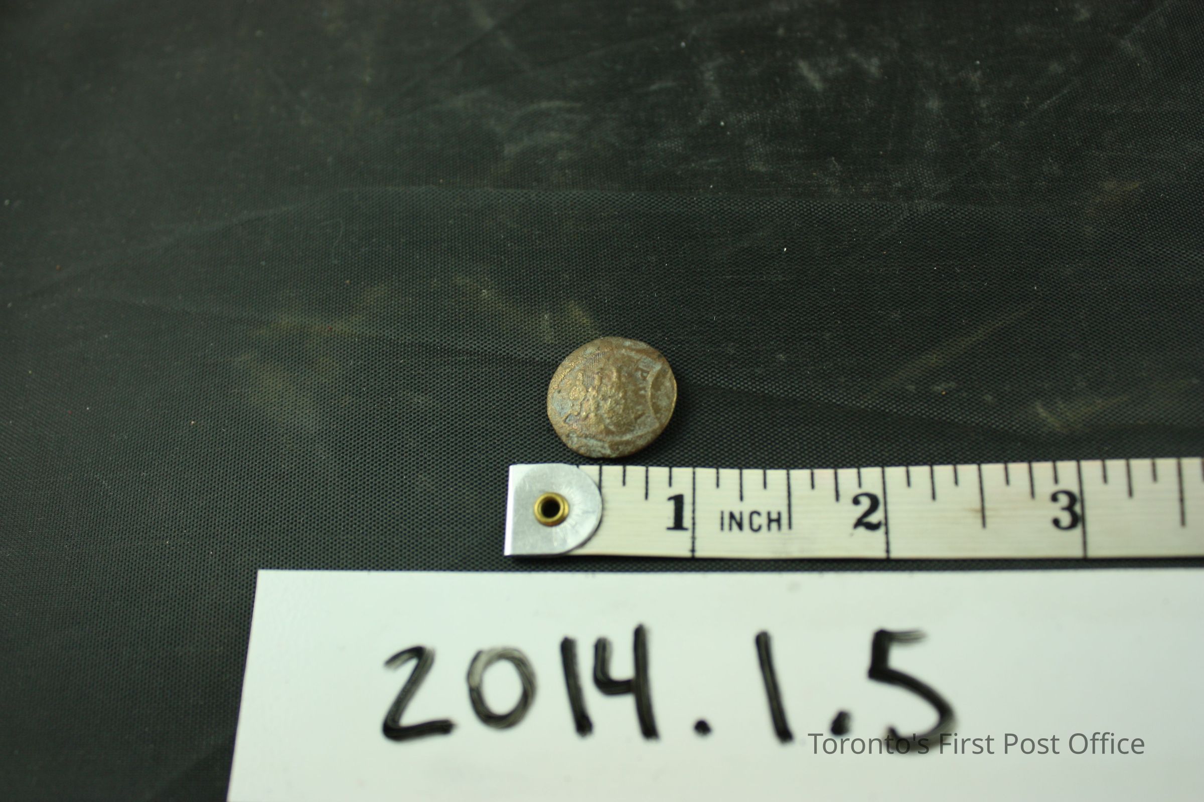 One button, brass, slightly domed with shield, 'PVA' and three cannons, no shank.