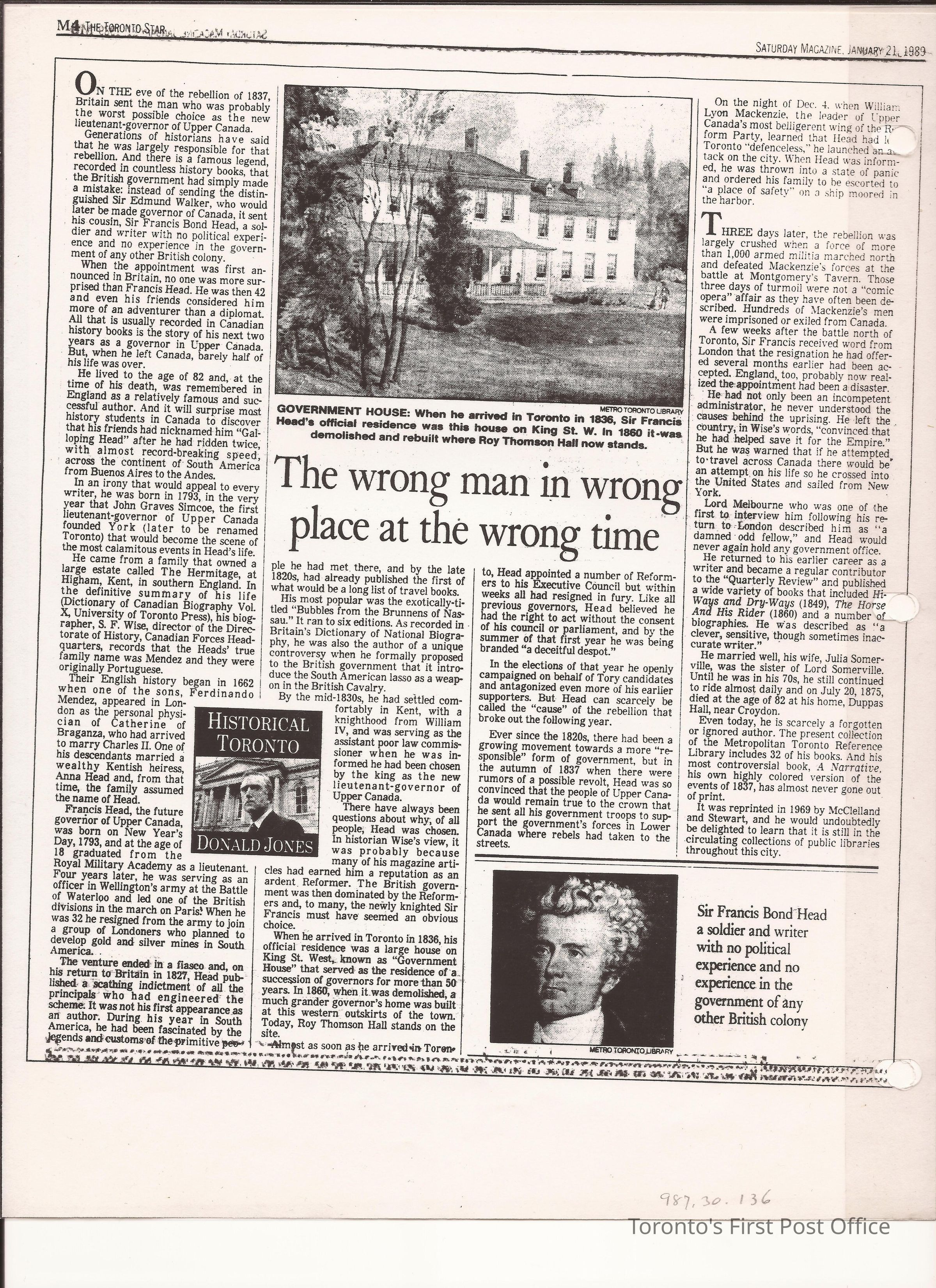 Copy of a photograph of a portrait of Sir. F.B. Head; by Nelson Cook (1817-1892); marked "AP" (artist's proof) 1837; inscribed: "Painted by Nelson Cook, Esquire"; engraved by C. Turner, ARA "HIS EXCELLENCY SIR FRANCIL BOND HEAD, BART; K.C.H. Lieutenant Governor of Upper Canada"; plated printed by Frederick Chase Capreal; published Octr 10 1837.Update Date