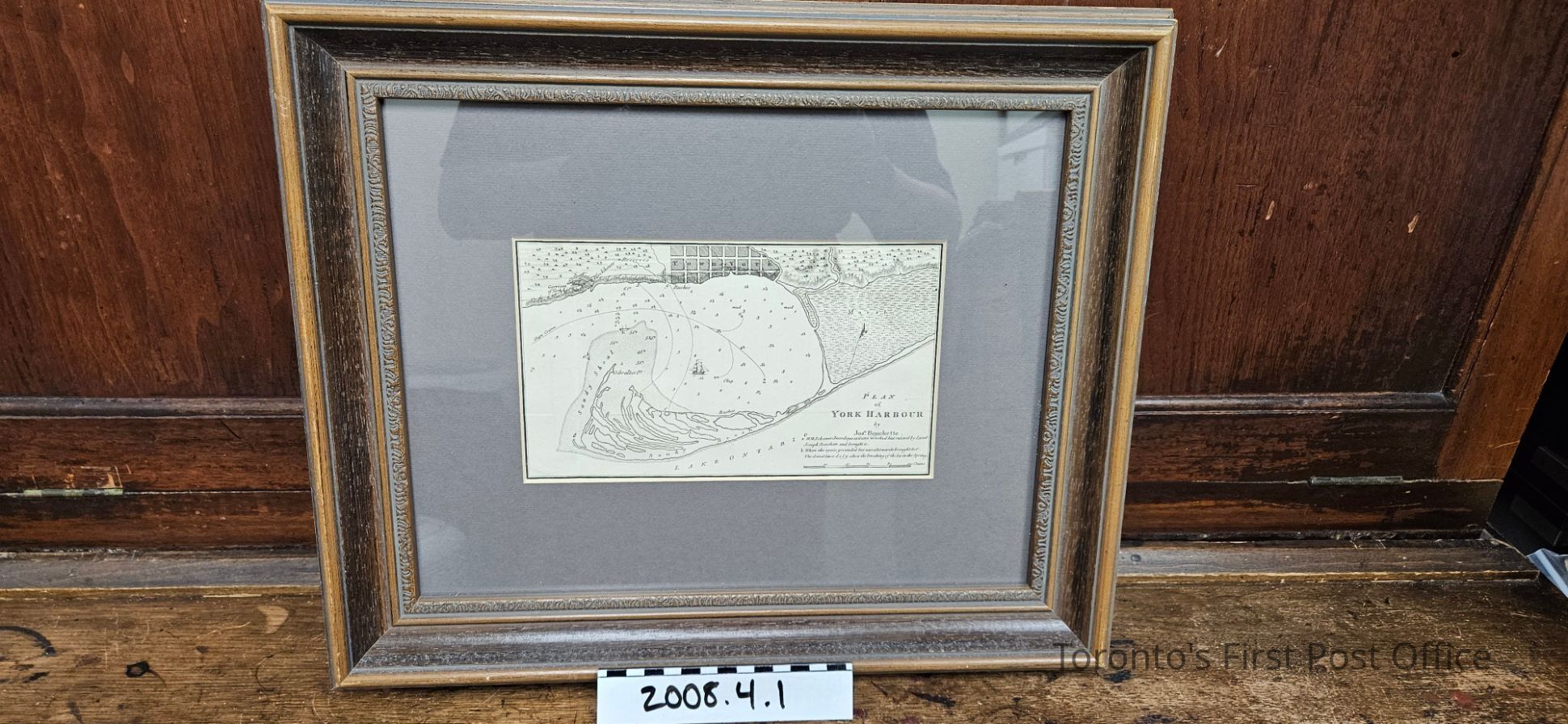 Copper plate engraving; "Plan of York Harbour by Jos.h Bouchette"; black on white; also marked "a. H.M.Schooner Amandaga 14 Guns wrecked but raised by Lieut Joseph Bouchette and brought to b. where she again grounded by was afterwards brought to c. The dotted lines d.e.f.g. shew the breaking of the Ice in the Spring."; published 1815.Dimensions