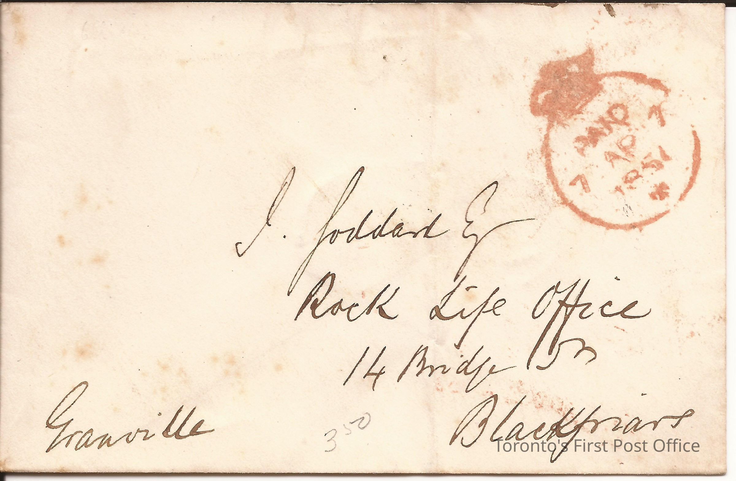 Black ink; unbleached paper; red wax seal, could have been a coat of arms; postmarks: 1. single, orange PAID 7 AP7 1851, 2. 8 sided, orange 1851 AP8 8M6.Update Date