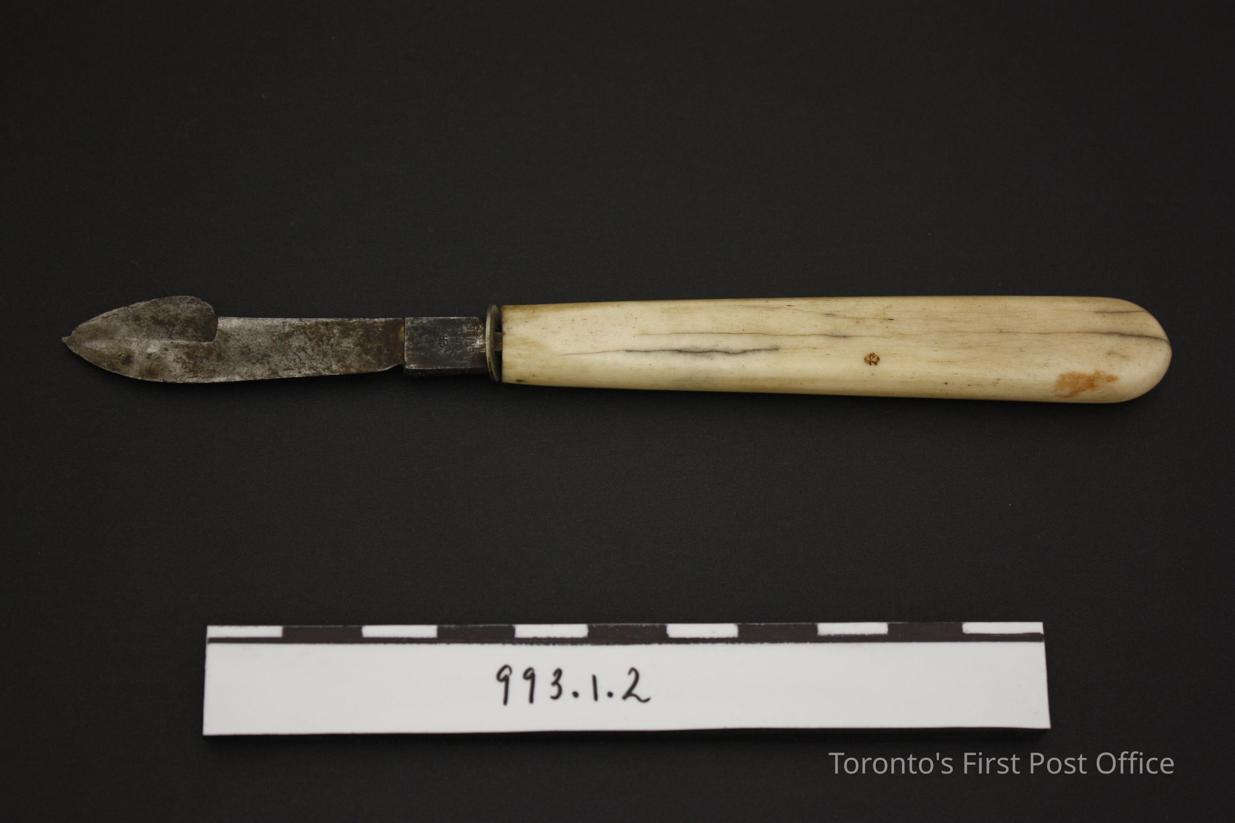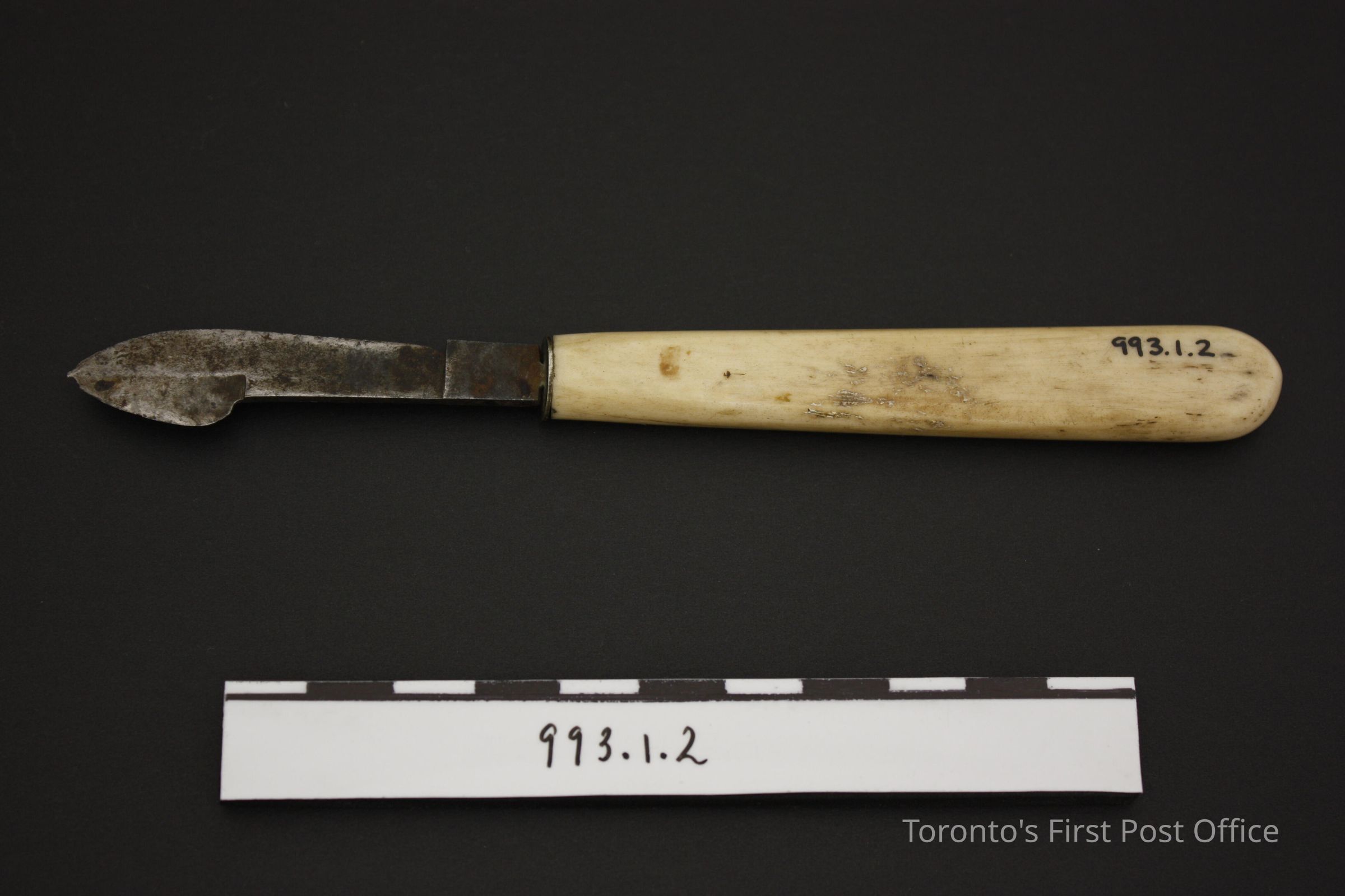 Eraser knife with steel blade; ivory or bone handle; imprinted "Miller Bro. Cut Co. Meriden" on blade near handle.Dimensions
