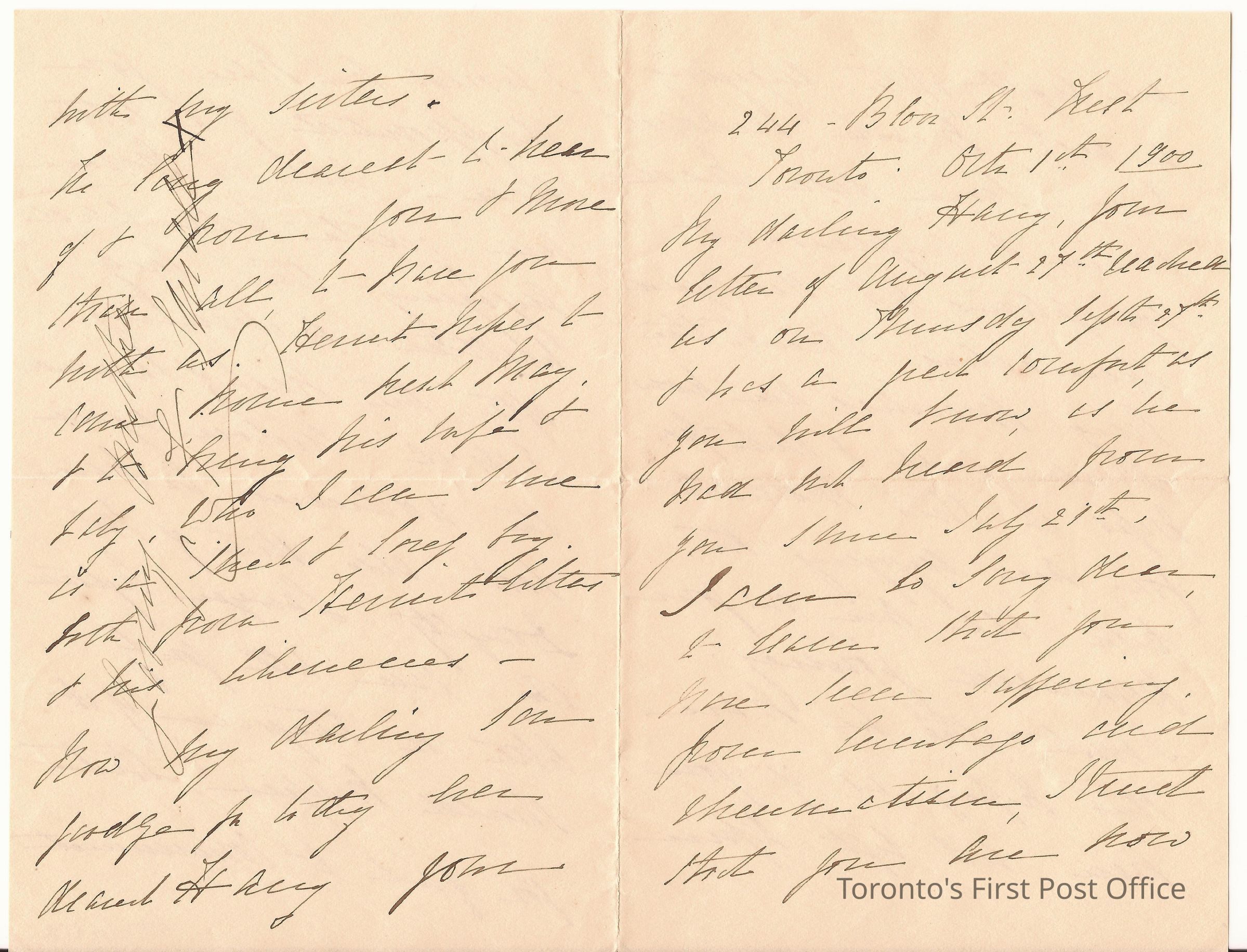 Letter; to Harry; from C.F. Small (Catherine Francis Small, mother); re: hoping Harry has recovered from lumbago and rheumatism and is enjoying the trip home from Africa (Boer War 1899-1902), other family news; black ink on heavy paper.Dimensions