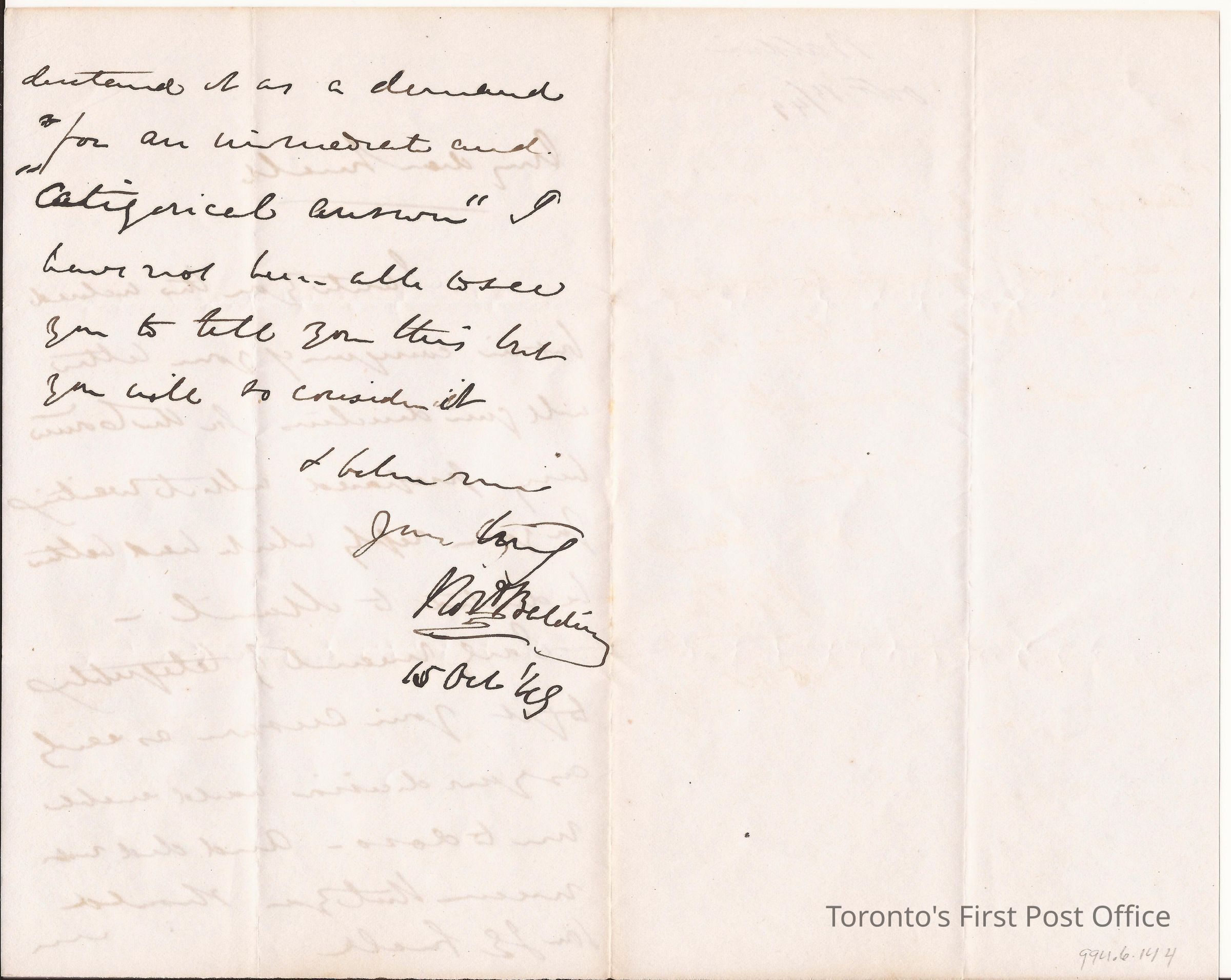 Letter; to J.E. Small; from Robt Baldwin; dated Oct 15/49; re: business; black ink on heavy paper.Dimensions