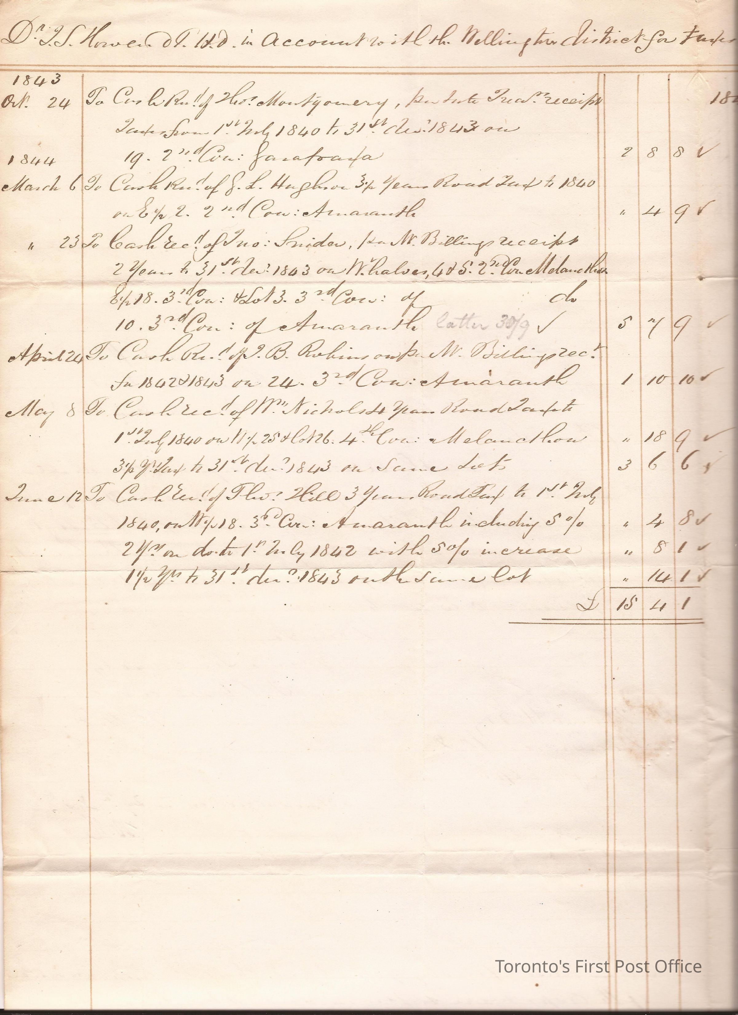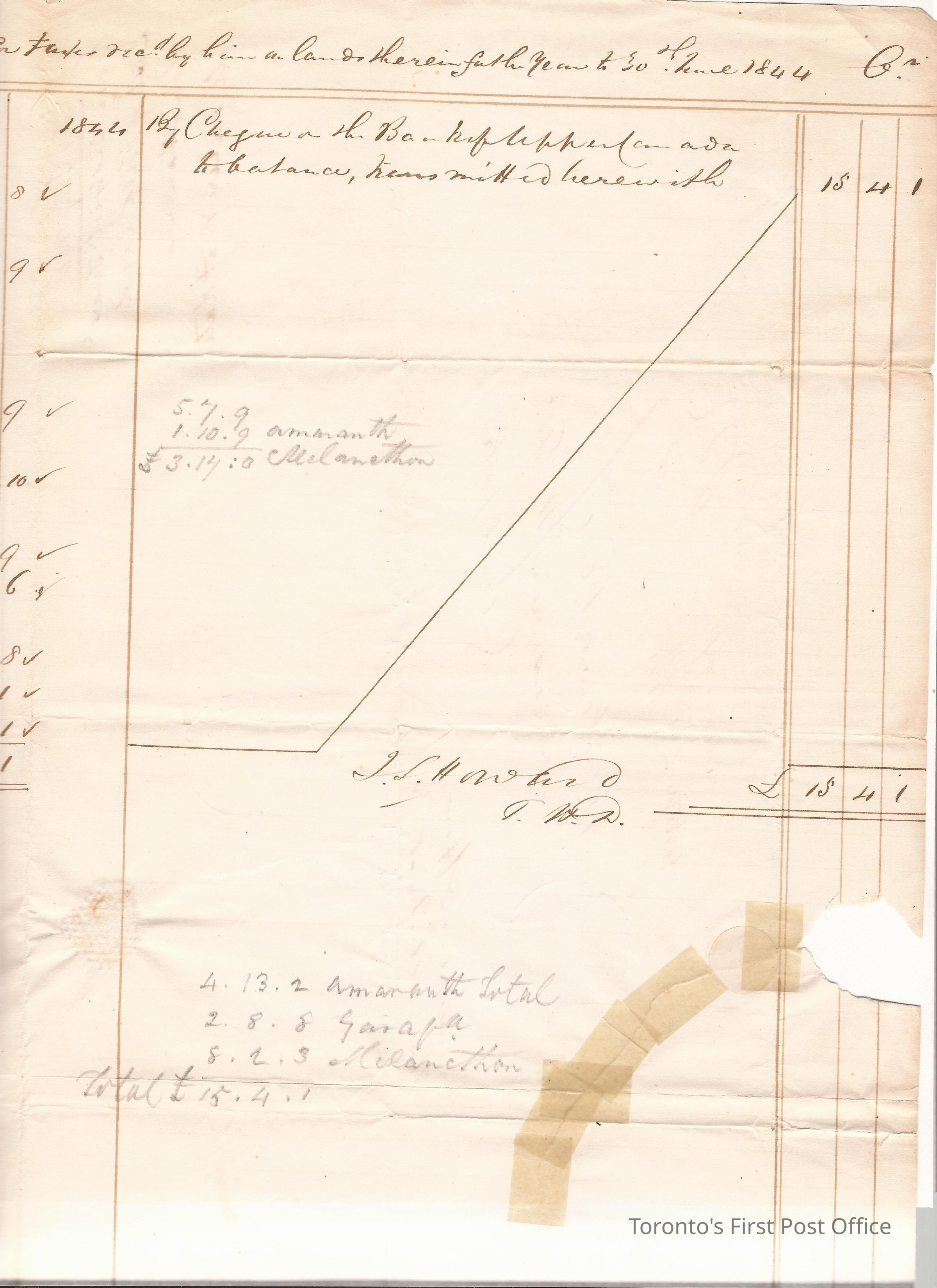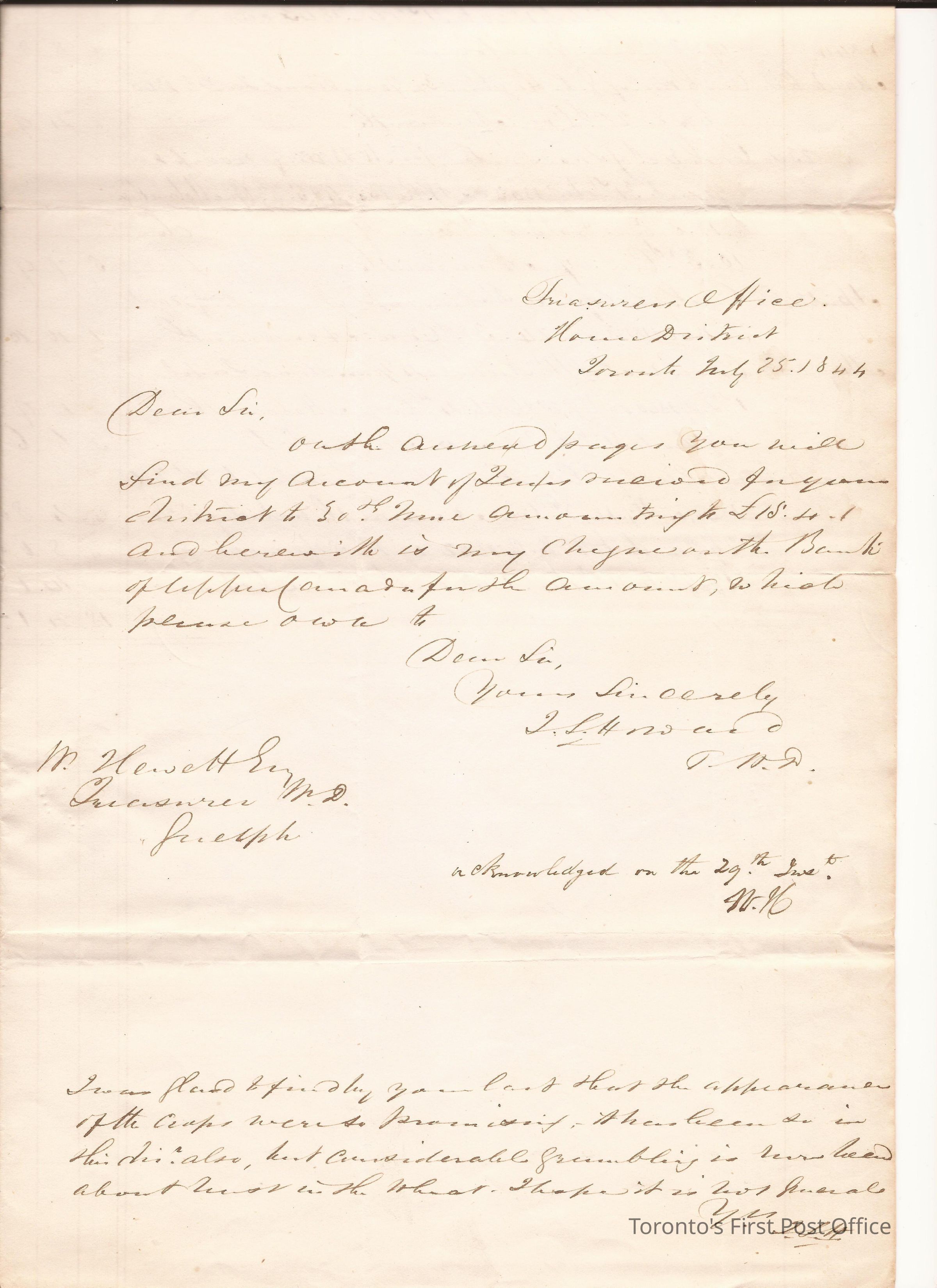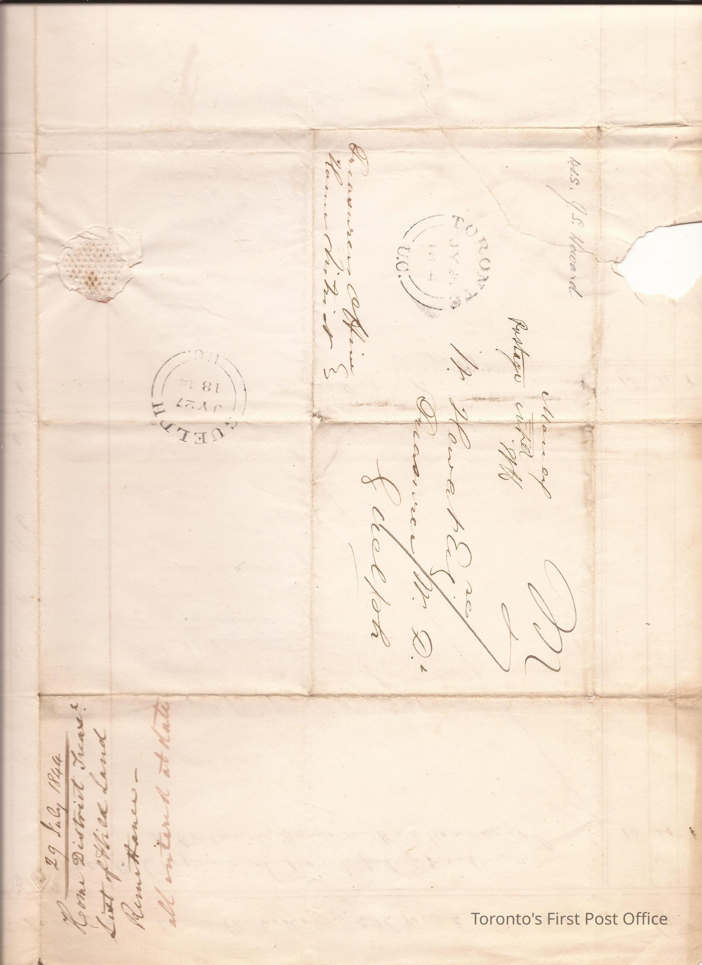 Manuscript letter from James Scott Howard to W. Hewett, 25 July 1844; inner page is a ledger page; seal and cancellations appear.Update Date