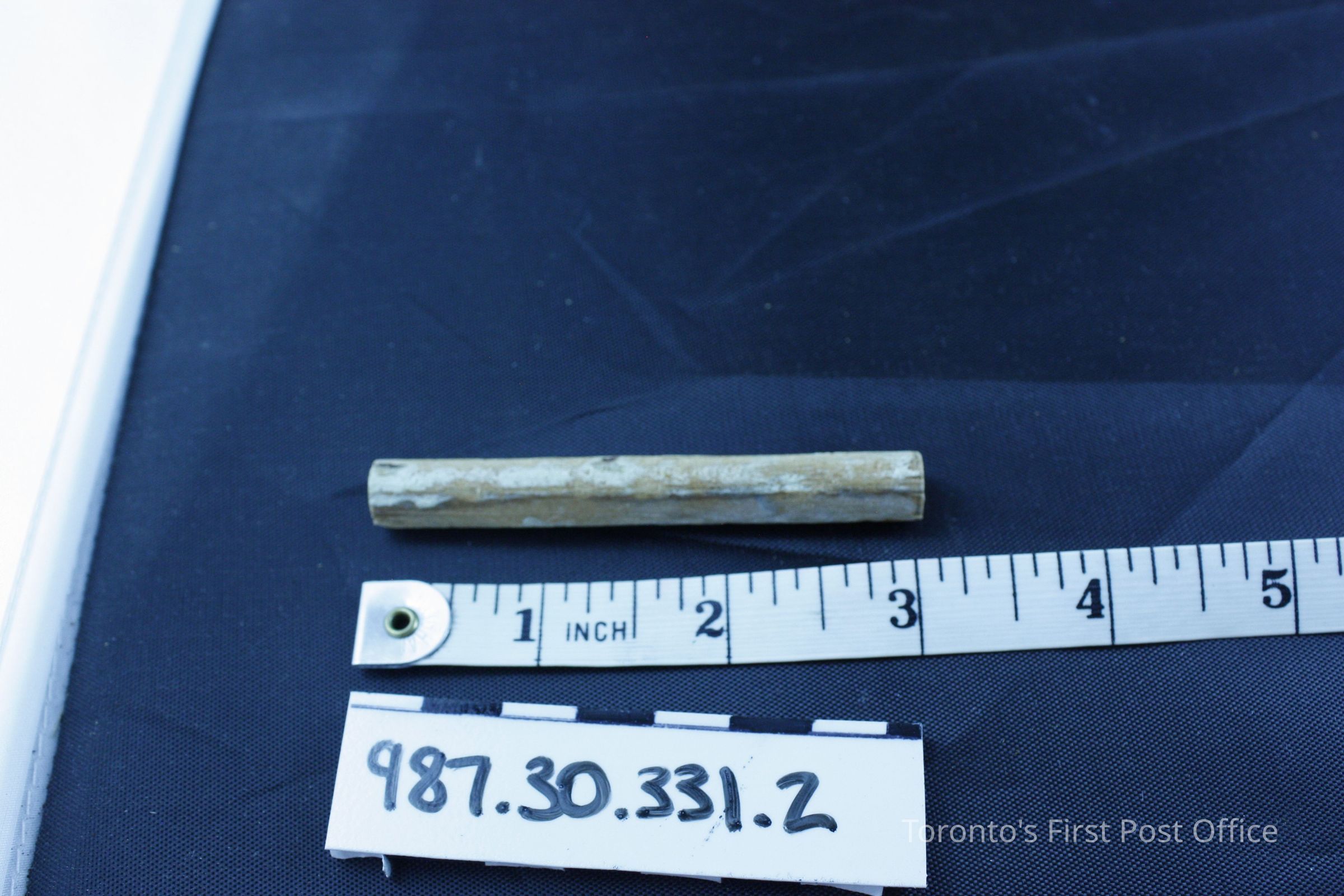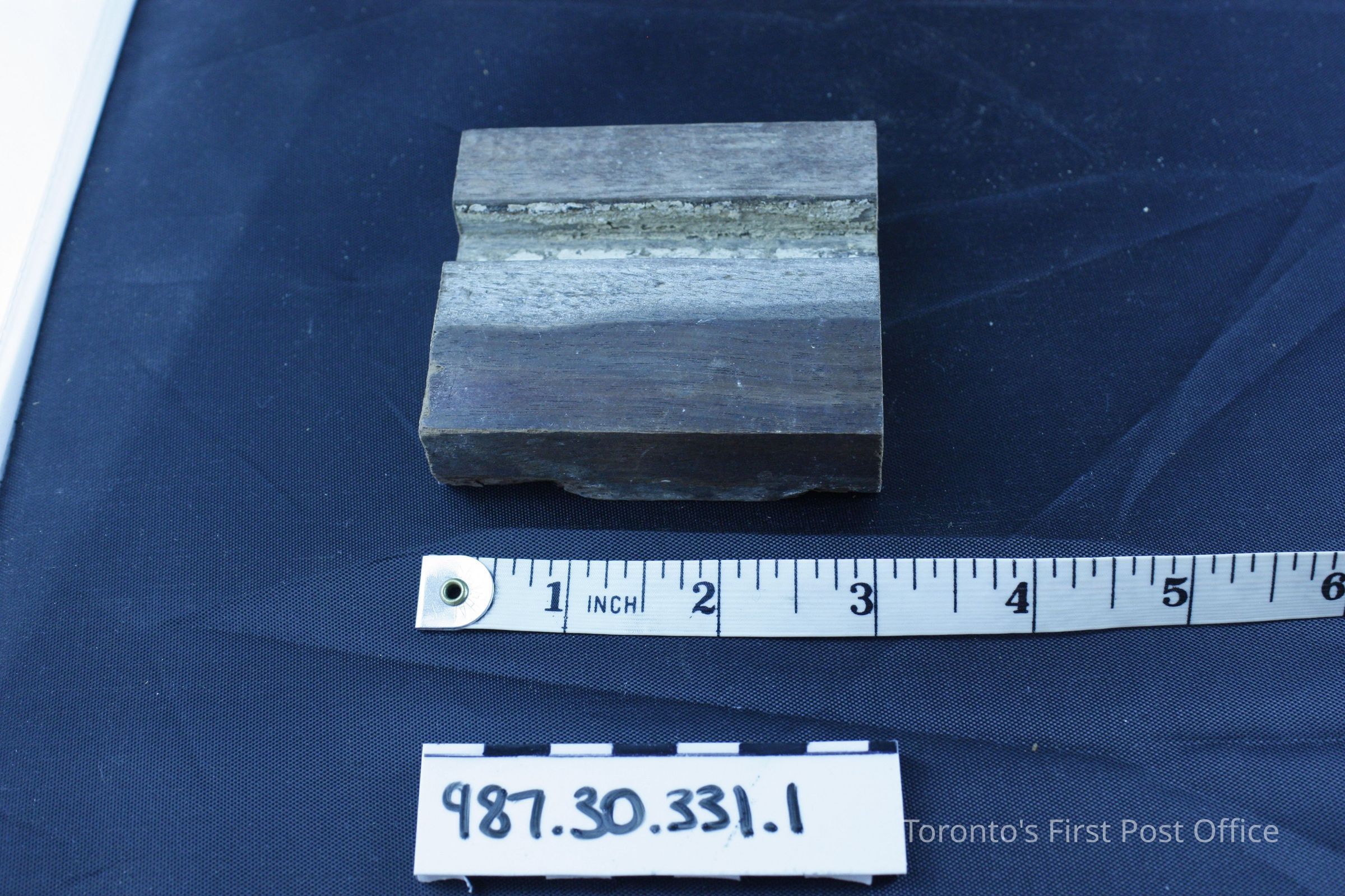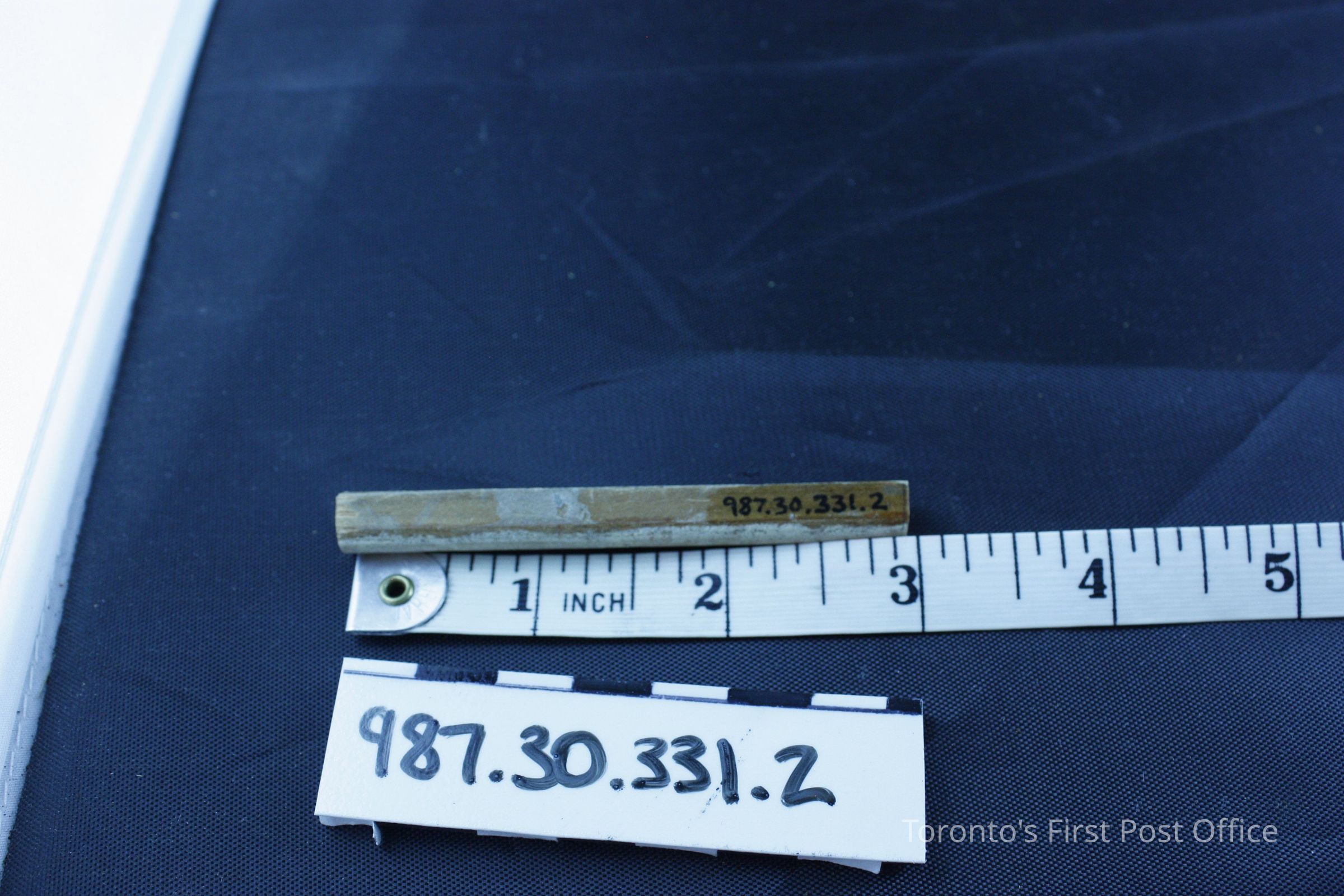 .1: Wooden moulding, brown stain; .2: Wooden dowel; natural wood; some brown stain and paint; flattened along one side; both are originally from floor of Bank of Upper Canada.Dimensions