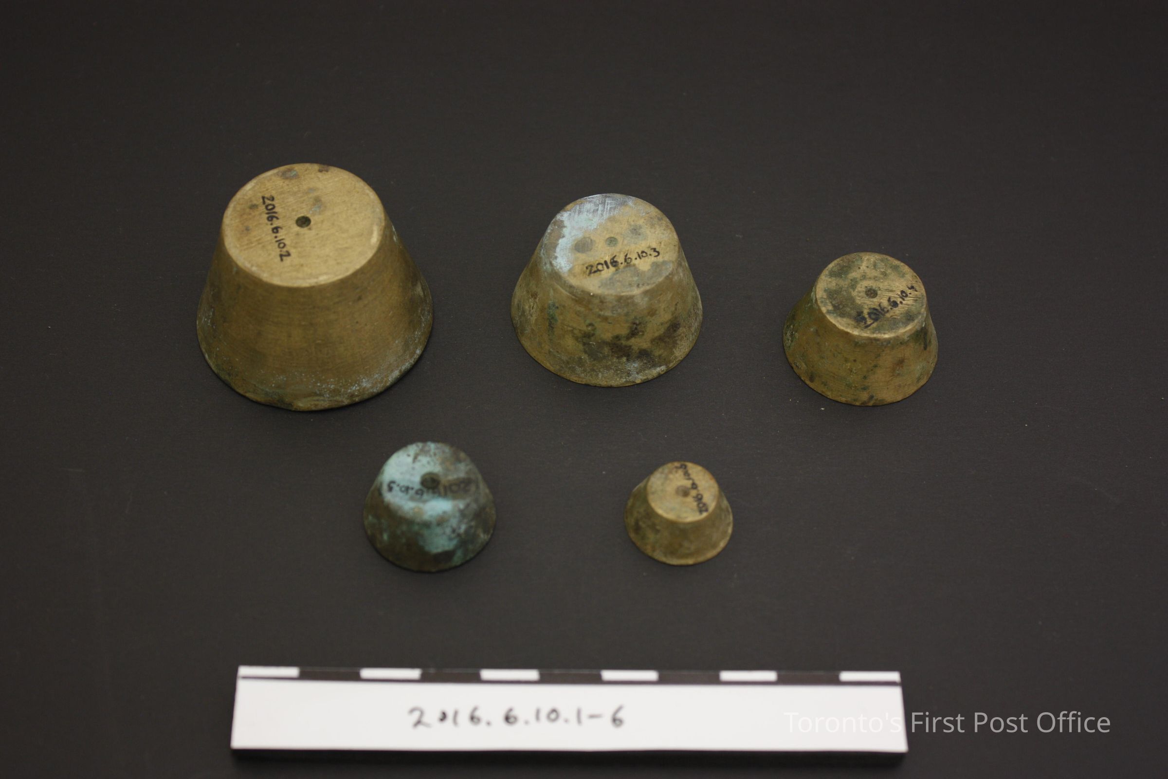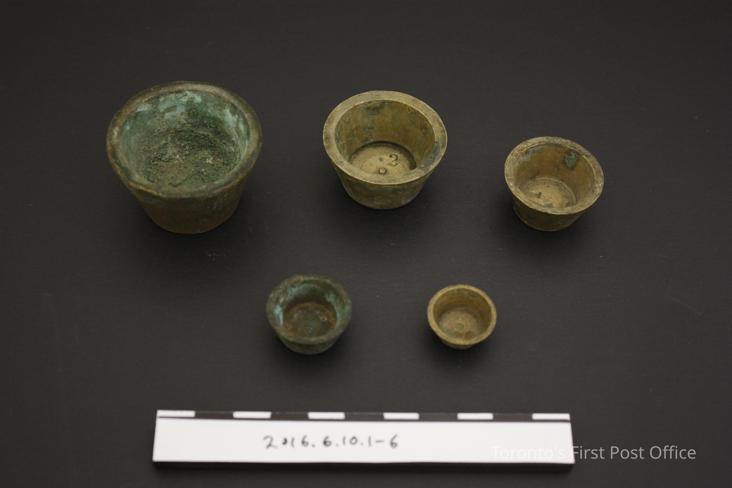 Reproduction (?) nested weights. '5' and '16' on proper right side of lid.