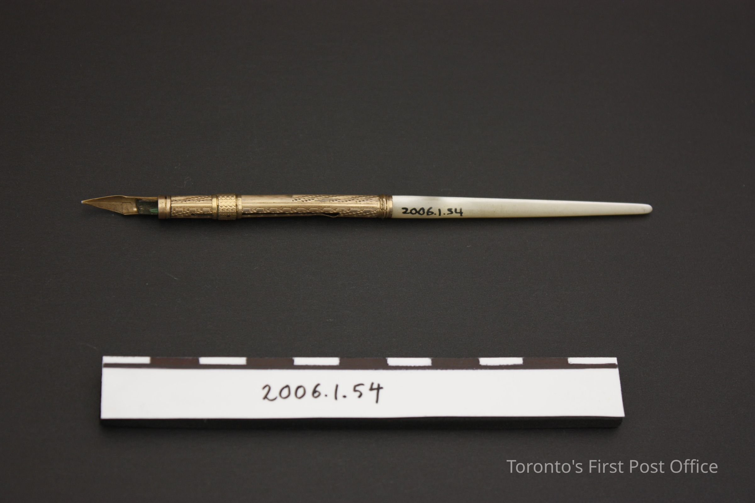 Pen with mother-of-pearl shaft; gold retractable collar; god nib; collar marked "E. TODD & CO NO 1"; marks on nib (half under collar): "MERMO… JACCA… & CO"; circa 1890.Update Date