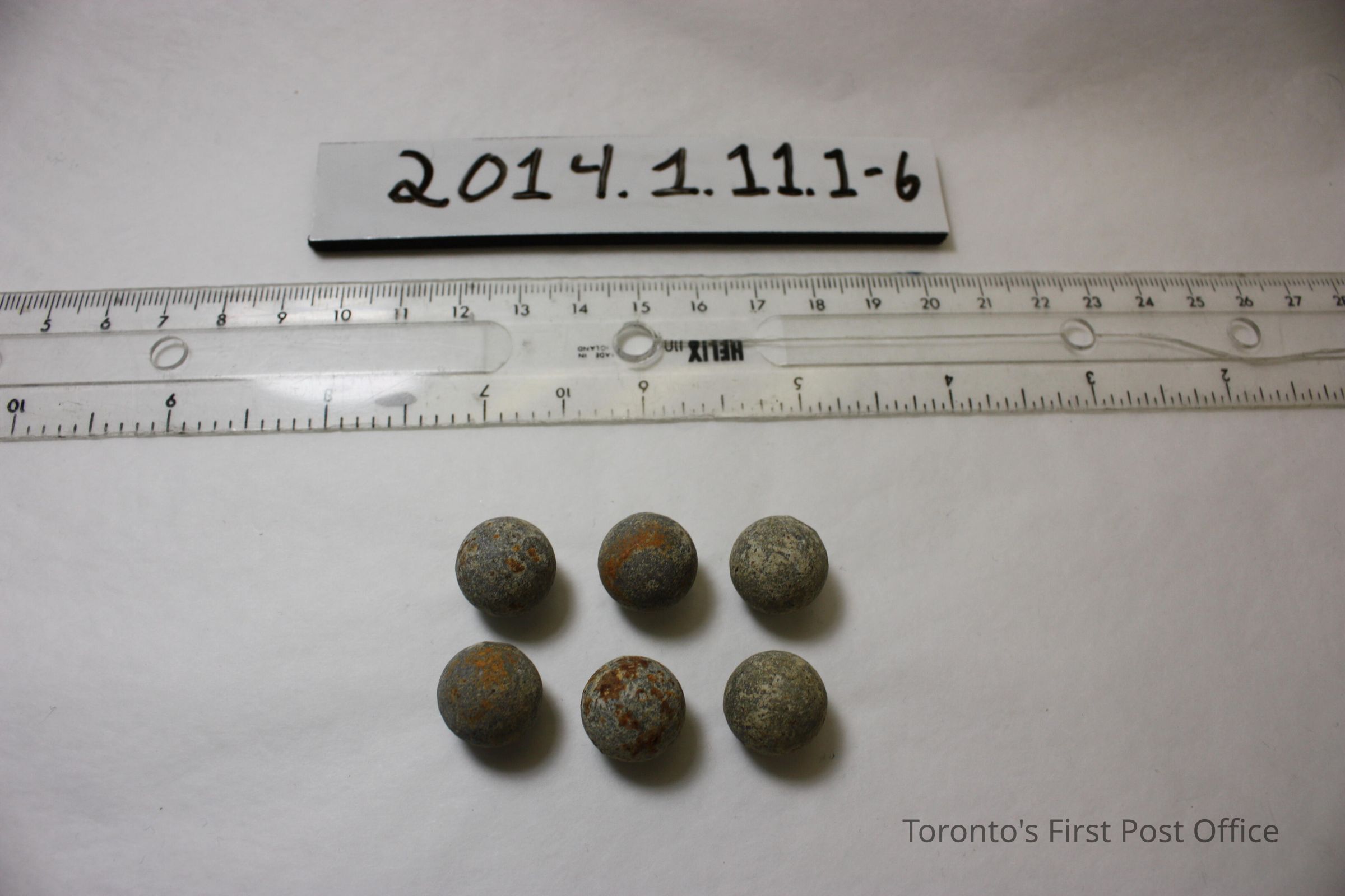 Six (6) lead pistol balls; 60 calibre.