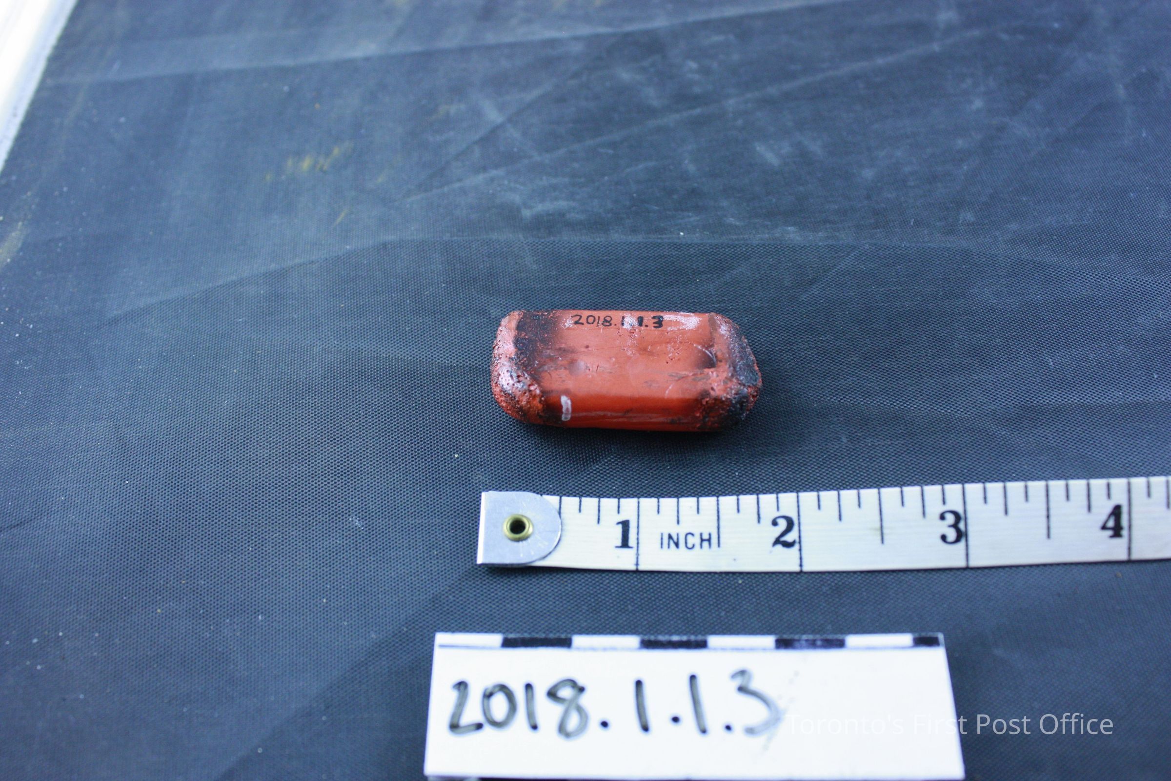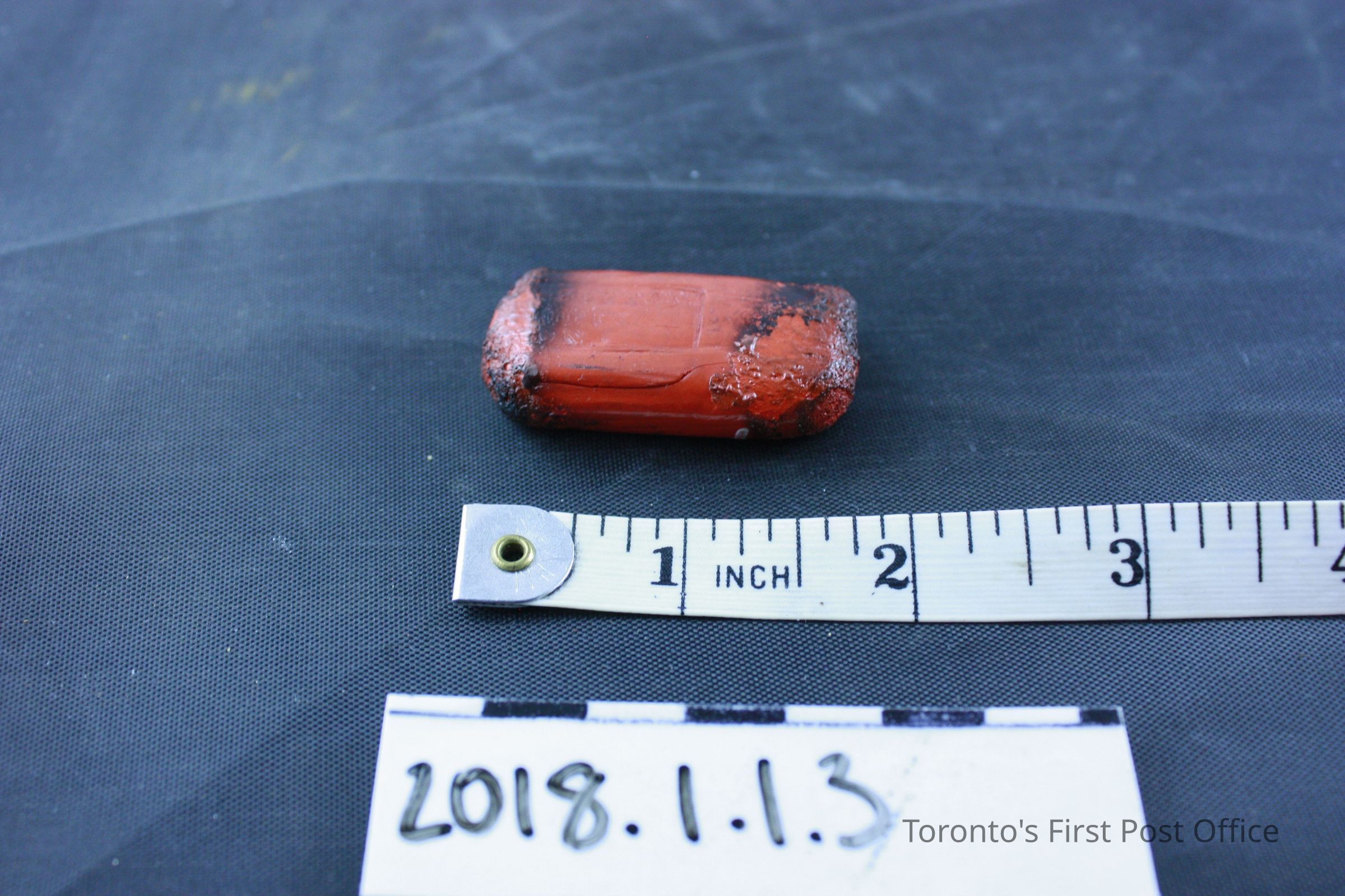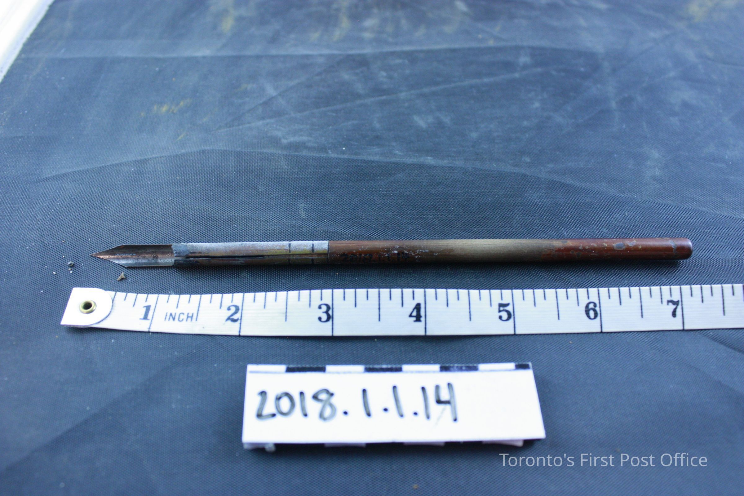 Box: 35.5 cm L, 27.1 cm W, Key: 2.7 cm, Red sealing wax: 4.3 cm, black sealing wax: 3 cm, Eraser: 3.1 cm, Stamp: 1.1 cm, Inkwells (.8 and .9): 4.2 cm L and W, 2.8 cm H, Ruler: 24.5 cm, Metal nib case: 4.5 cm, Pen nib box: 5.9 cm L, 3.7 cm W, 1.5 cm H, Pencil: 16.7 cm, Pen: 18.6 cm, Assorted Parts: 1 cm to 2.8 cmUpdate Date
