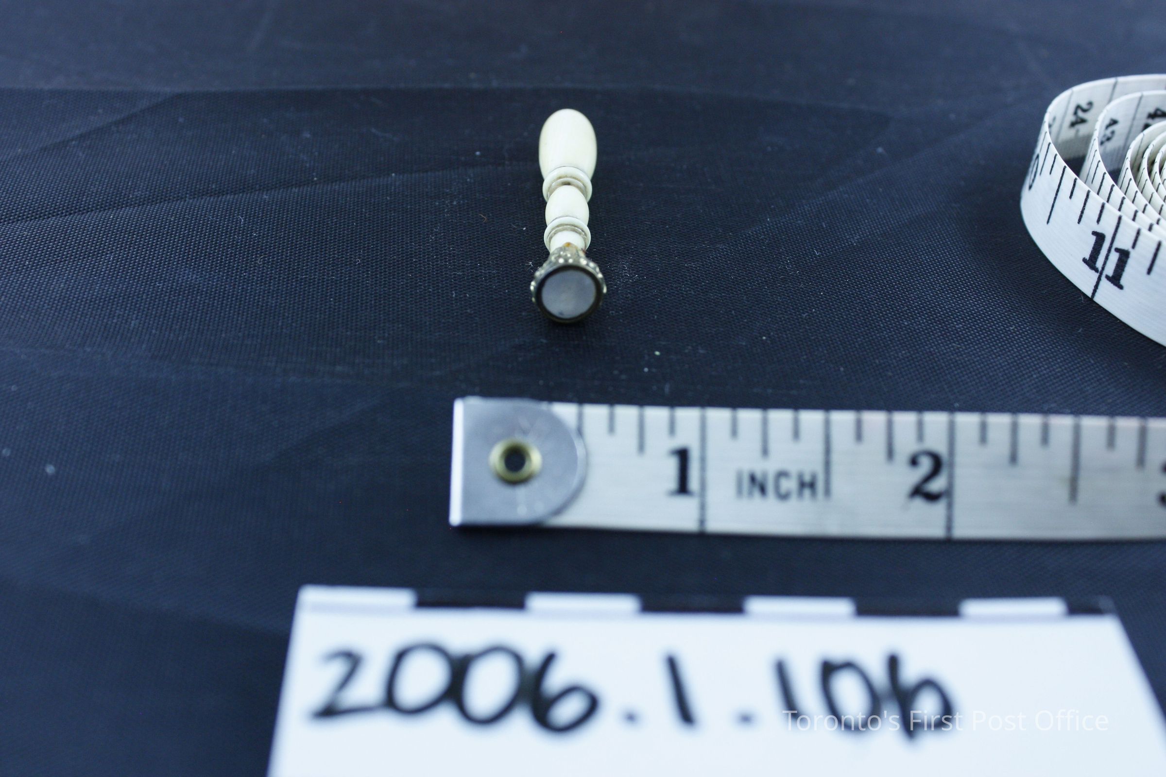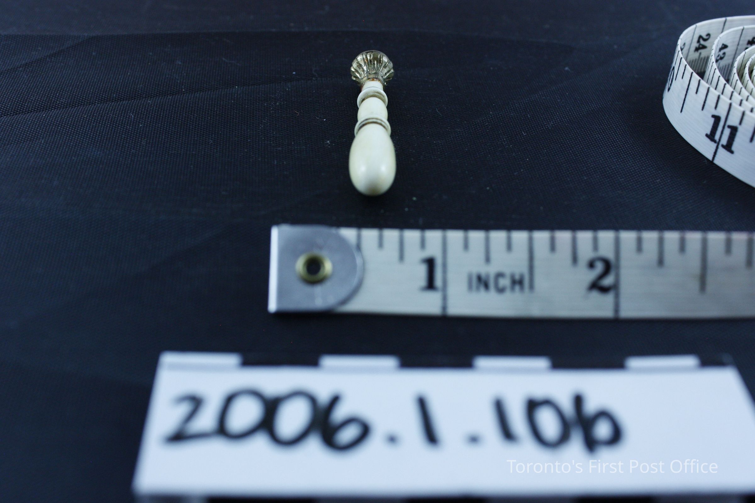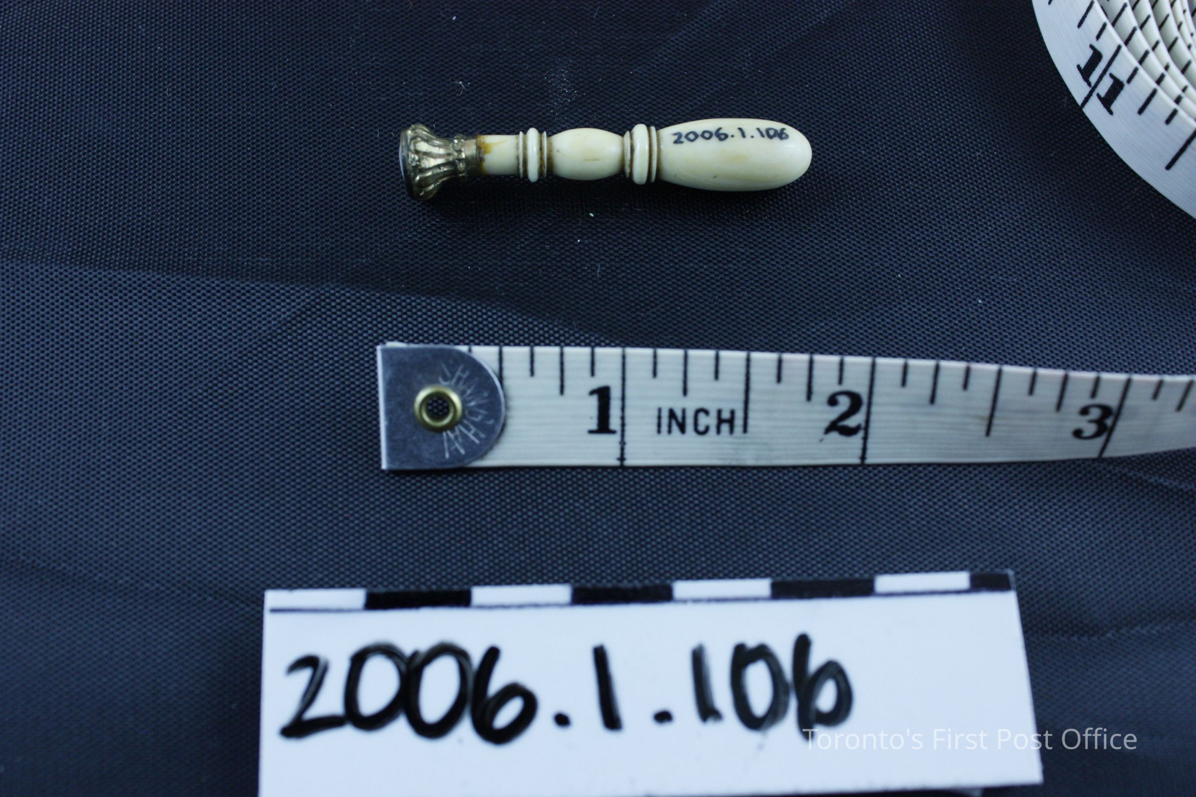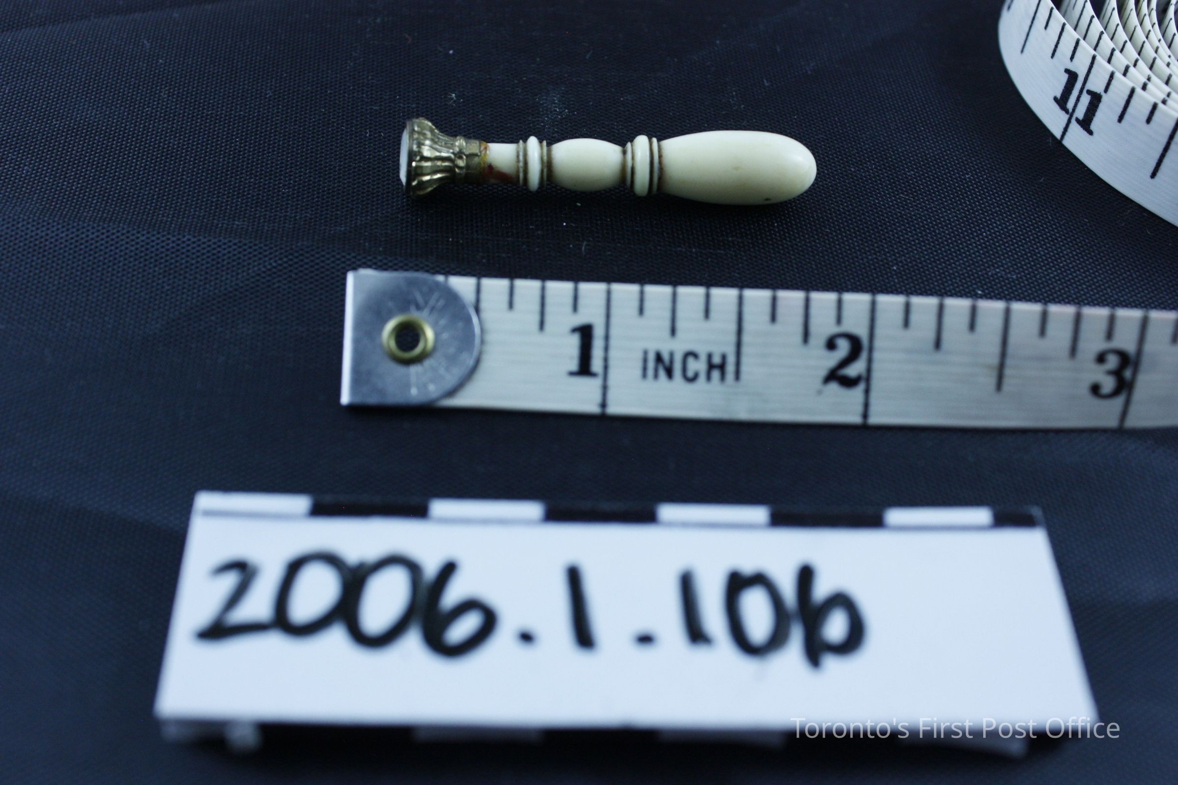 Seal with ivory handle; brass collar and glass marker with intaglio design or initial; circa 1800.