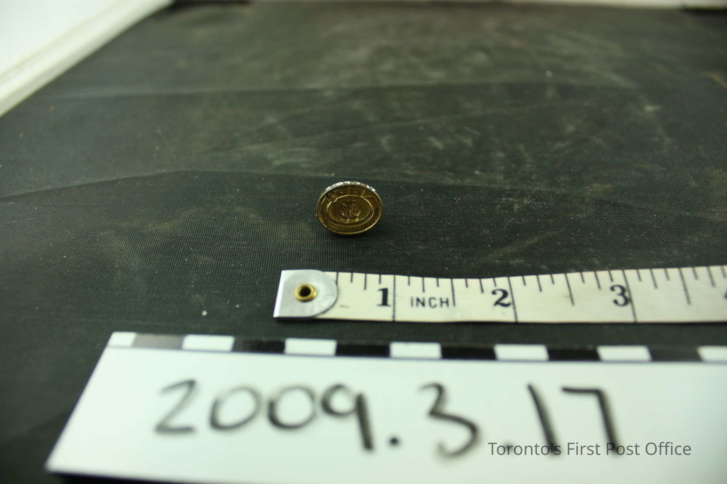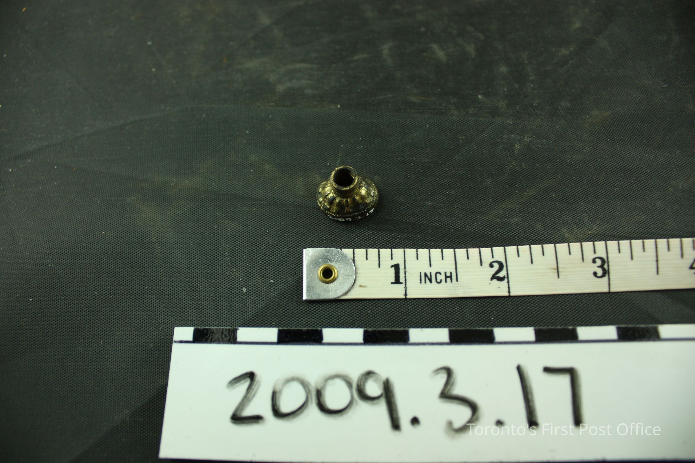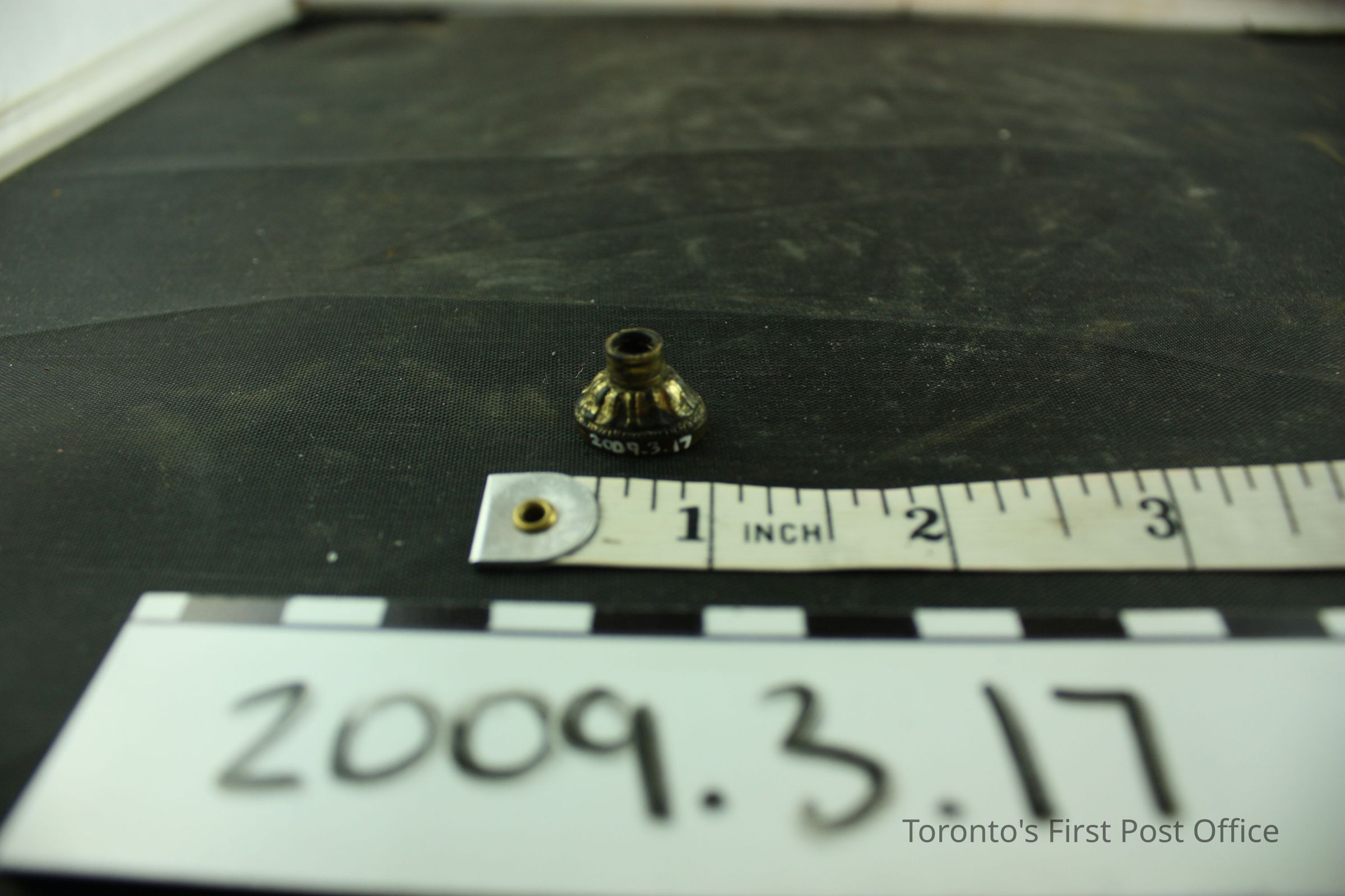 One seal head (no handle); plated brass; oval seal is gothic initial with belt and buckle border; c. 1820-1850.Dimensions