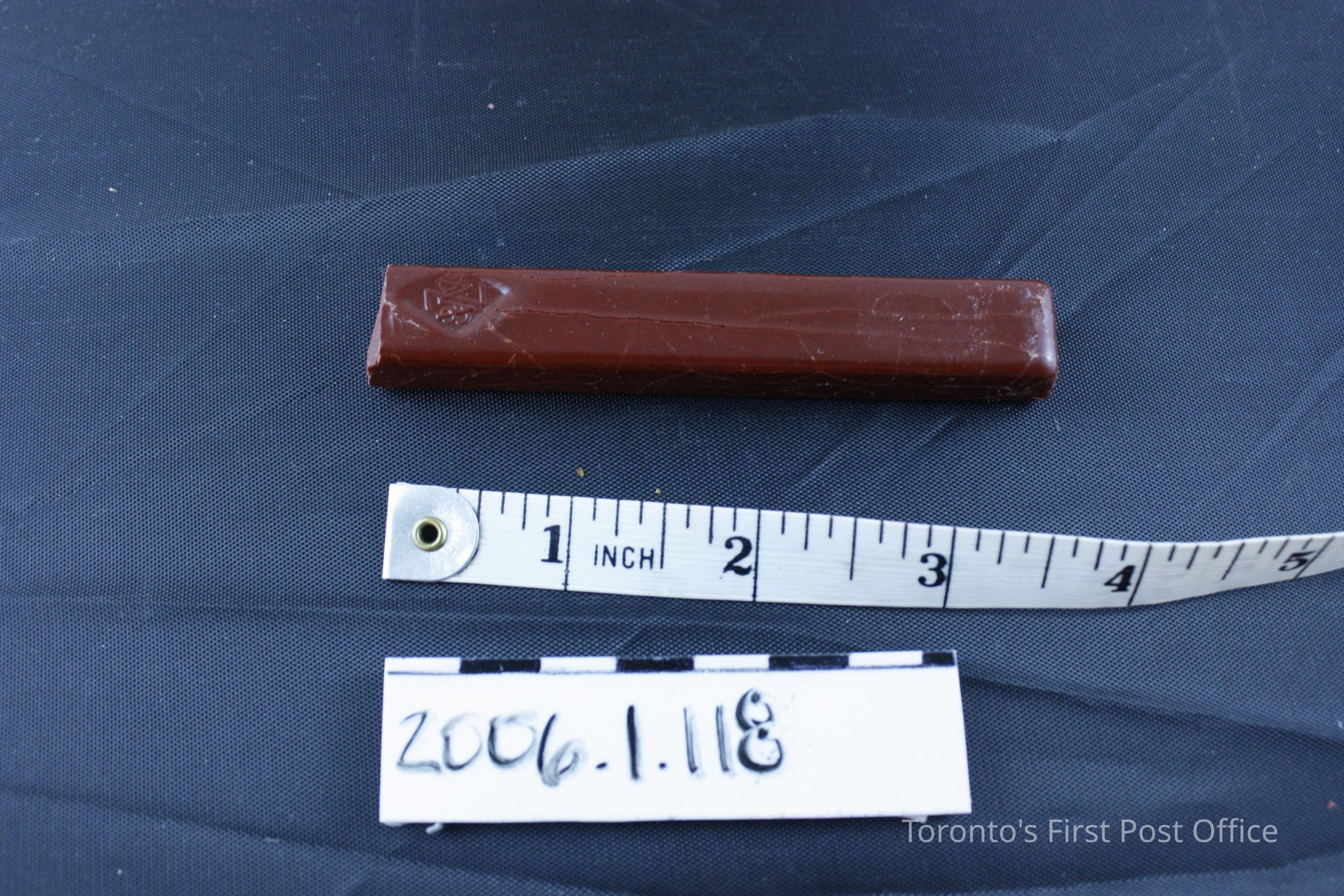 One piece sealing wax; dark red; broken off from another piece; ensignia; circa 1880.