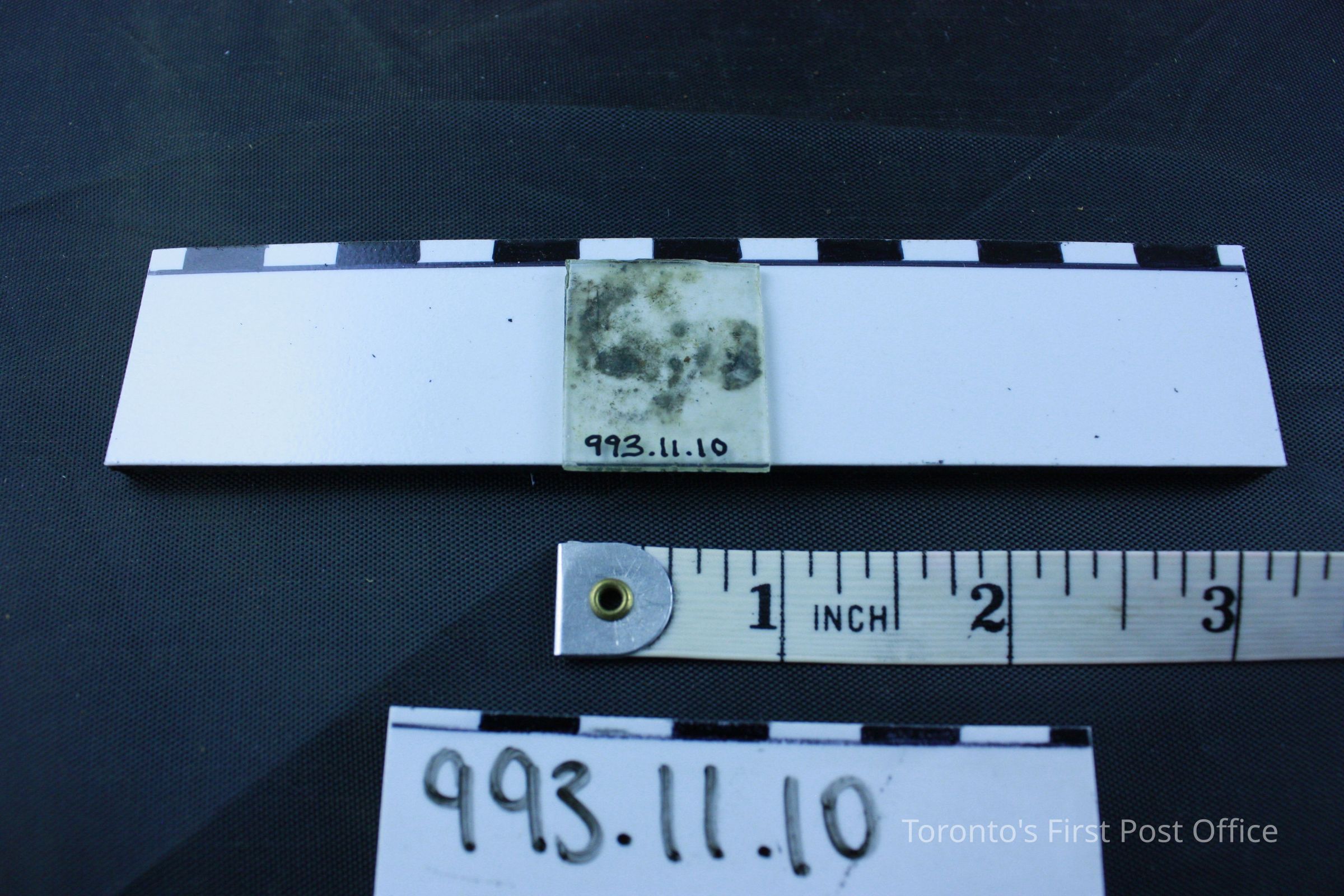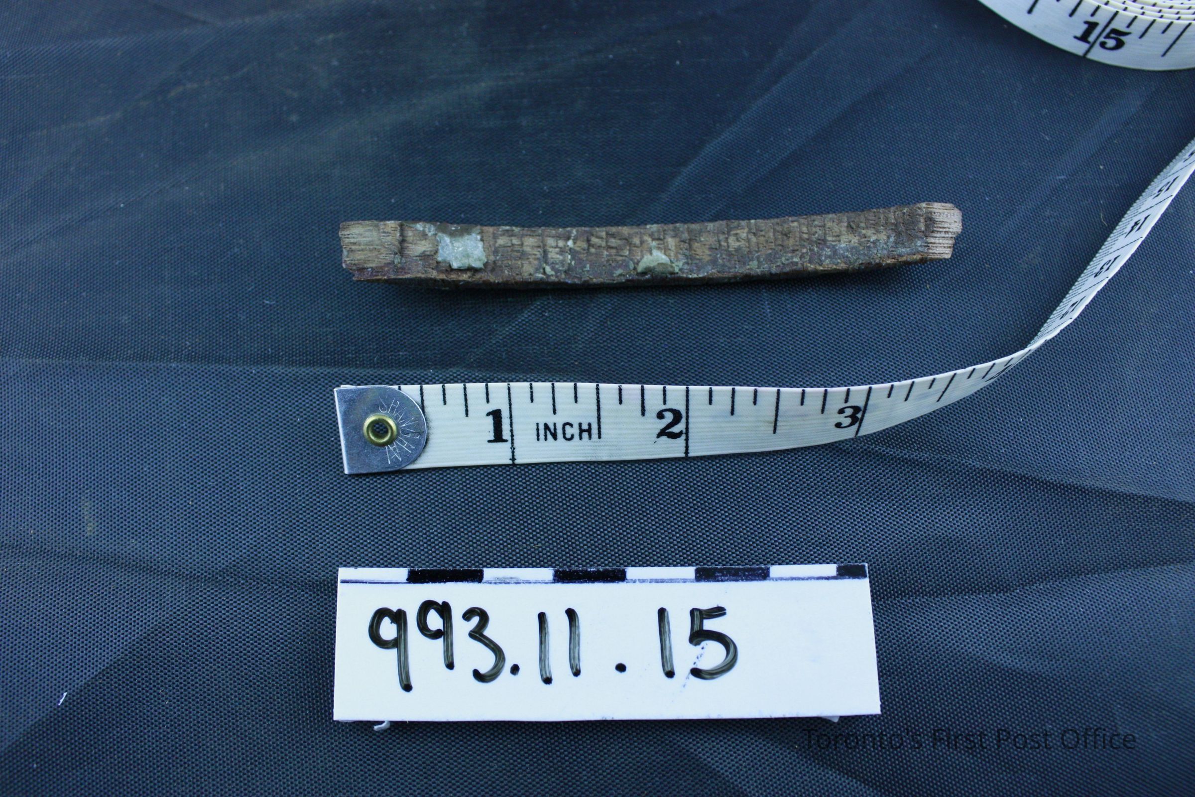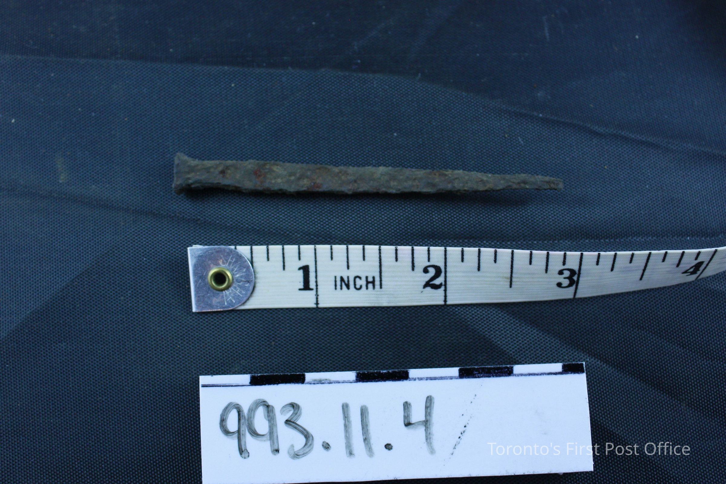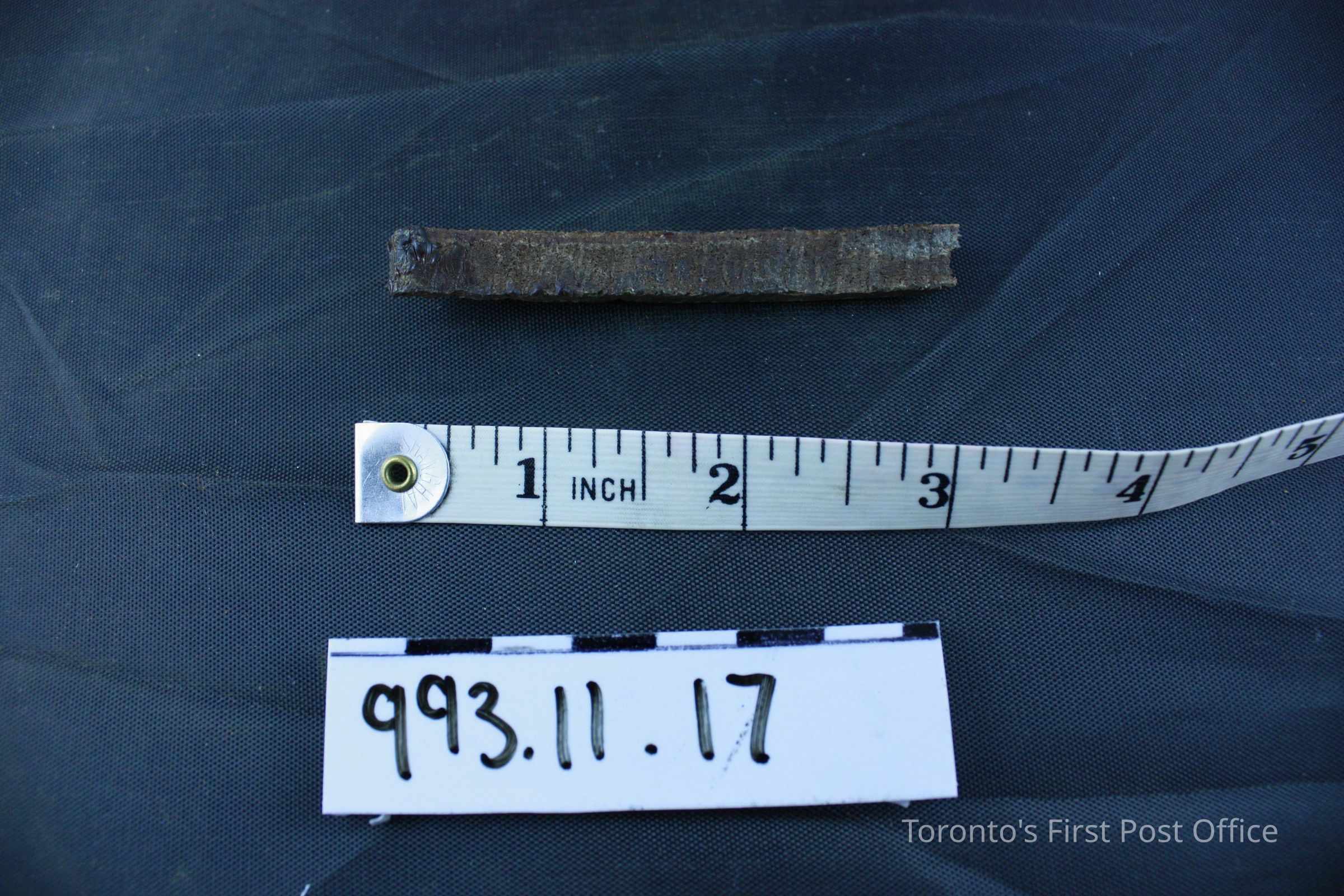 Twenty assorted pieces such as tack, nail, part of metal lock, wood, glass; "found in desk".
