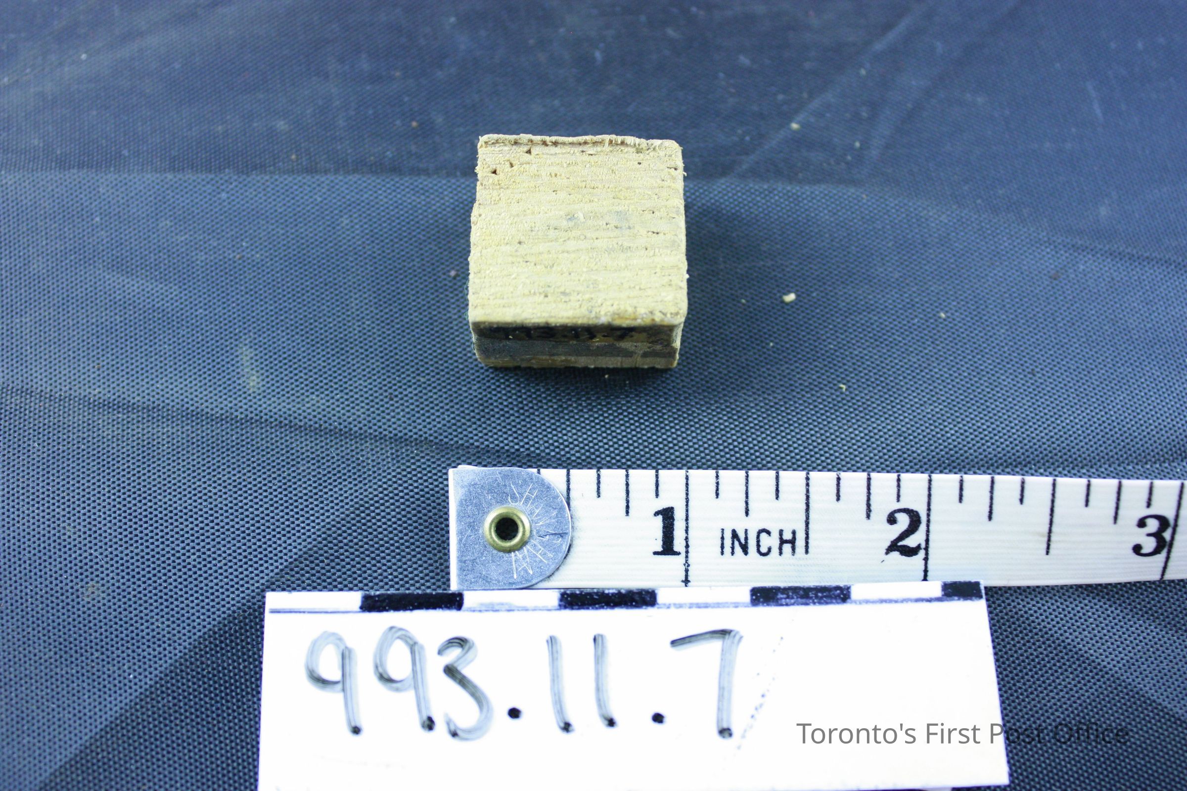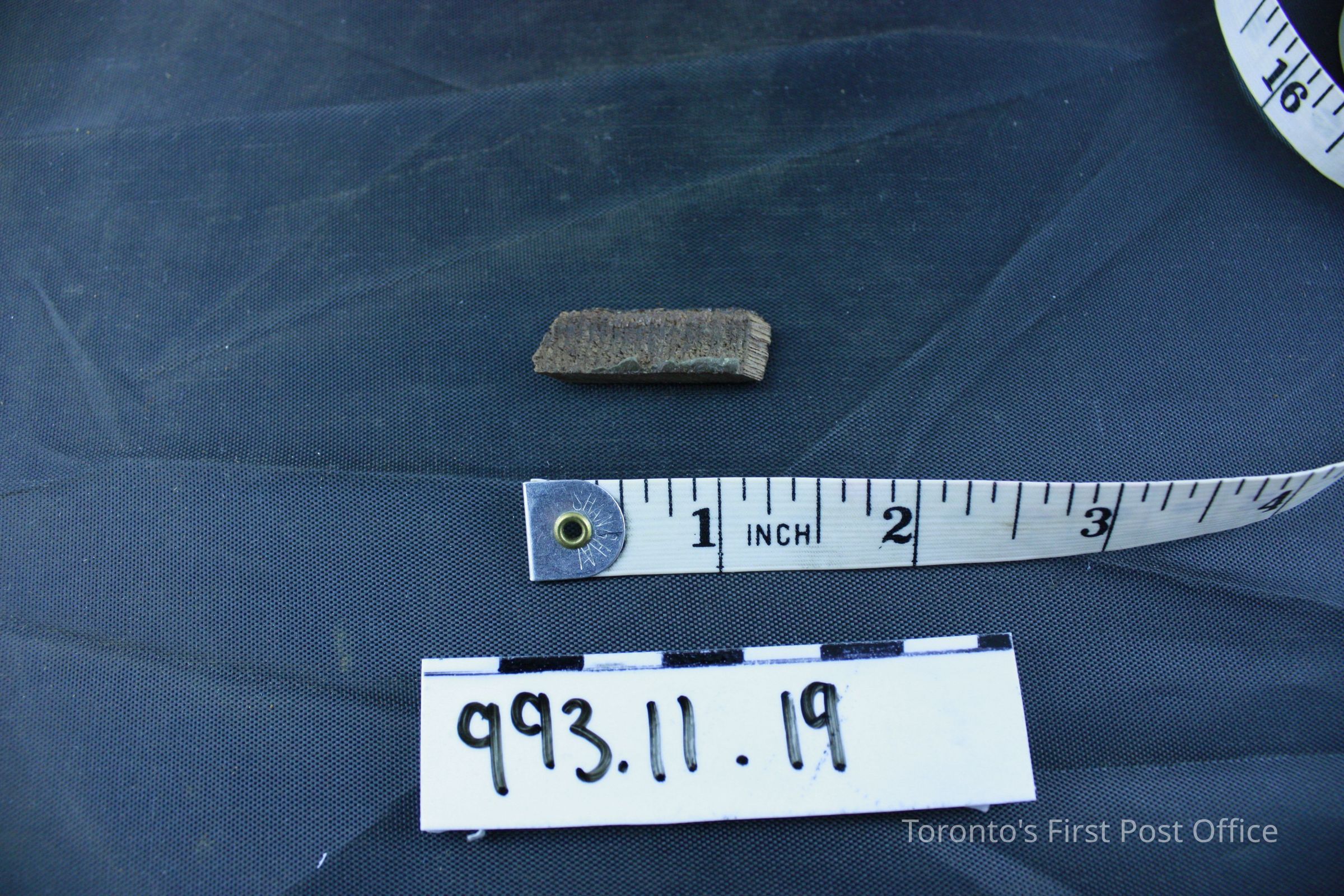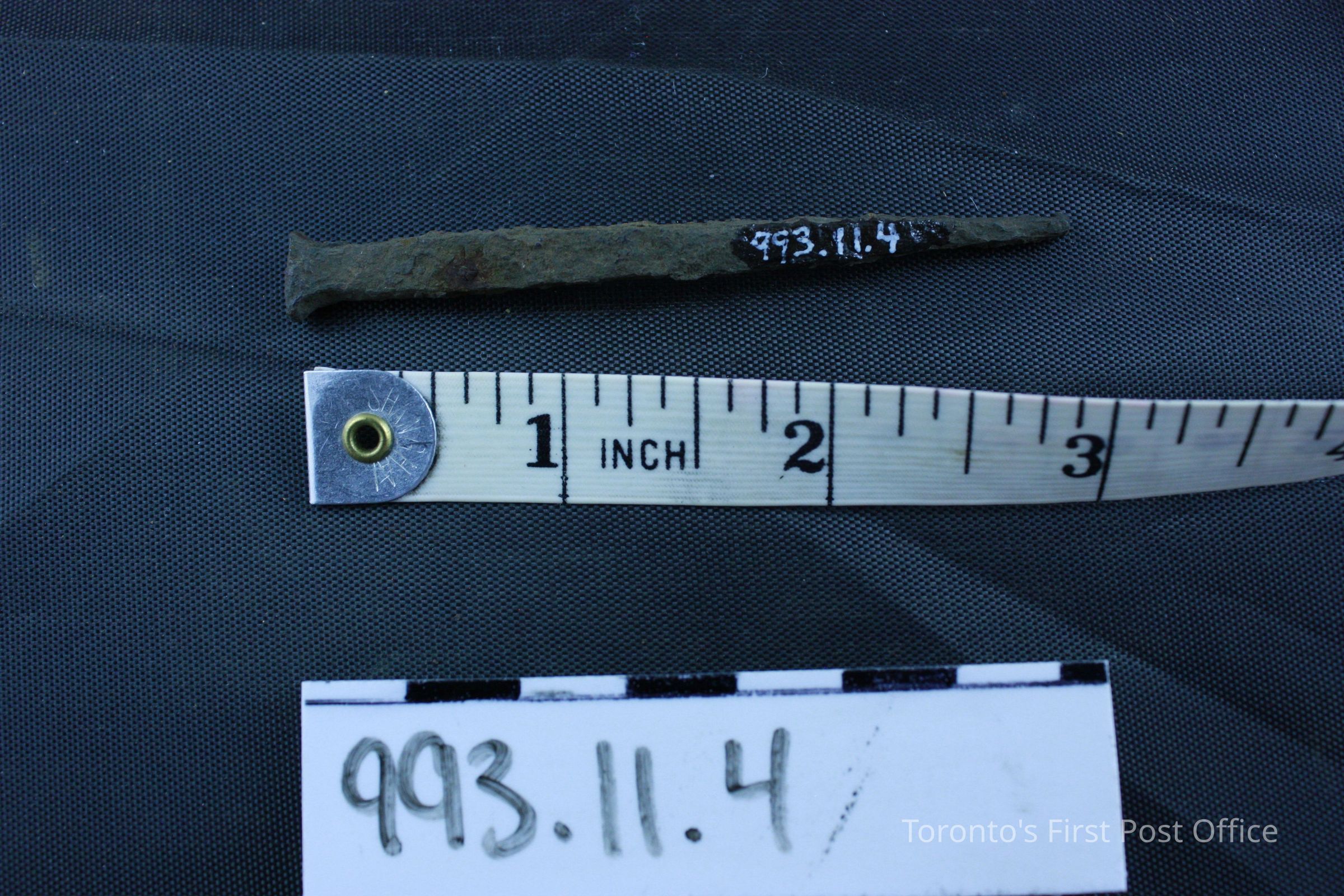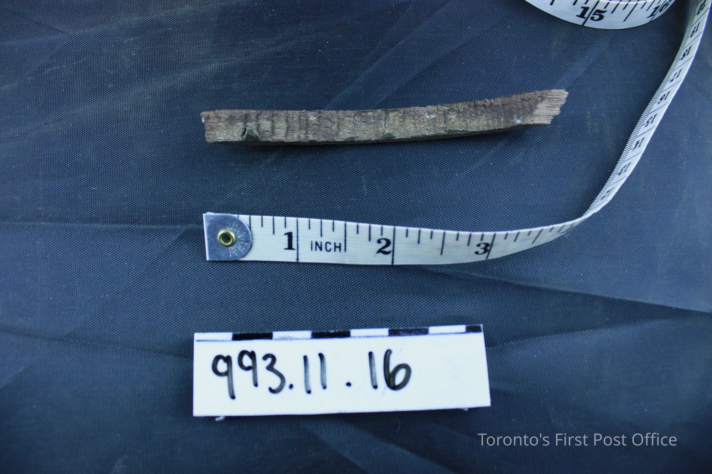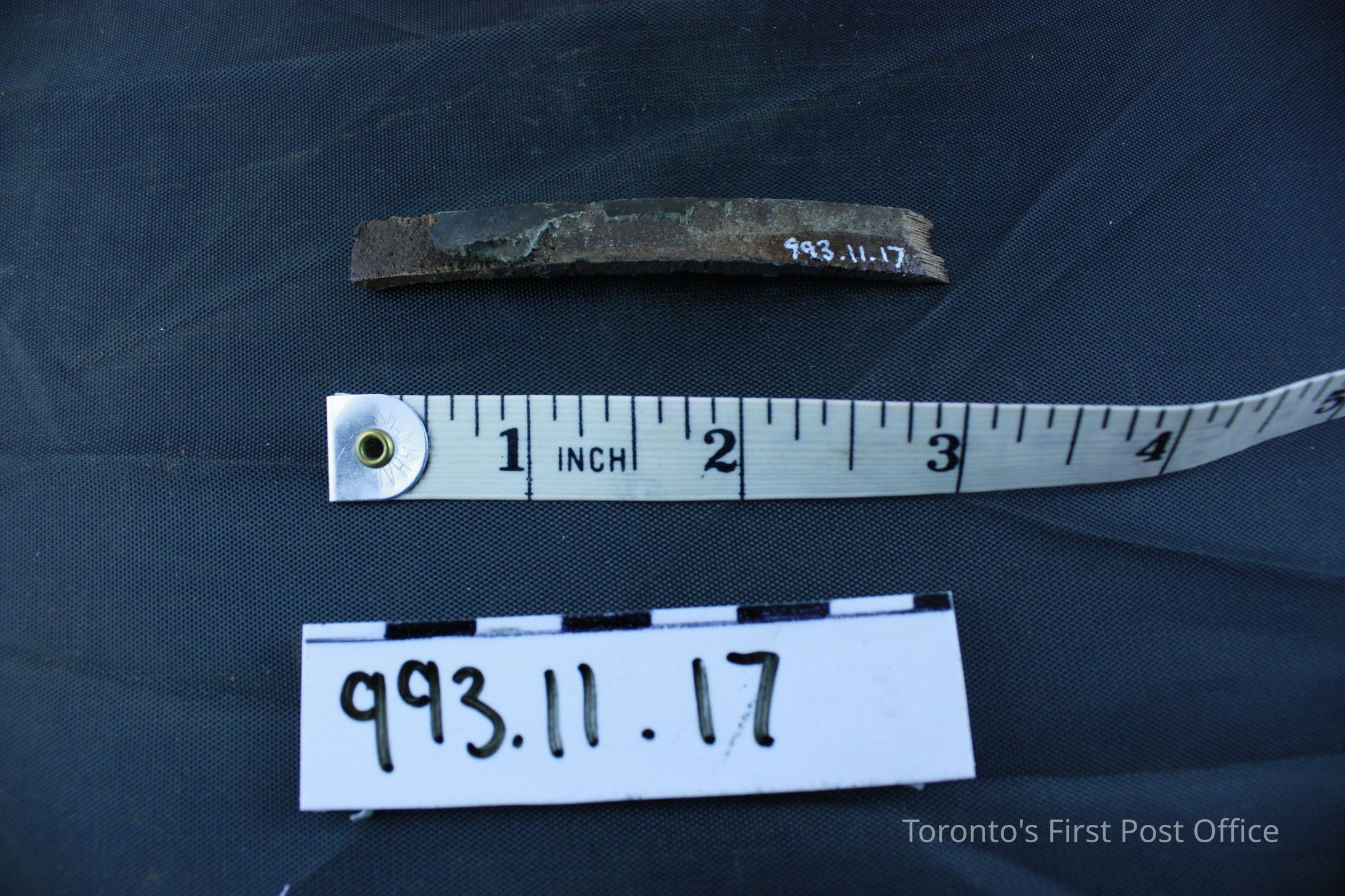 Twenty assorted pieces such as tack, nail, part of metal lock, wood, glass; "found in desk".