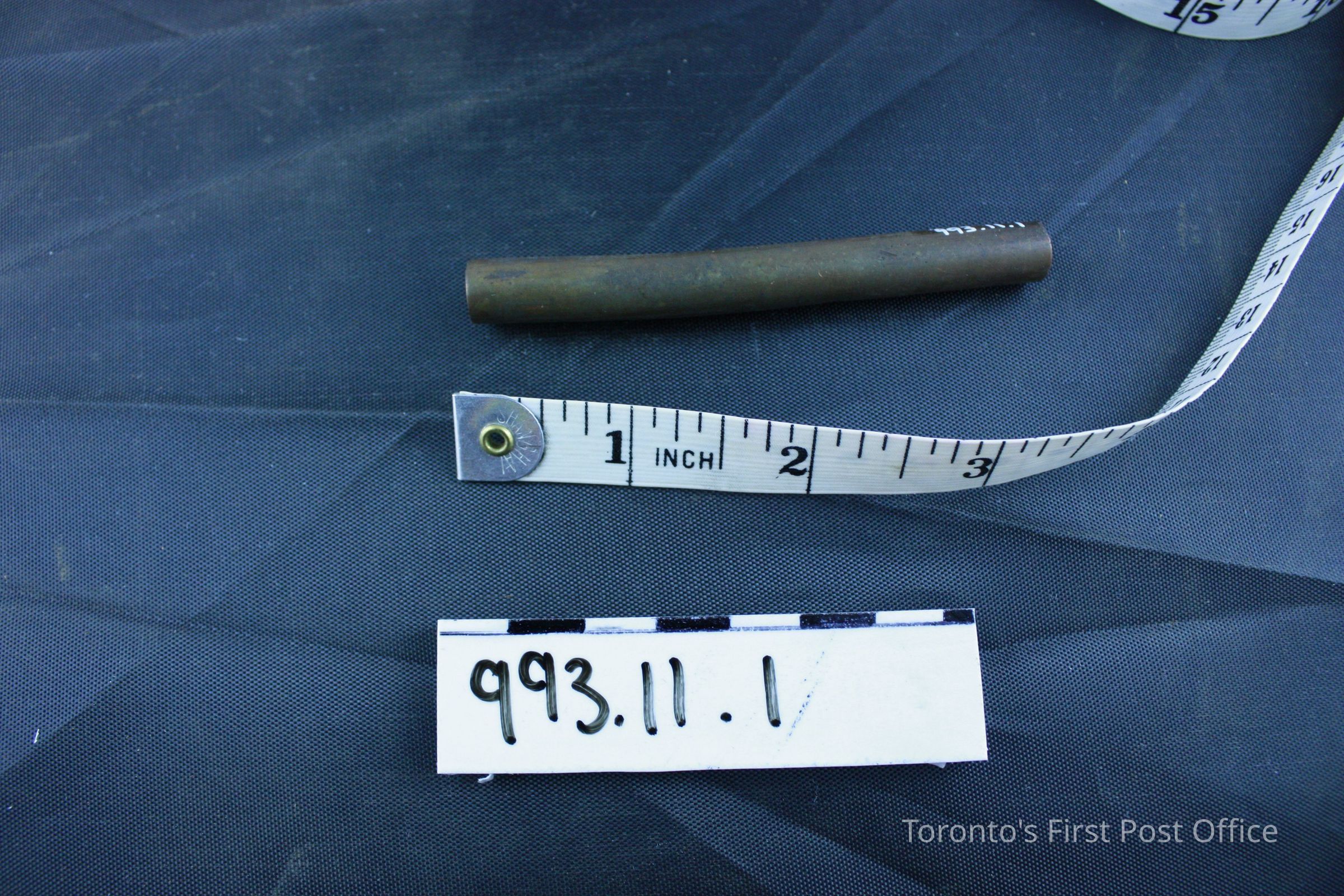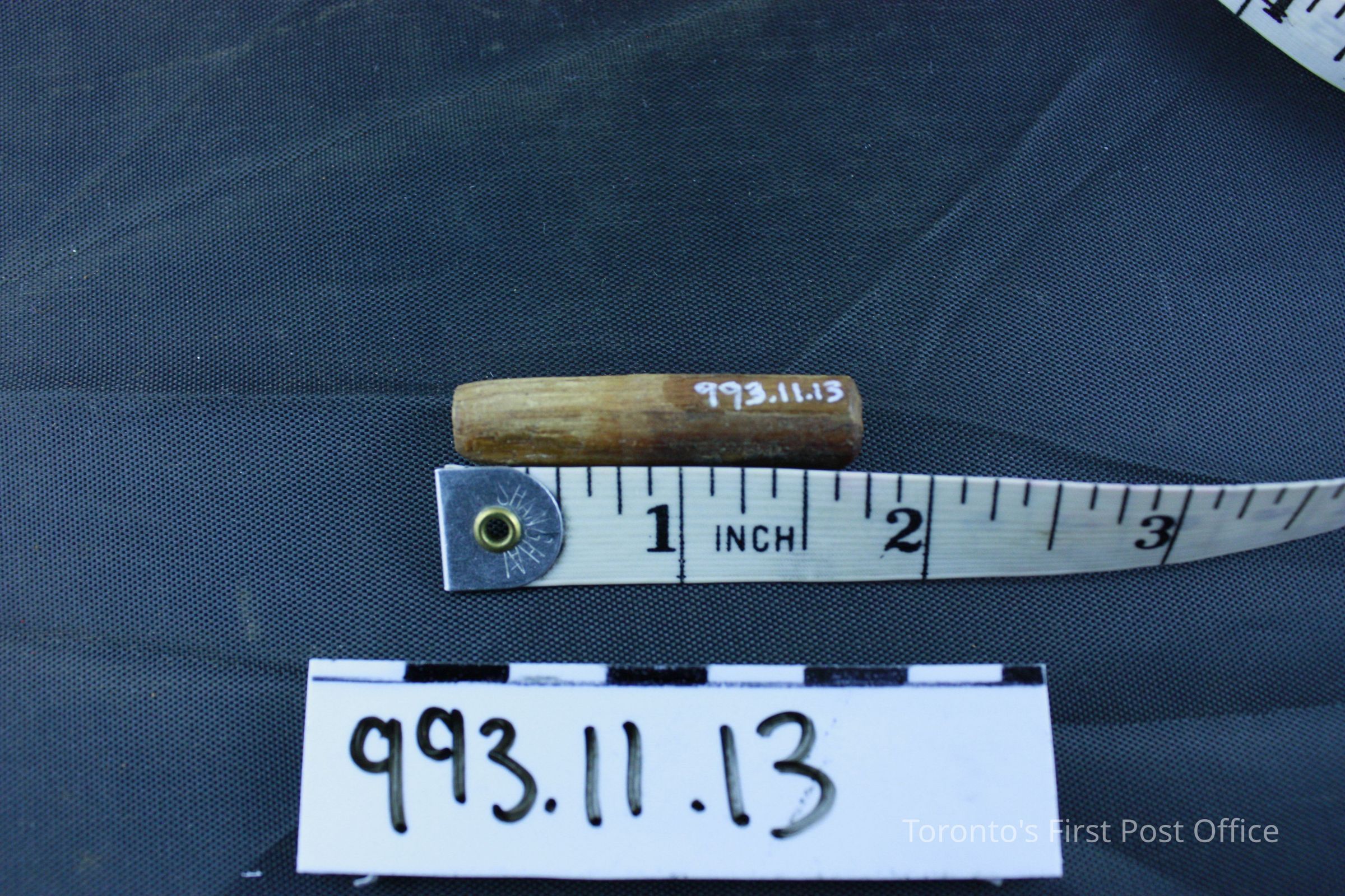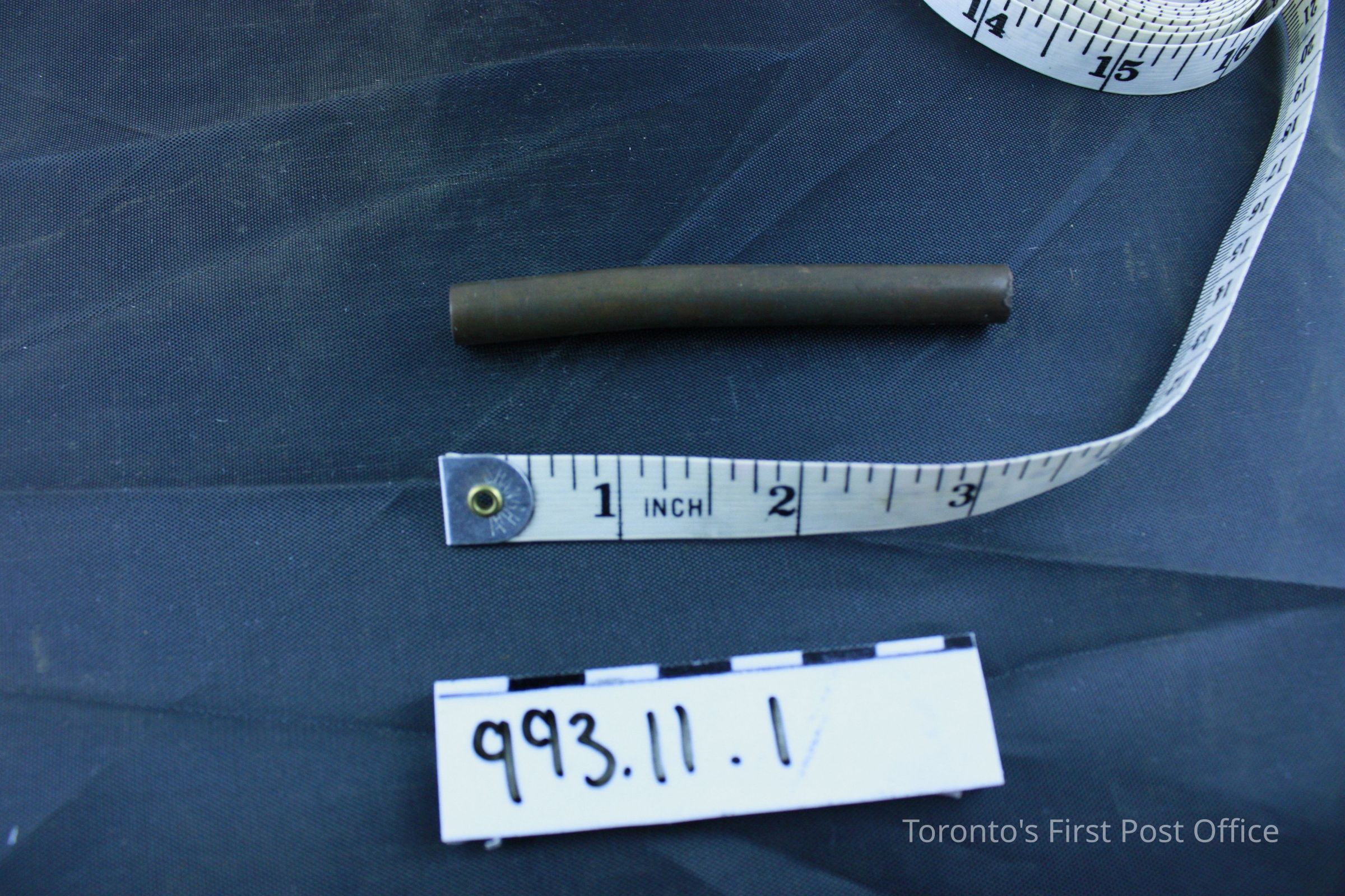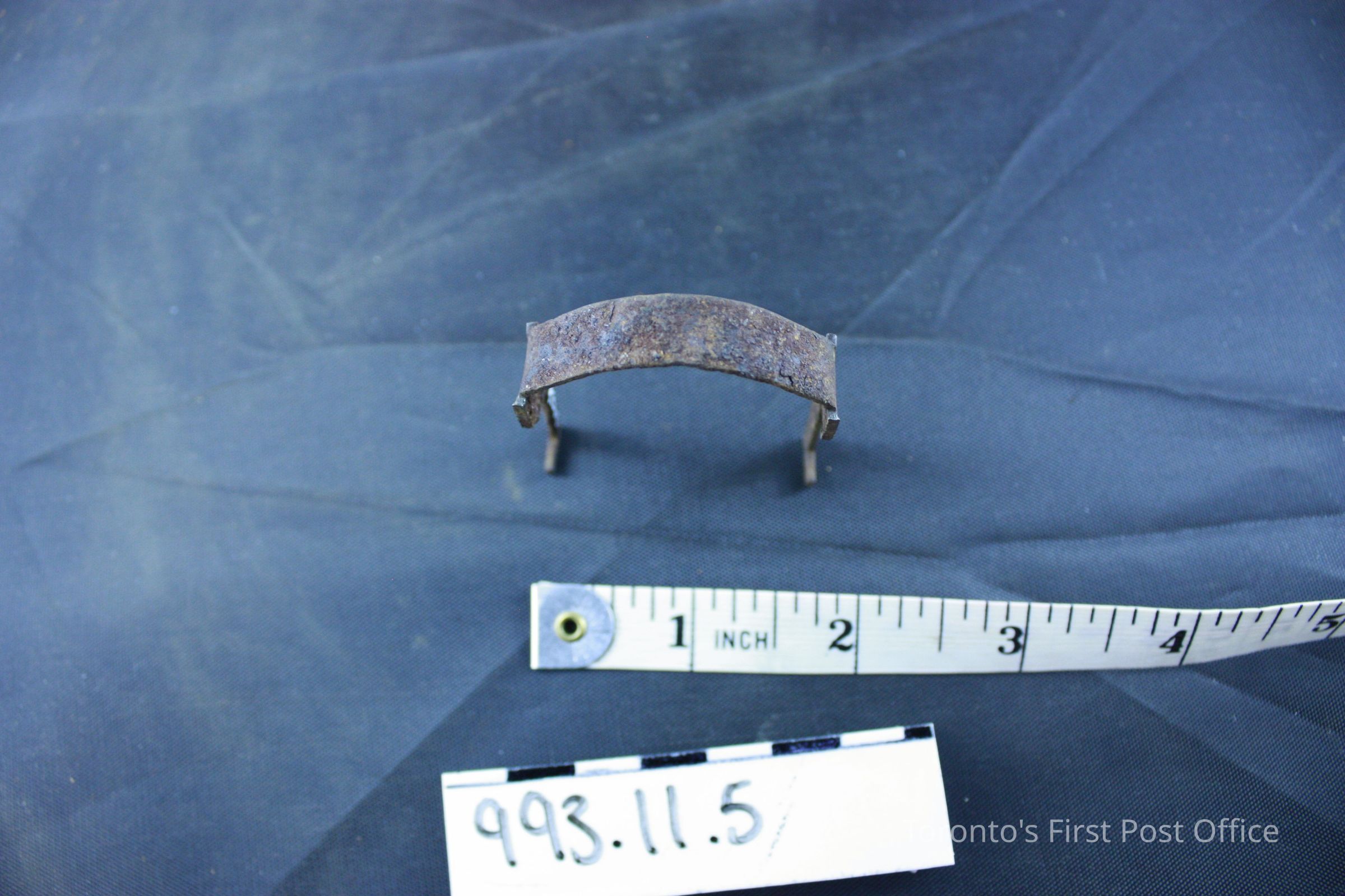 Twenty assorted pieces such as tack, nail, part of metal lock, wood, glass; "found in desk".