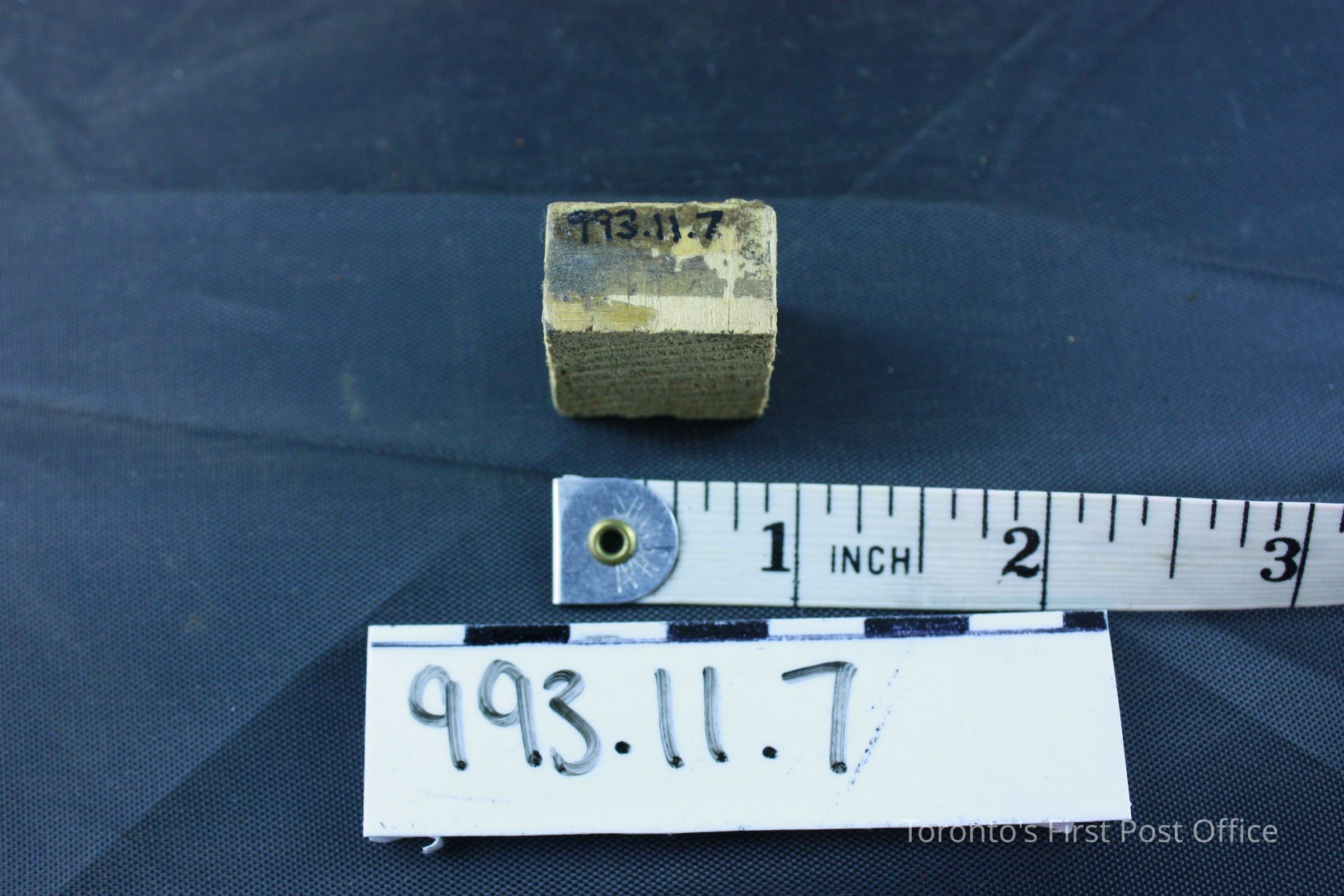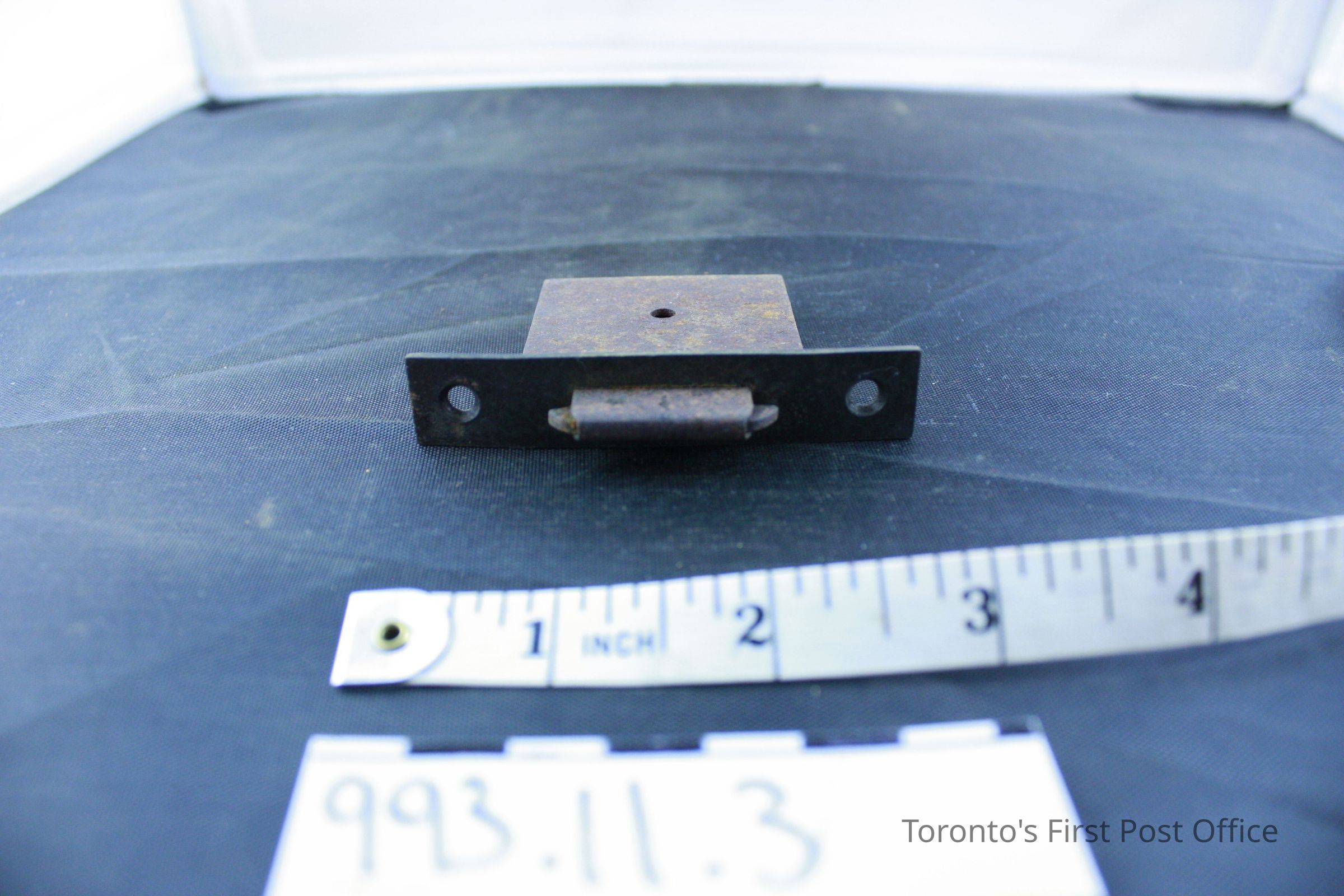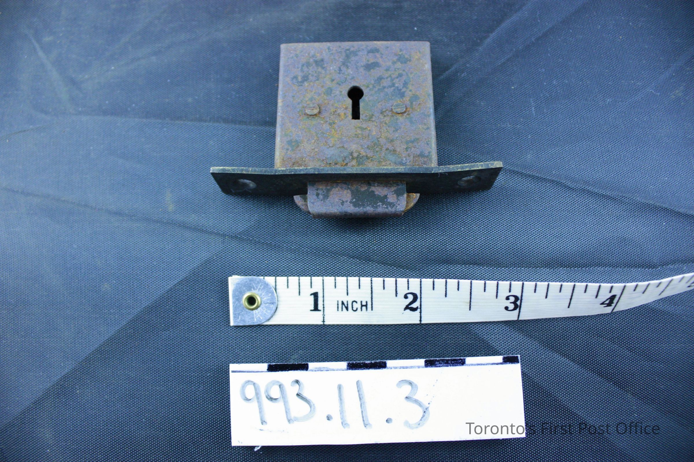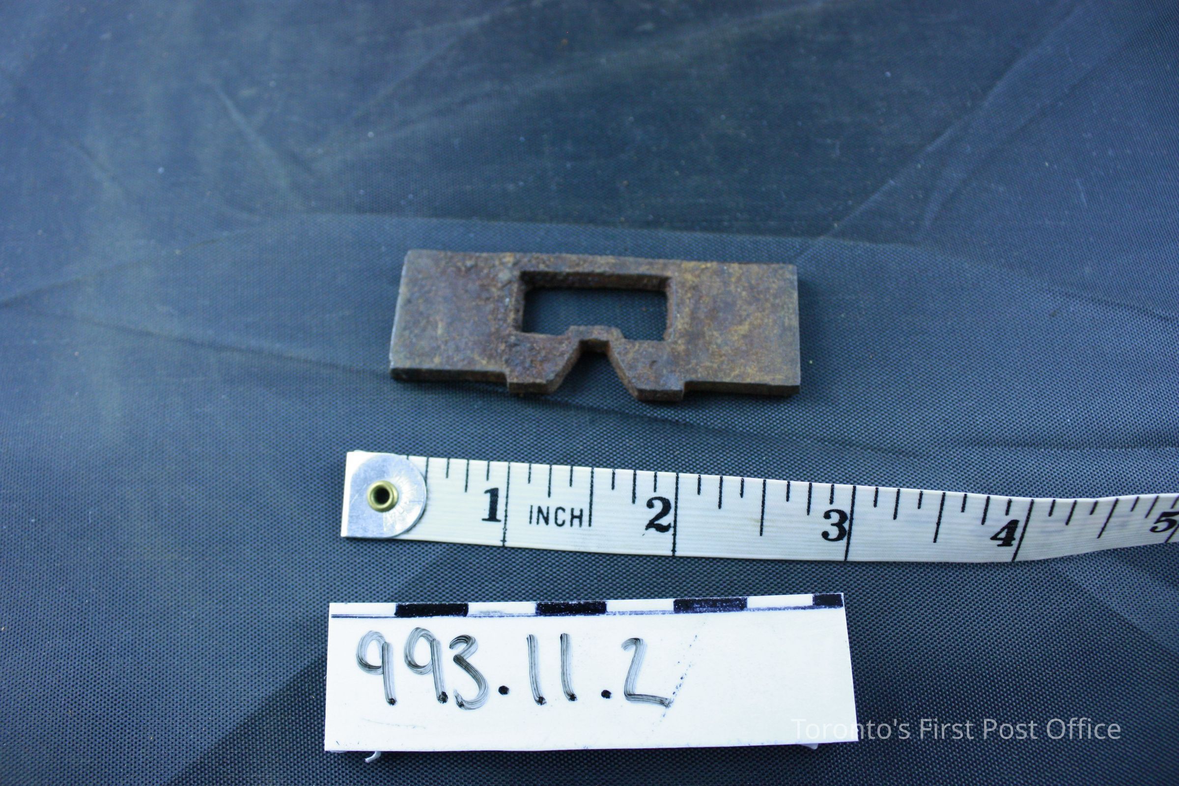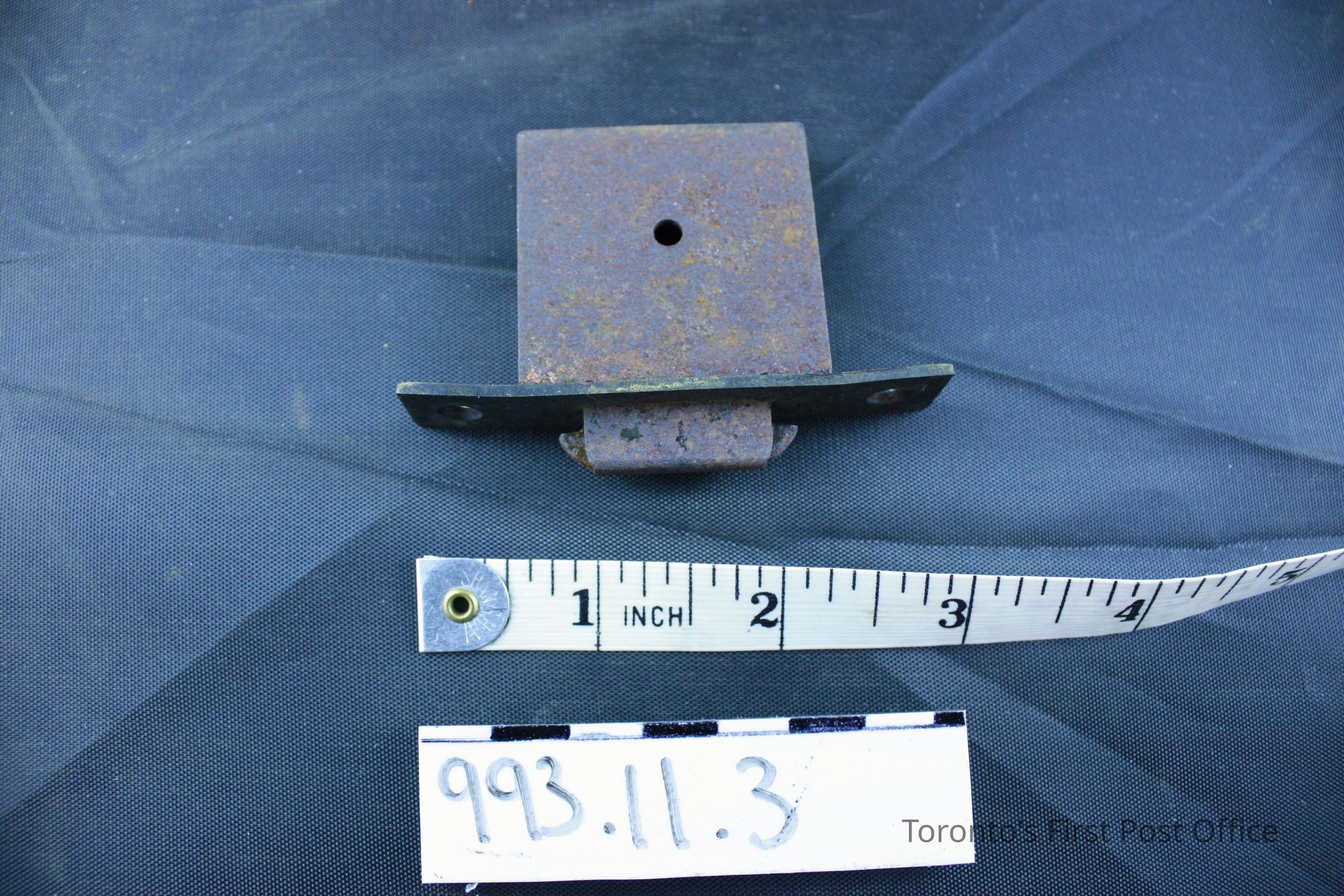 Twenty assorted pieces such as tack, nail, part of metal lock, wood, glass; "found in desk".