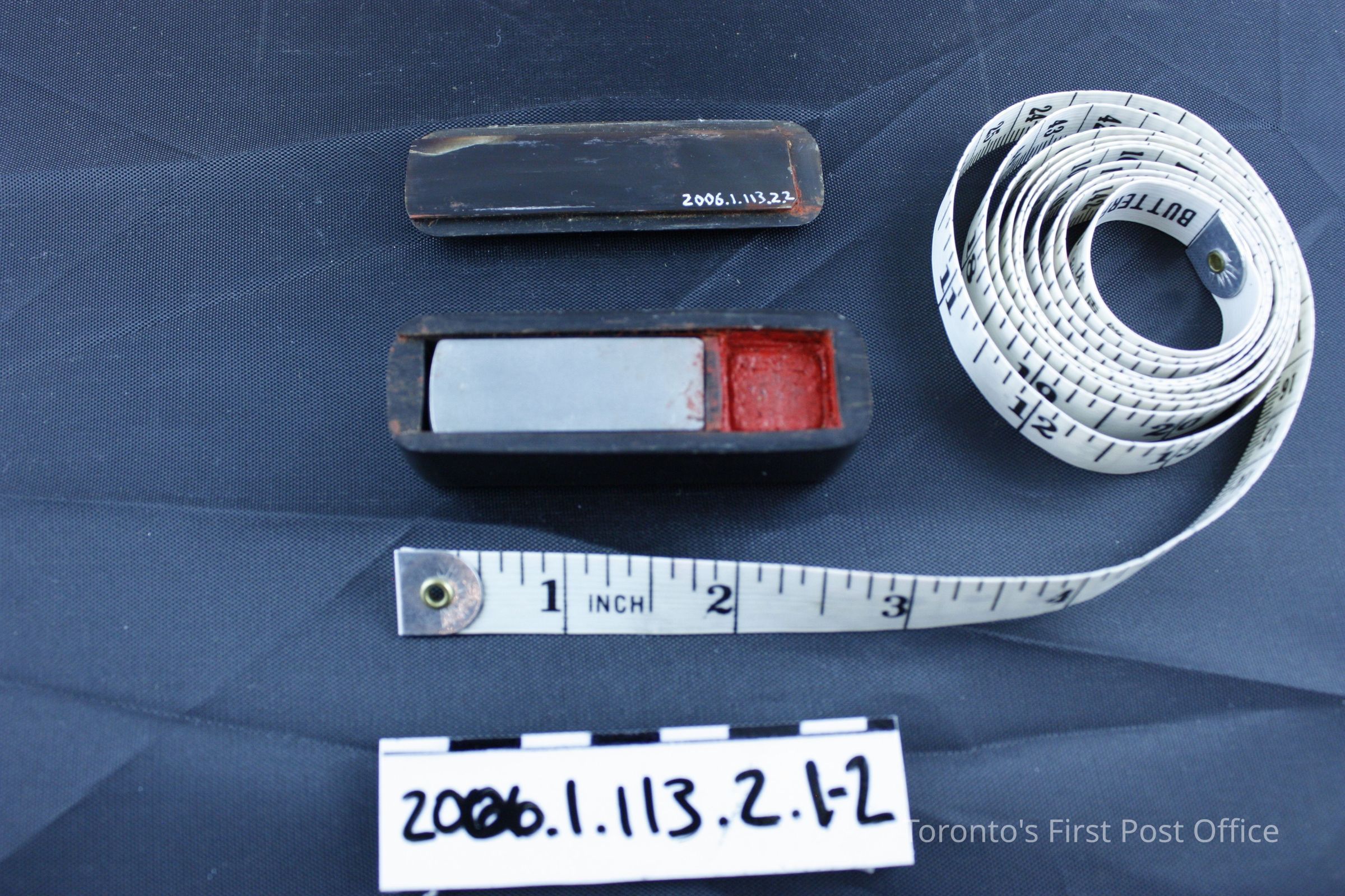 Chinese steel stamp with red stamp pad in tortoise shell case with slide lid.Dimensions