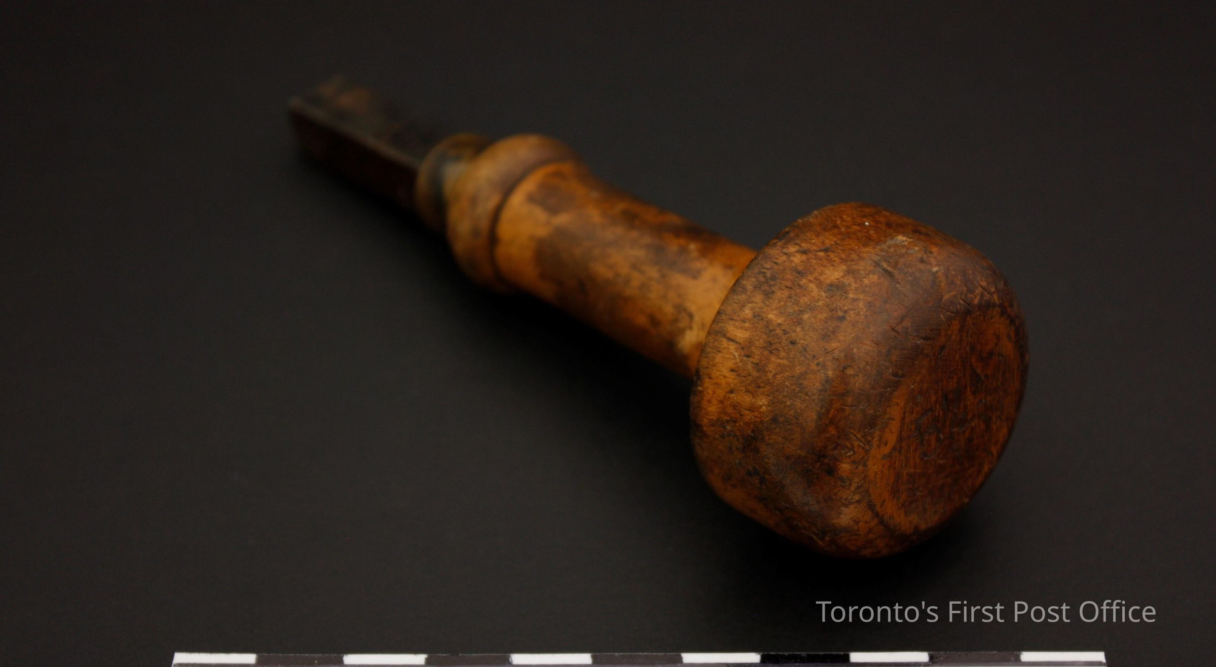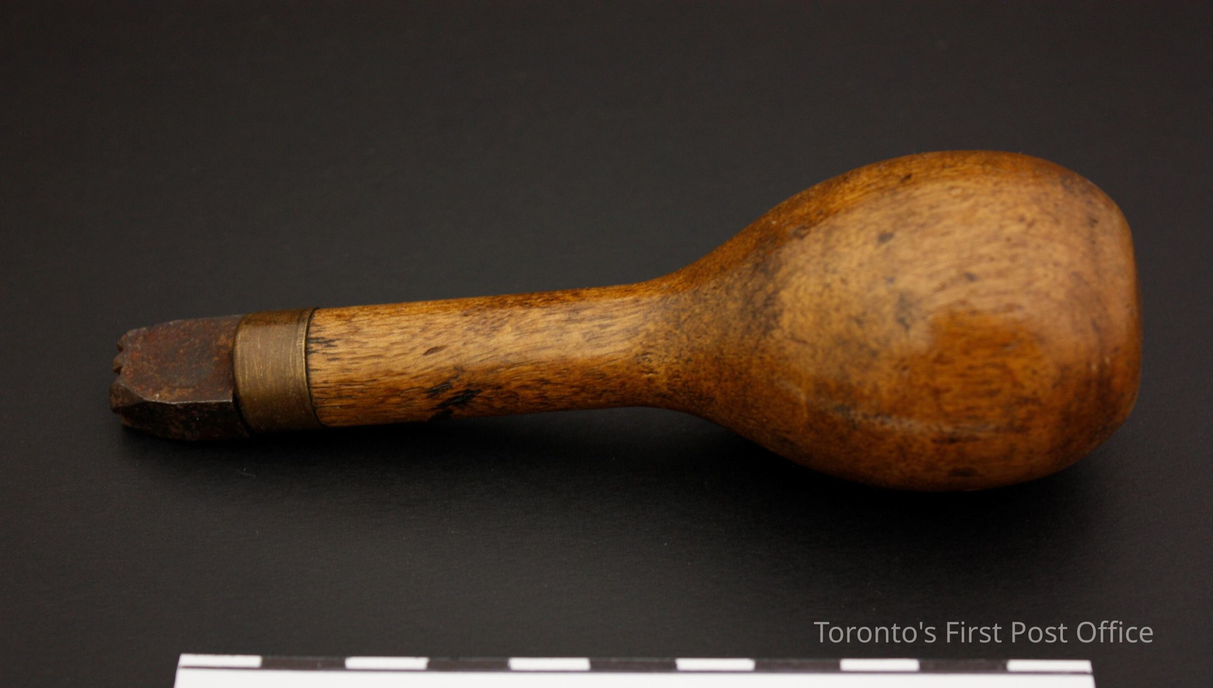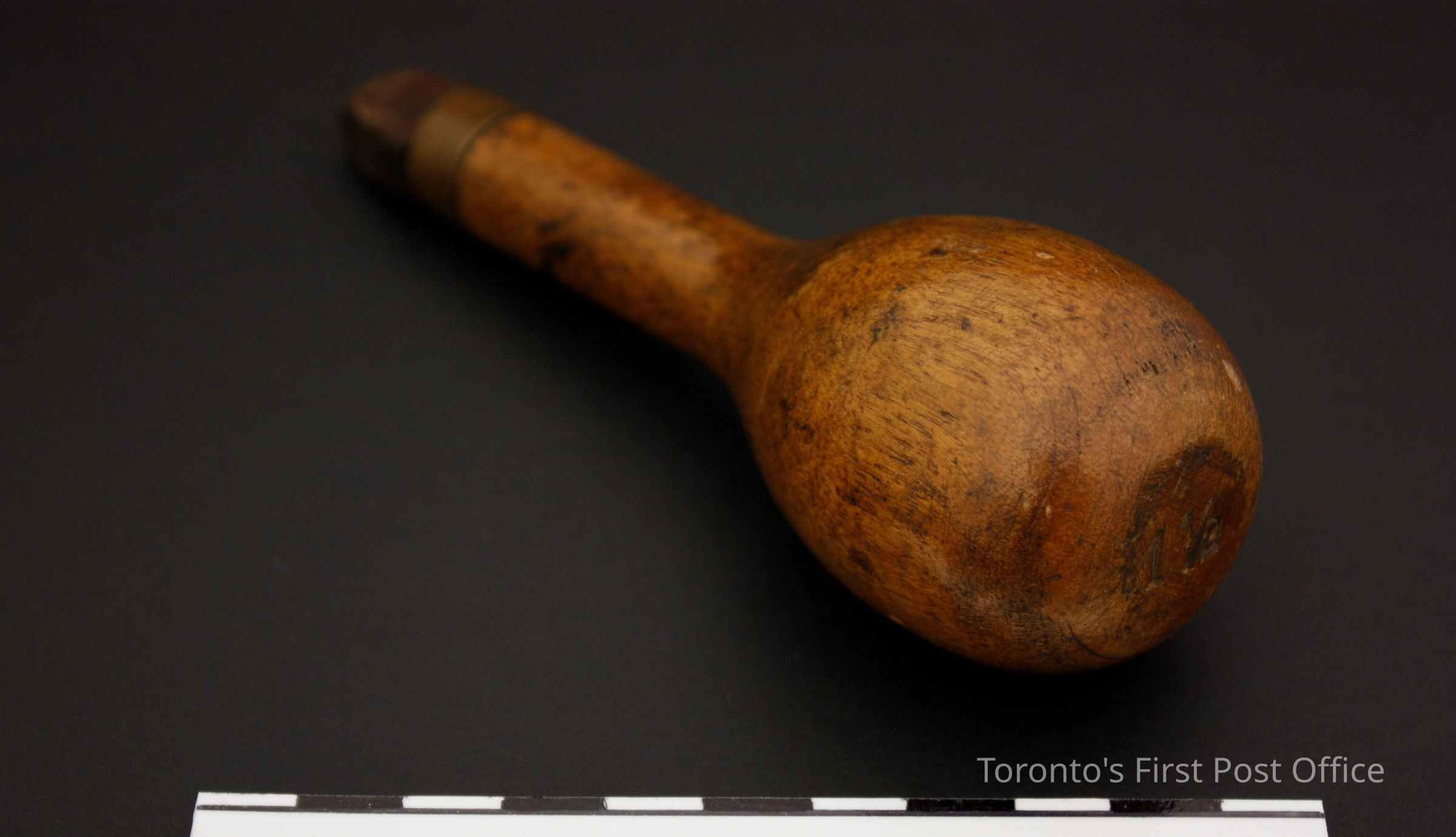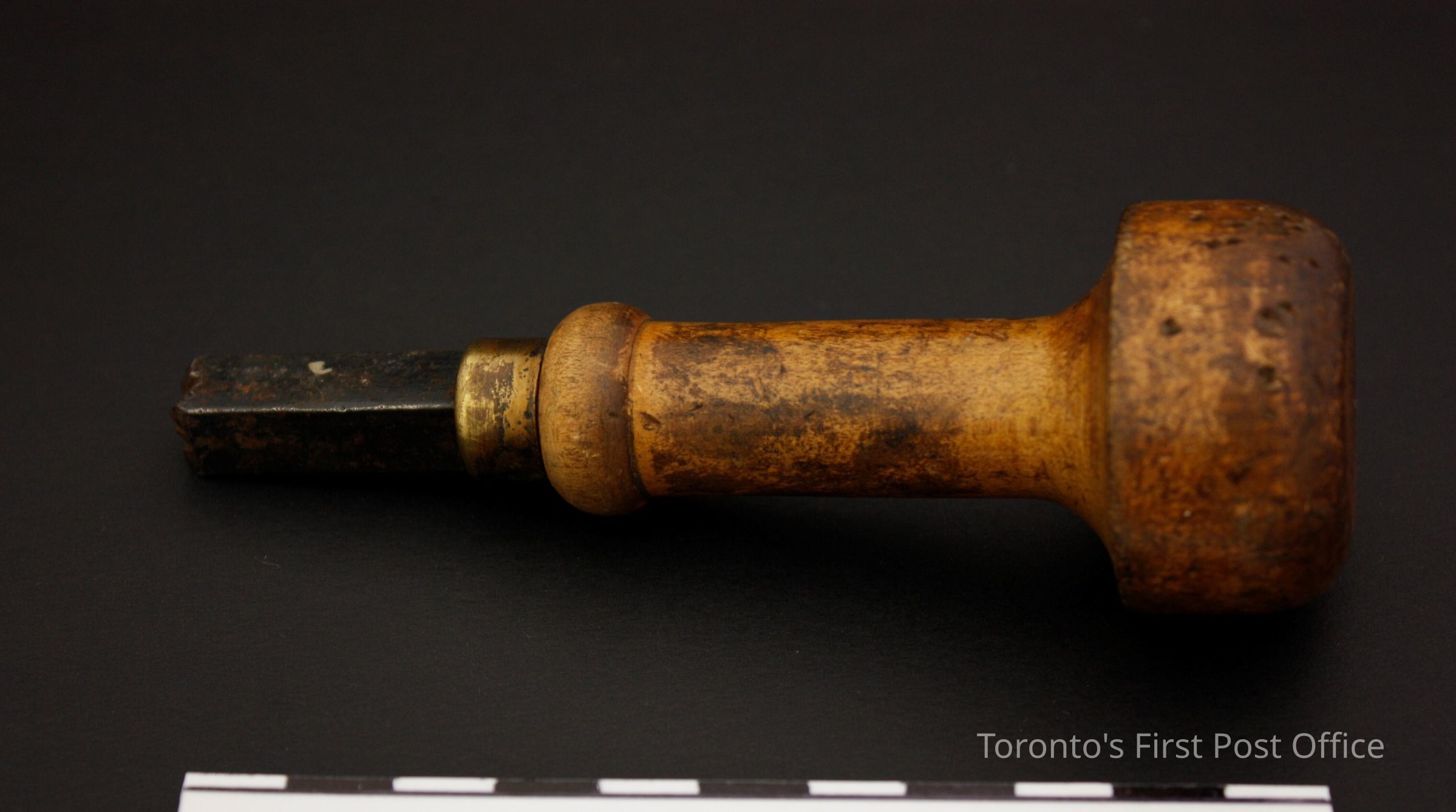 Four hand stamps; all with wooden handles; brass collars; steel markers; each has marker number on top of handle; stamp impressions as follows: .1: "1 1/8"; .2: "5"; also marked "WARRA…" on side of marker; .3: "5 1/2" with red line of paint on handle; .4: "5 1/2".Dimensions