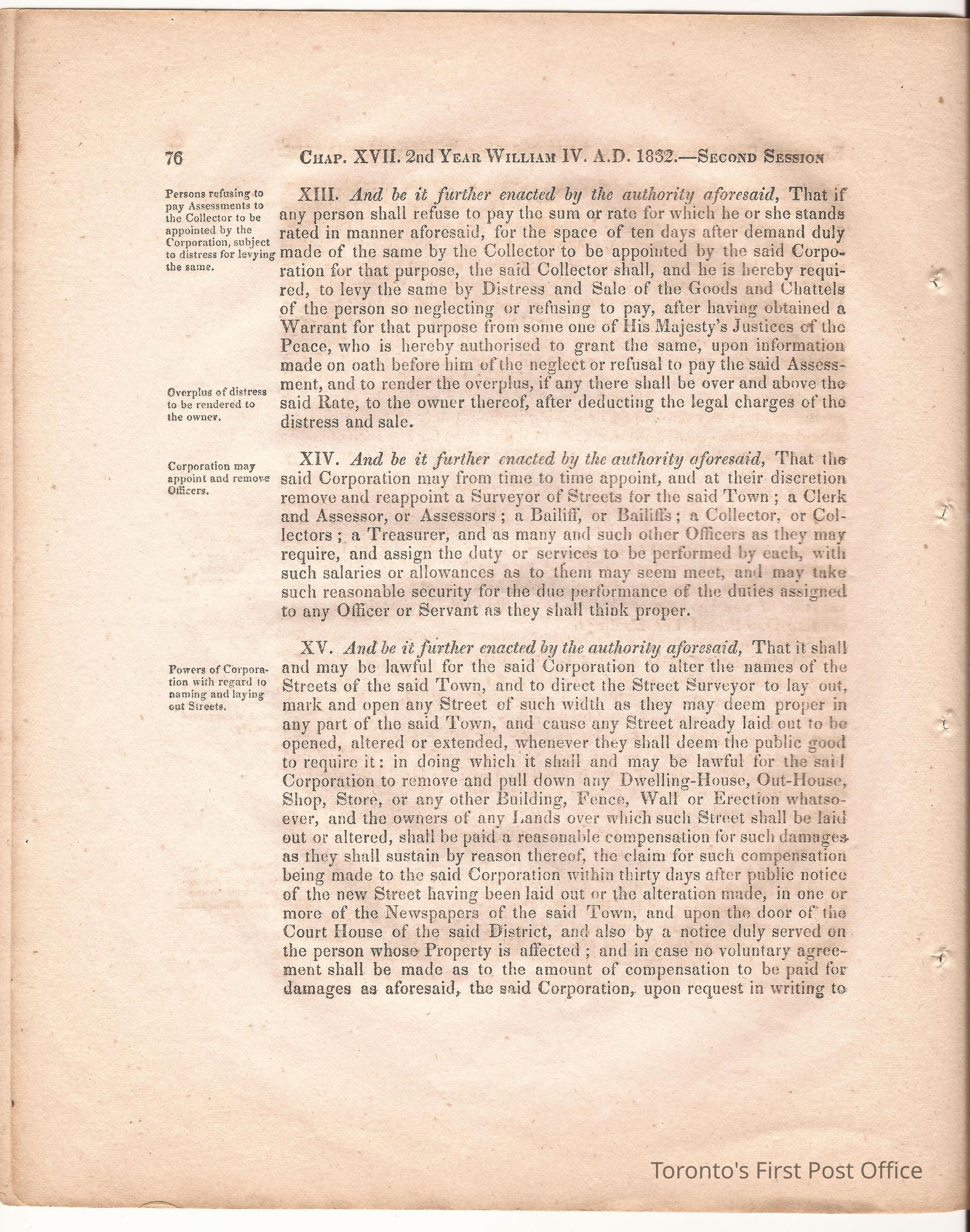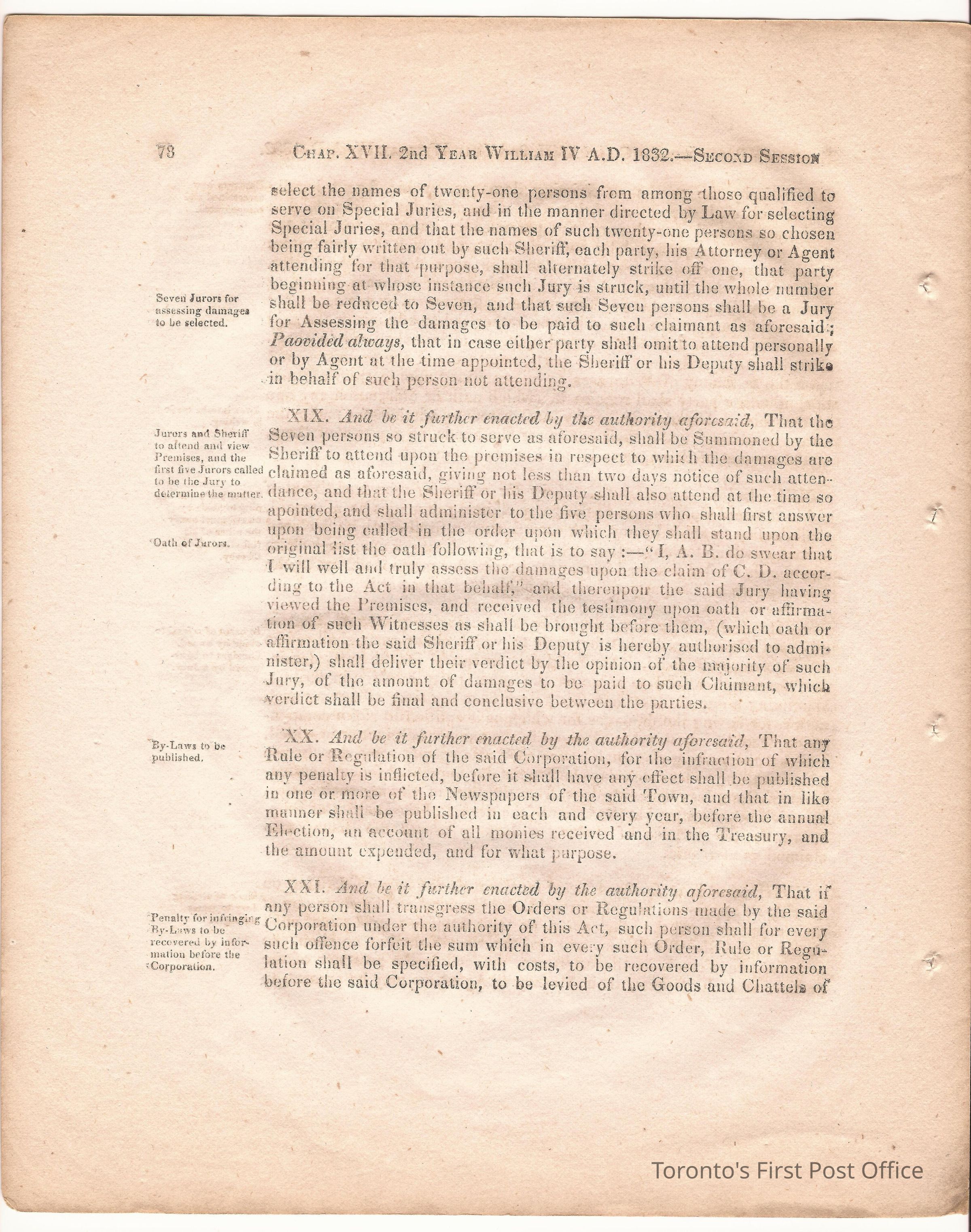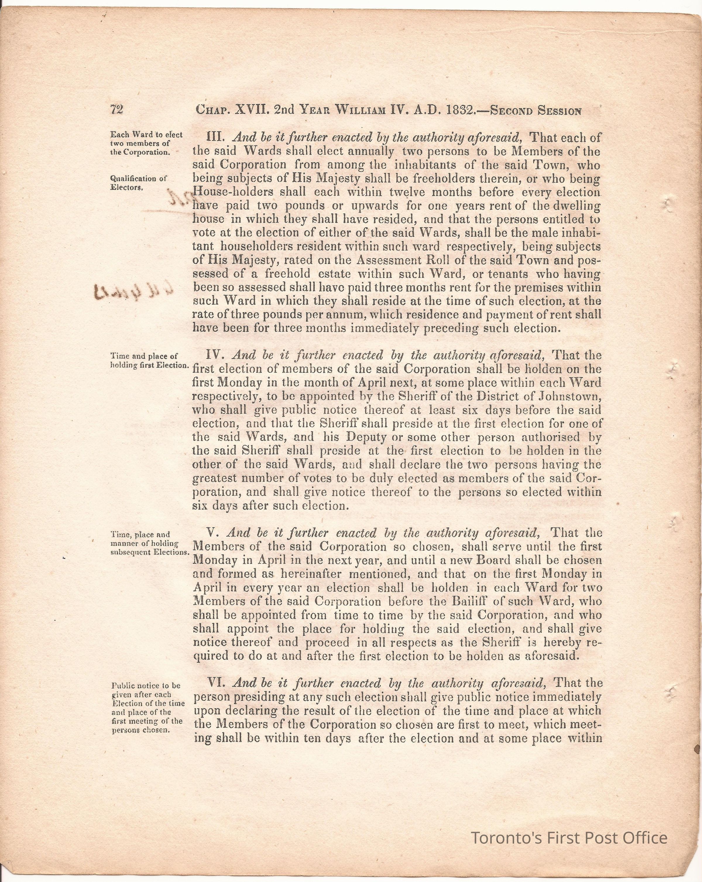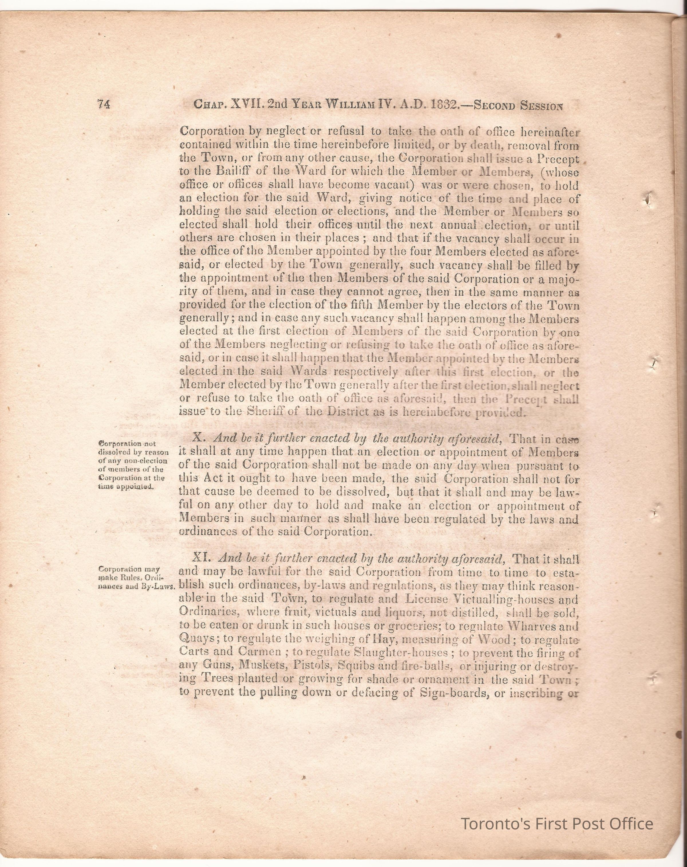 Statute; chapter XVII "An Act to establish a Police in the Town of Brockville in the District of Johnstown"; passed 28 Jan 1832; pages 71-80 (part of larger book); was cotton bound, now loose.Dimensions