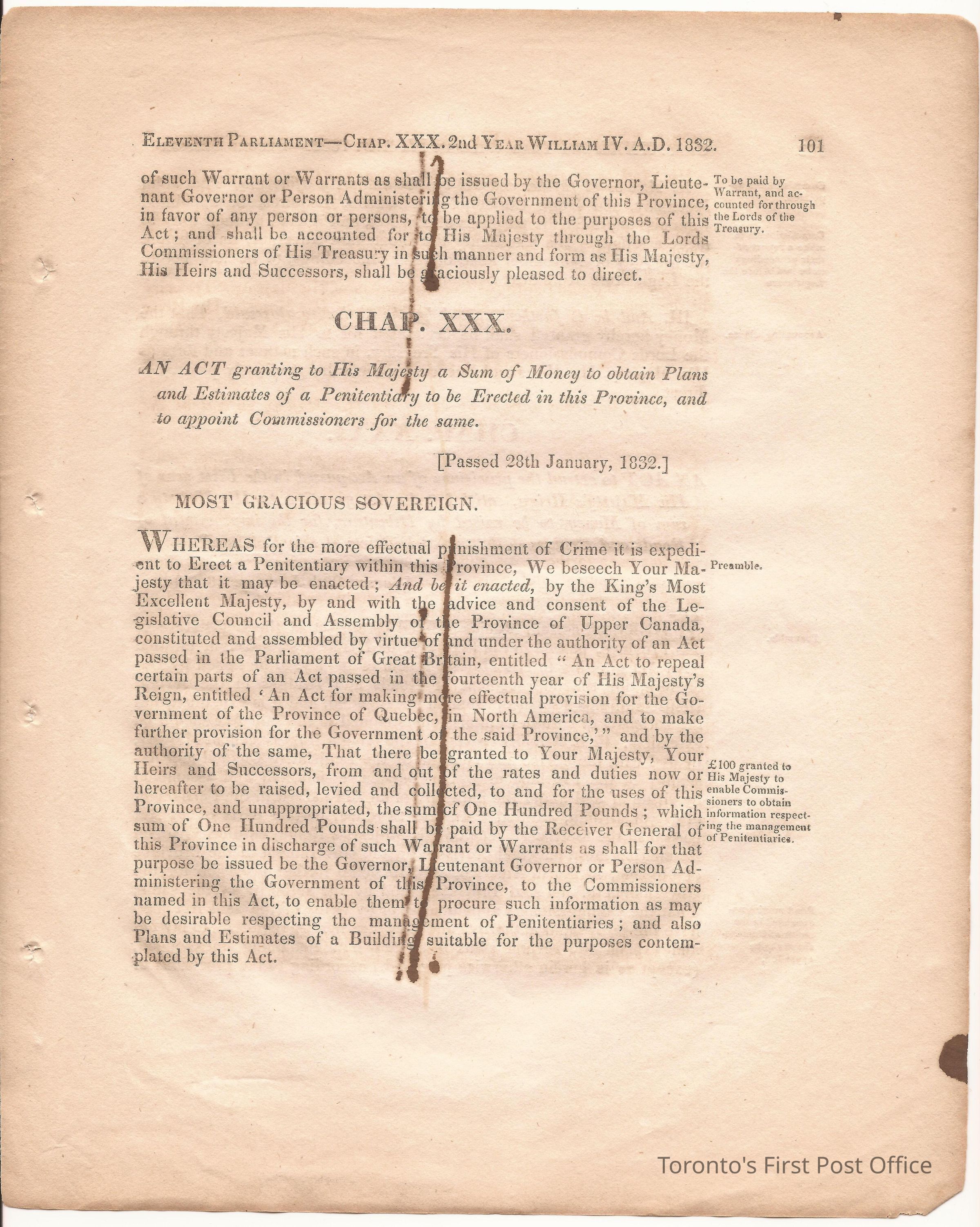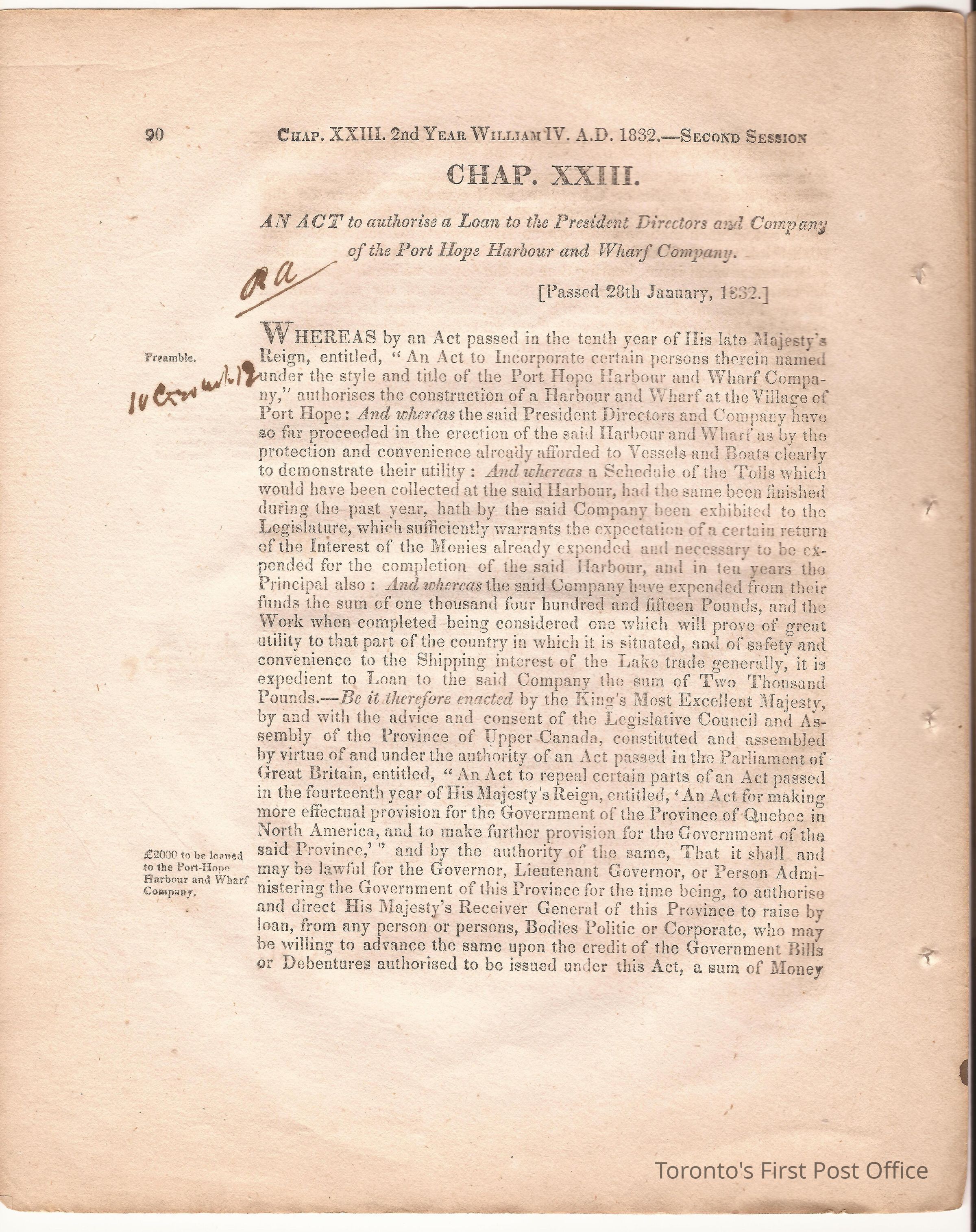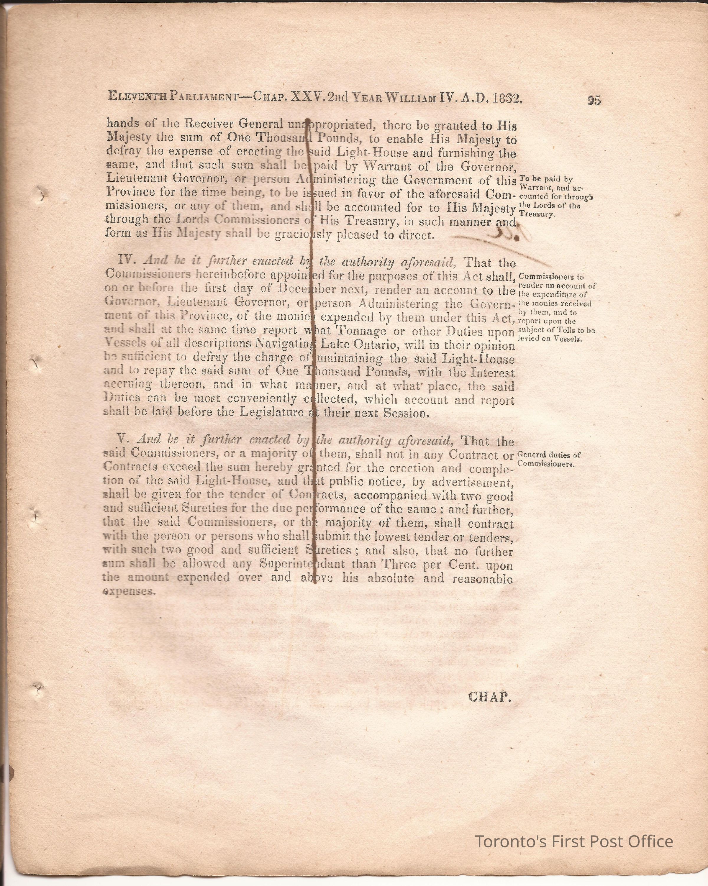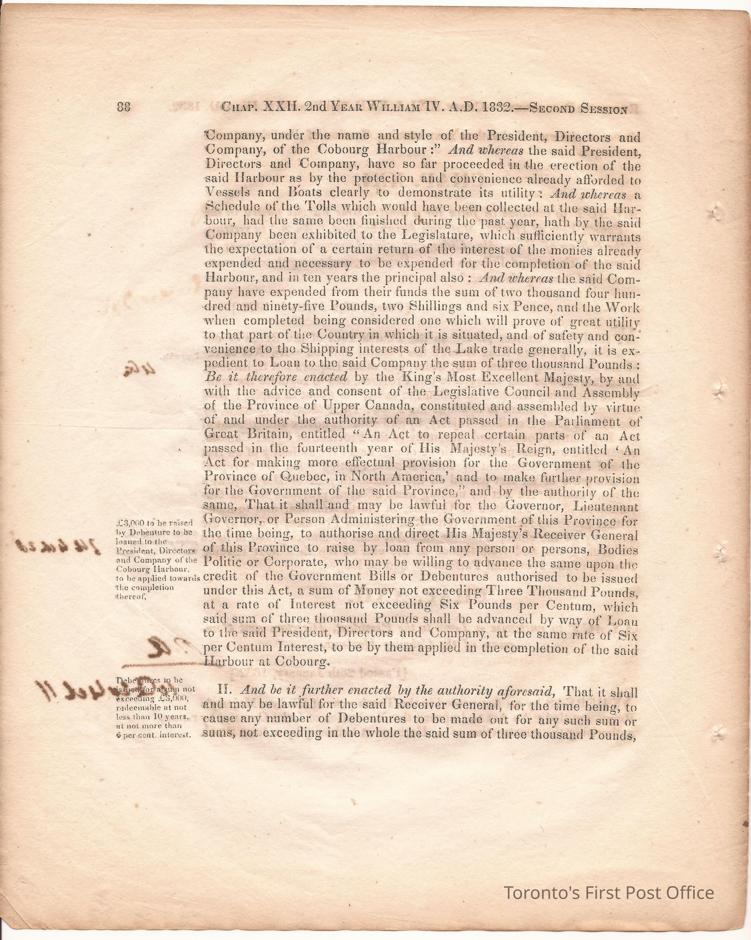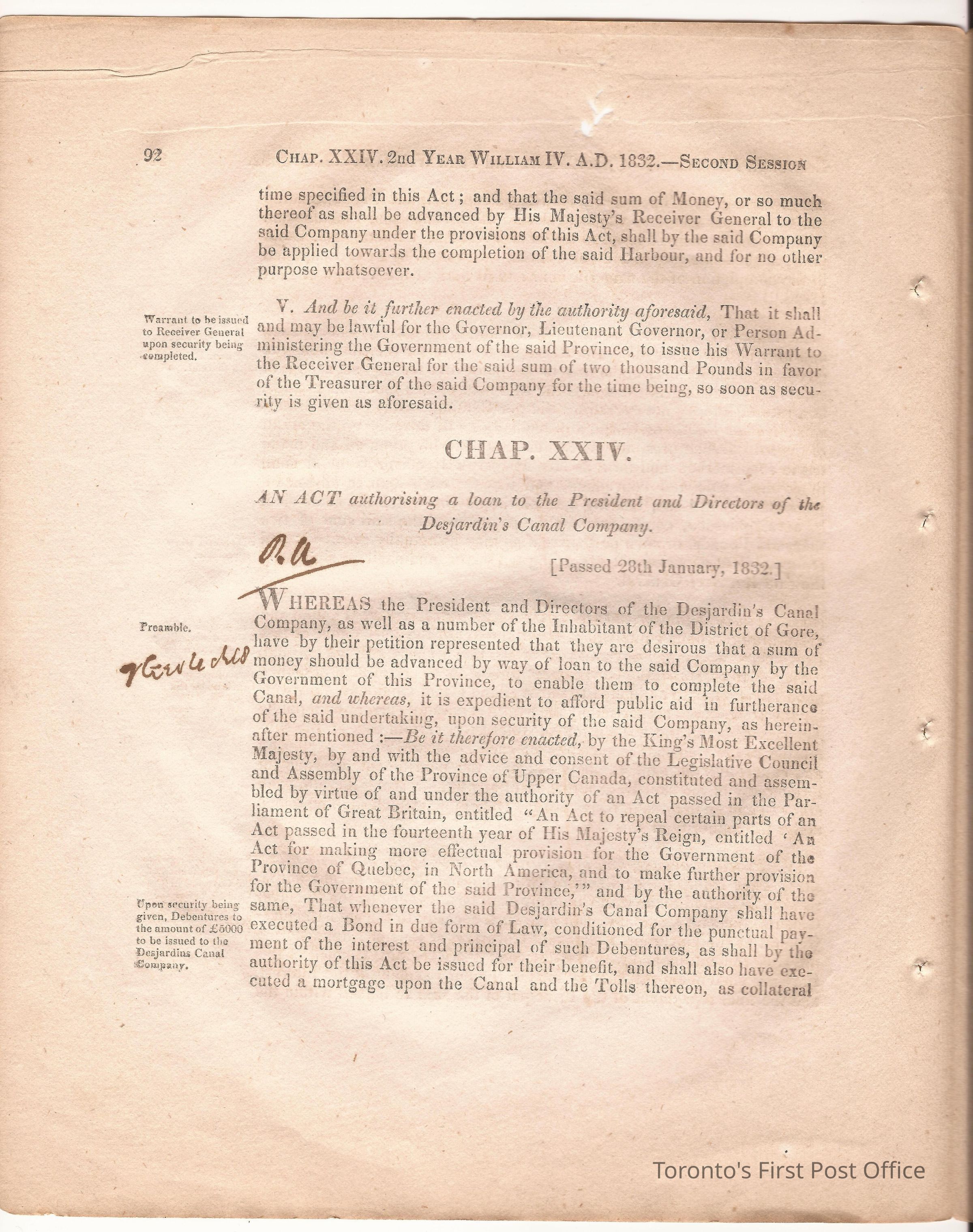 Statute; chapter XIX "… to ascertain the N. Boundary Line of the Township of Niagara and to establish a Public Highway…"; pages 81-106 (part of larger book); was cotton bound, now loose; some inked notations and marks.Dimensions