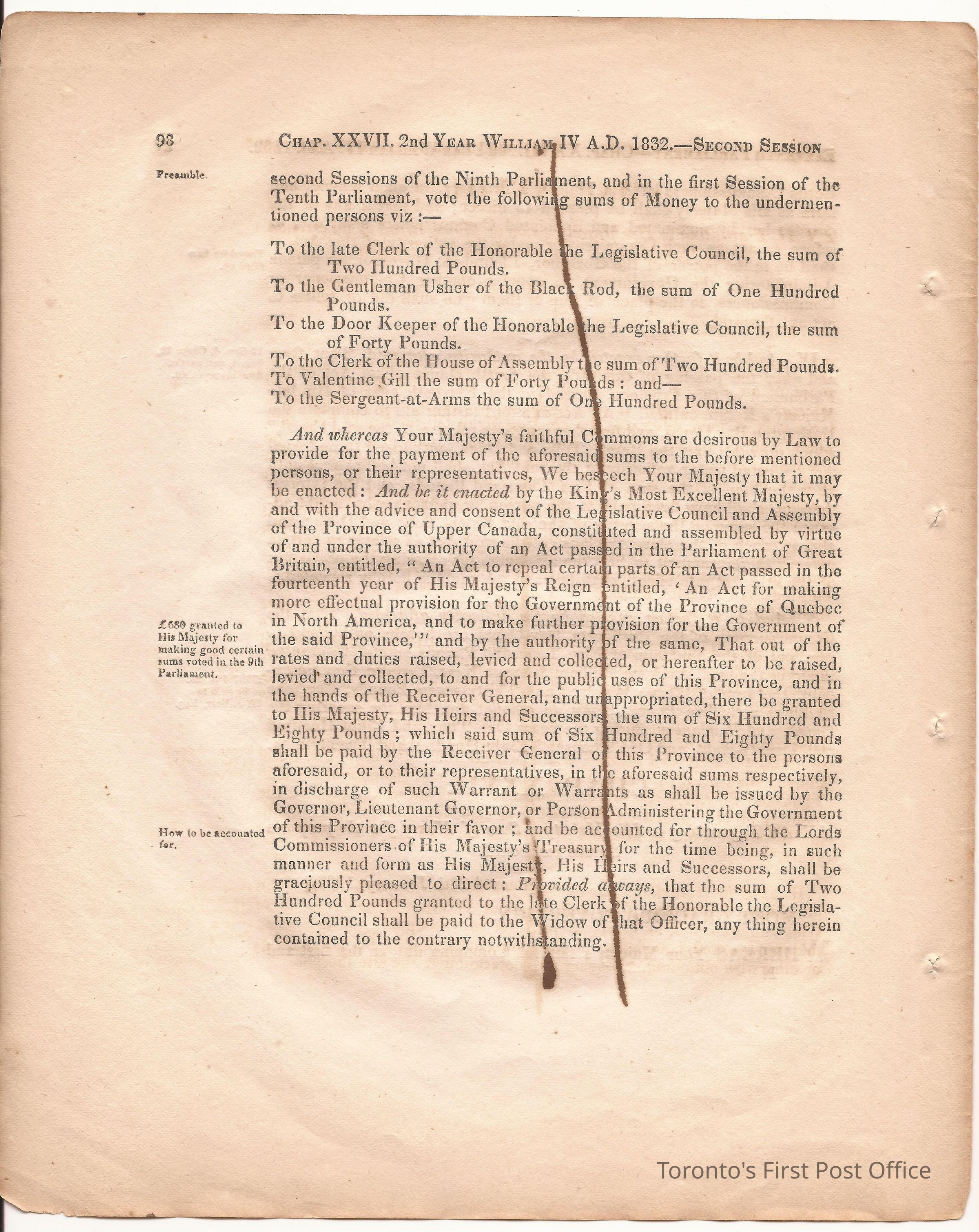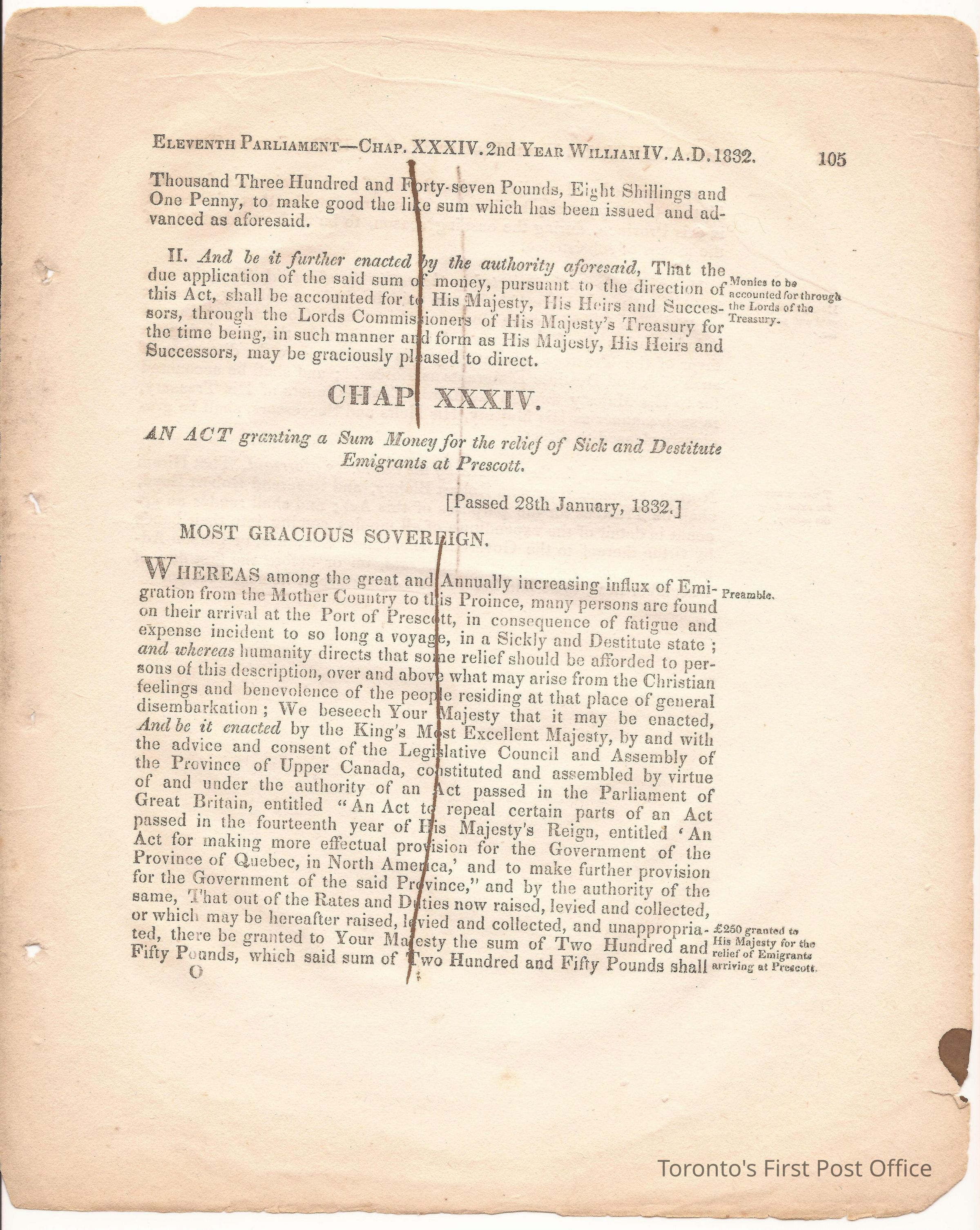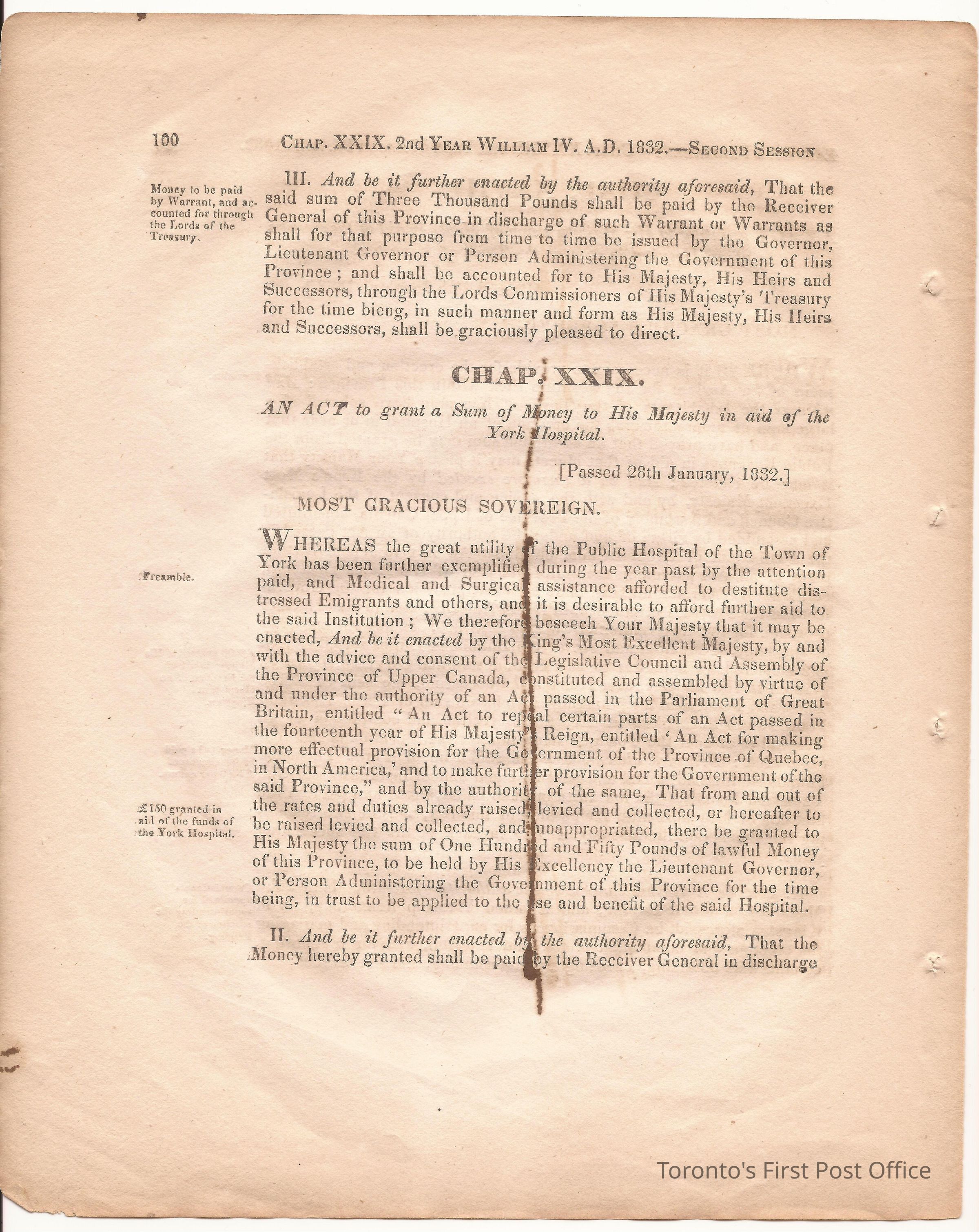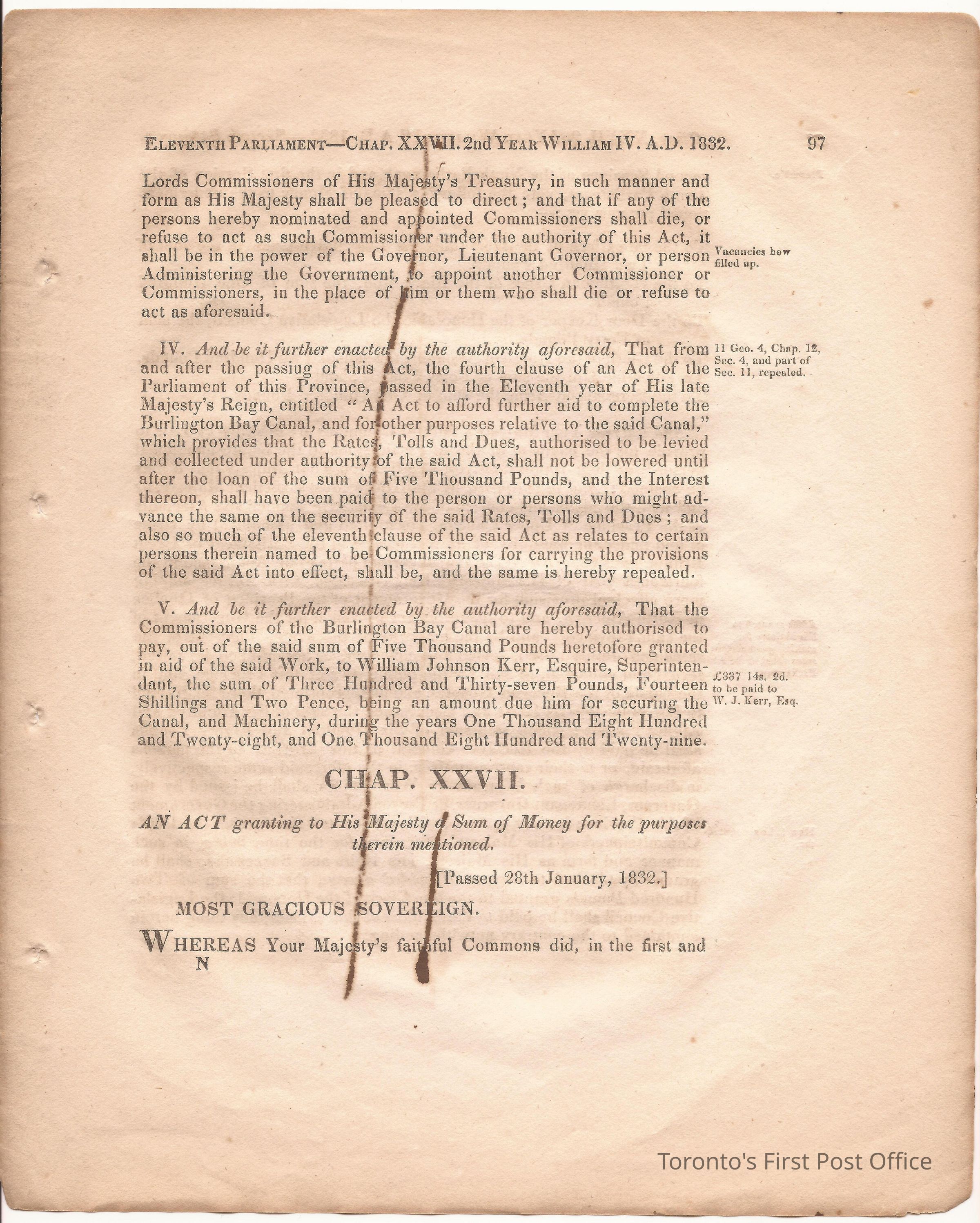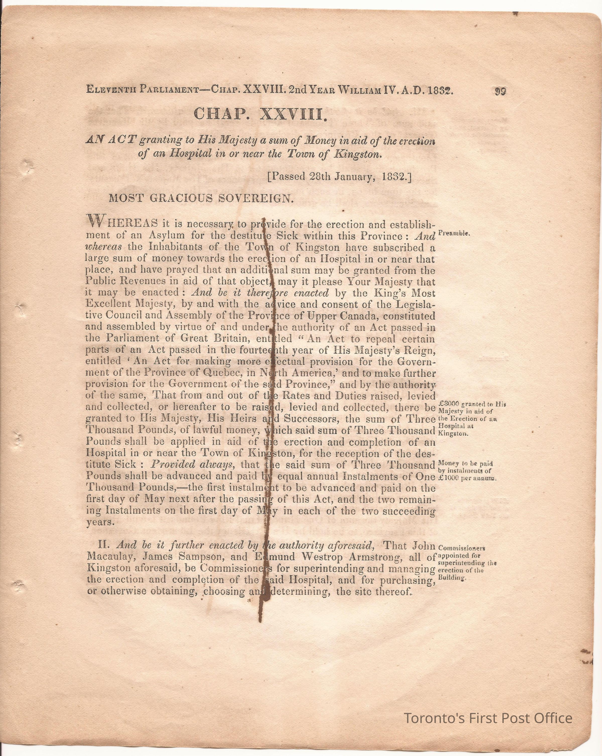 Statute; chapter XIX "… to ascertain the N. Boundary Line of the Township of Niagara and to establish a Public Highway…"; pages 81-106 (part of larger book); was cotton bound, now loose; some inked notations and marks.Dimensions