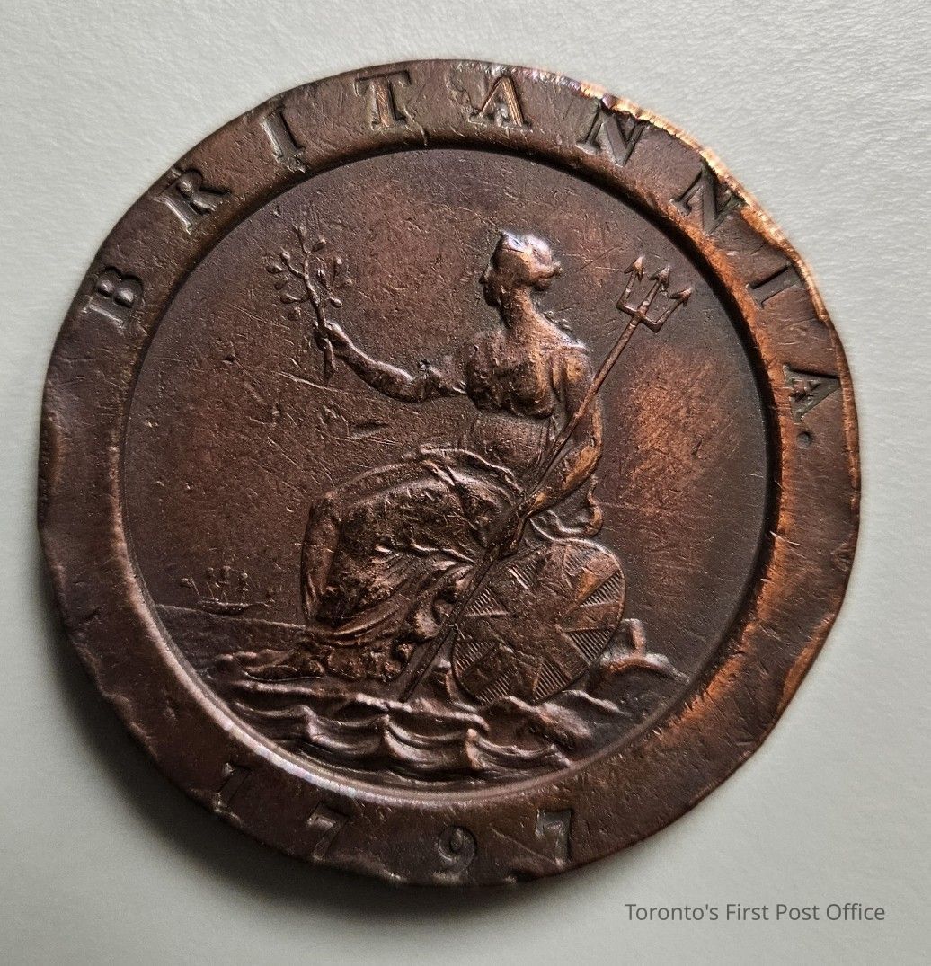 Penny token; copper; George III; 1797; worth 10 pence sterling.