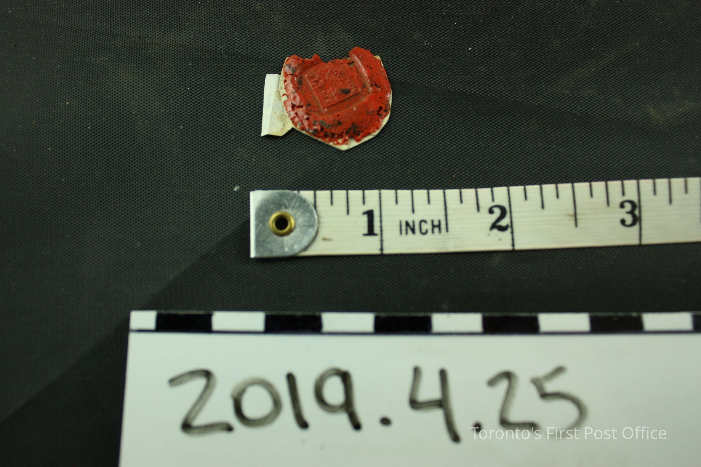 Cut out of red wax seal on paper, with bits of black wax mixed in. Seal design: coat of armsDimensions