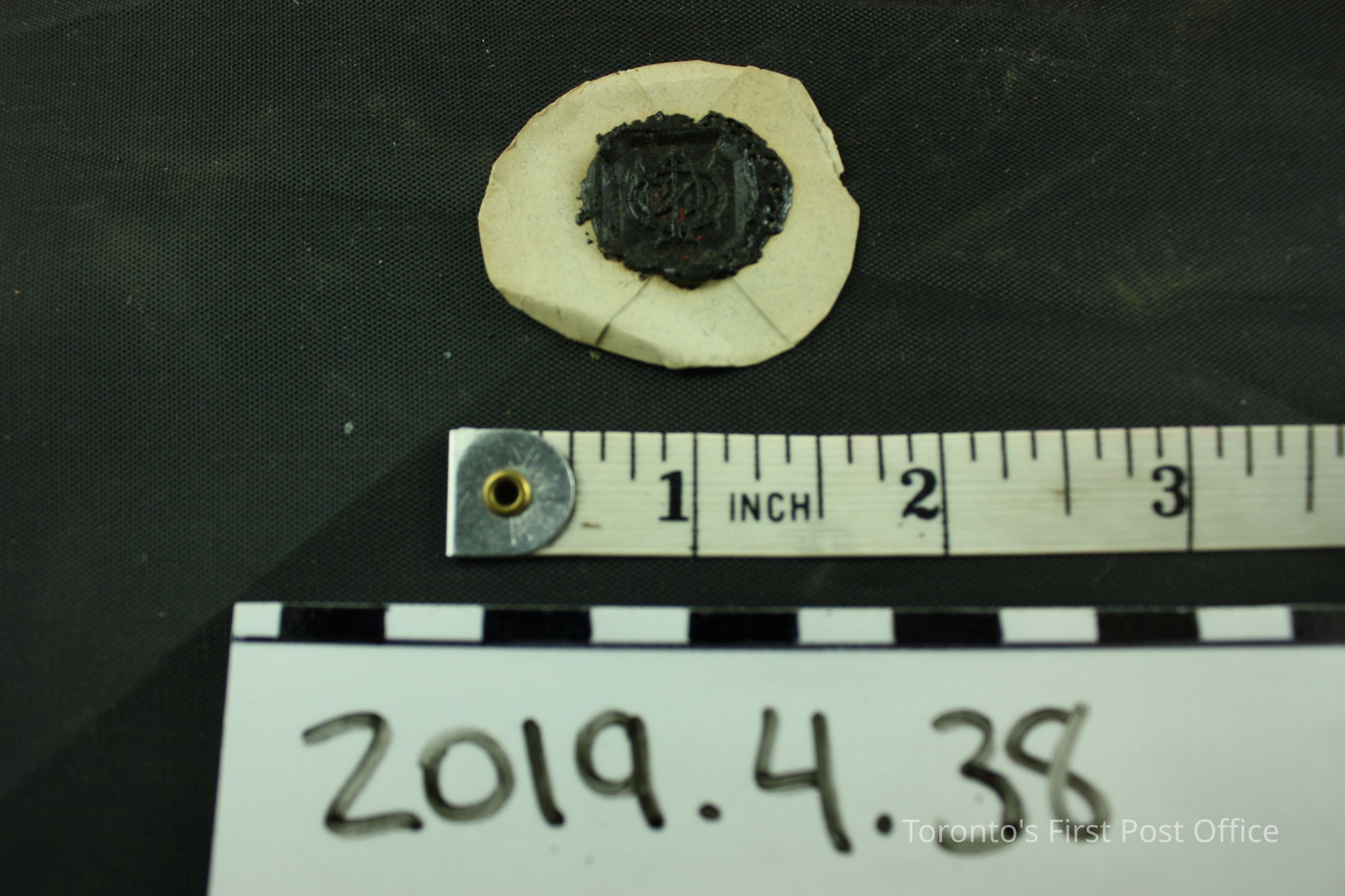 Cut out of black wax seal on paper, seal design: spade sign