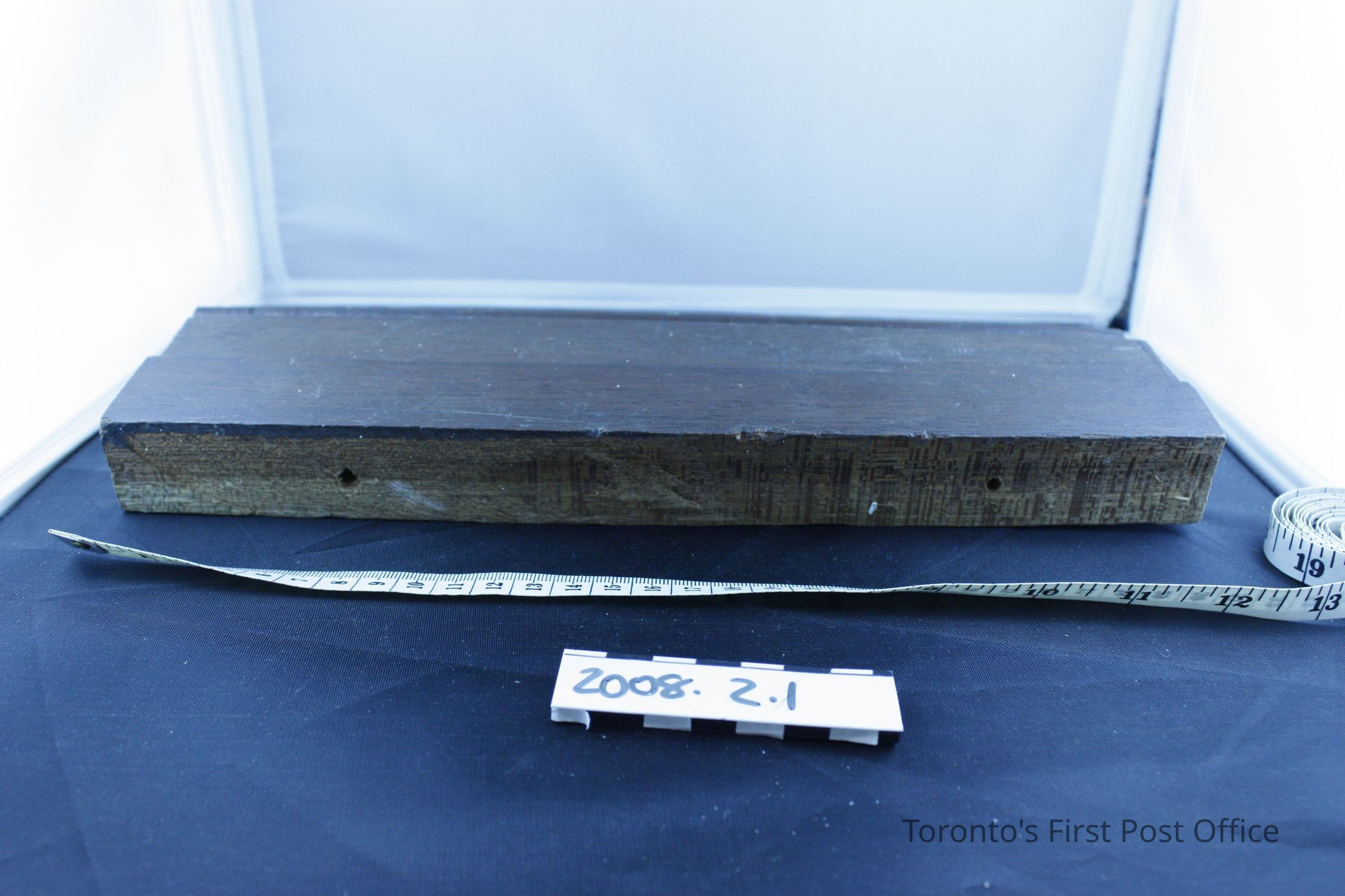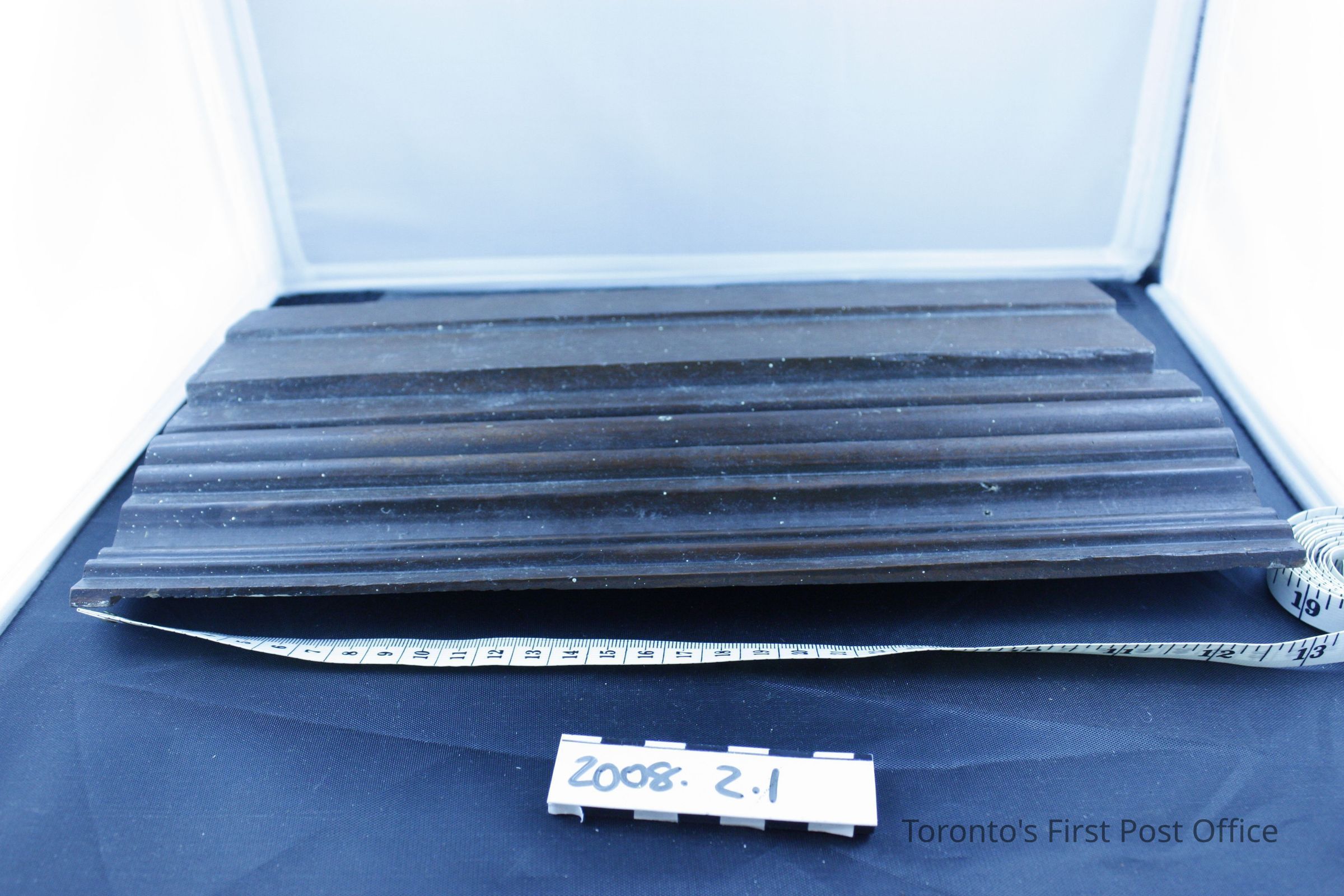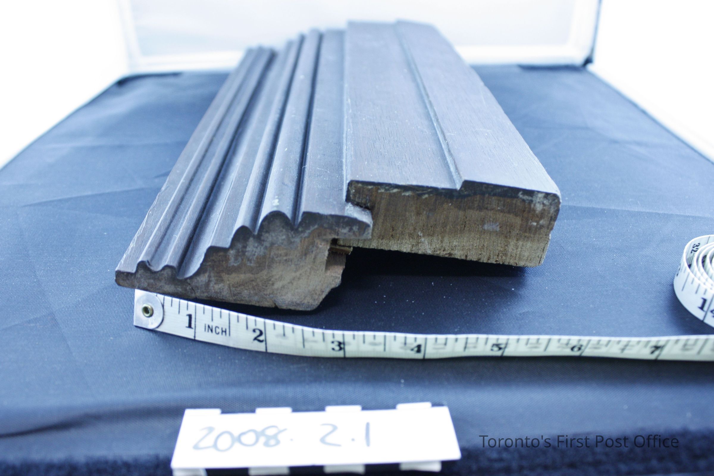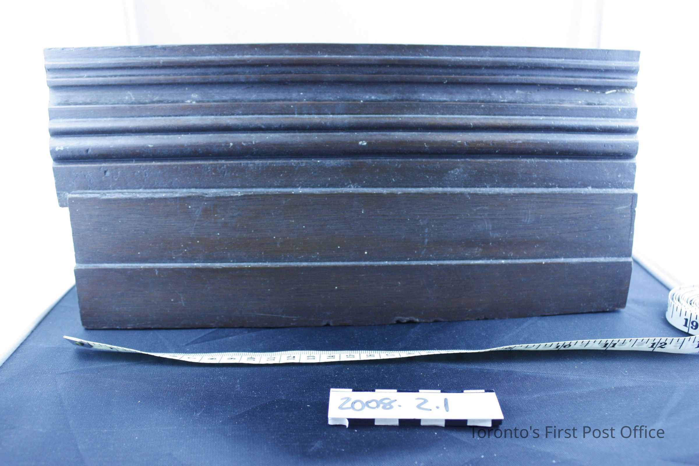 Section of baseboard or trim; mahogany; made in two pieces with a third piece (pine) as wedge; one nail included, holding pieces together; c. 1827.Dimensions