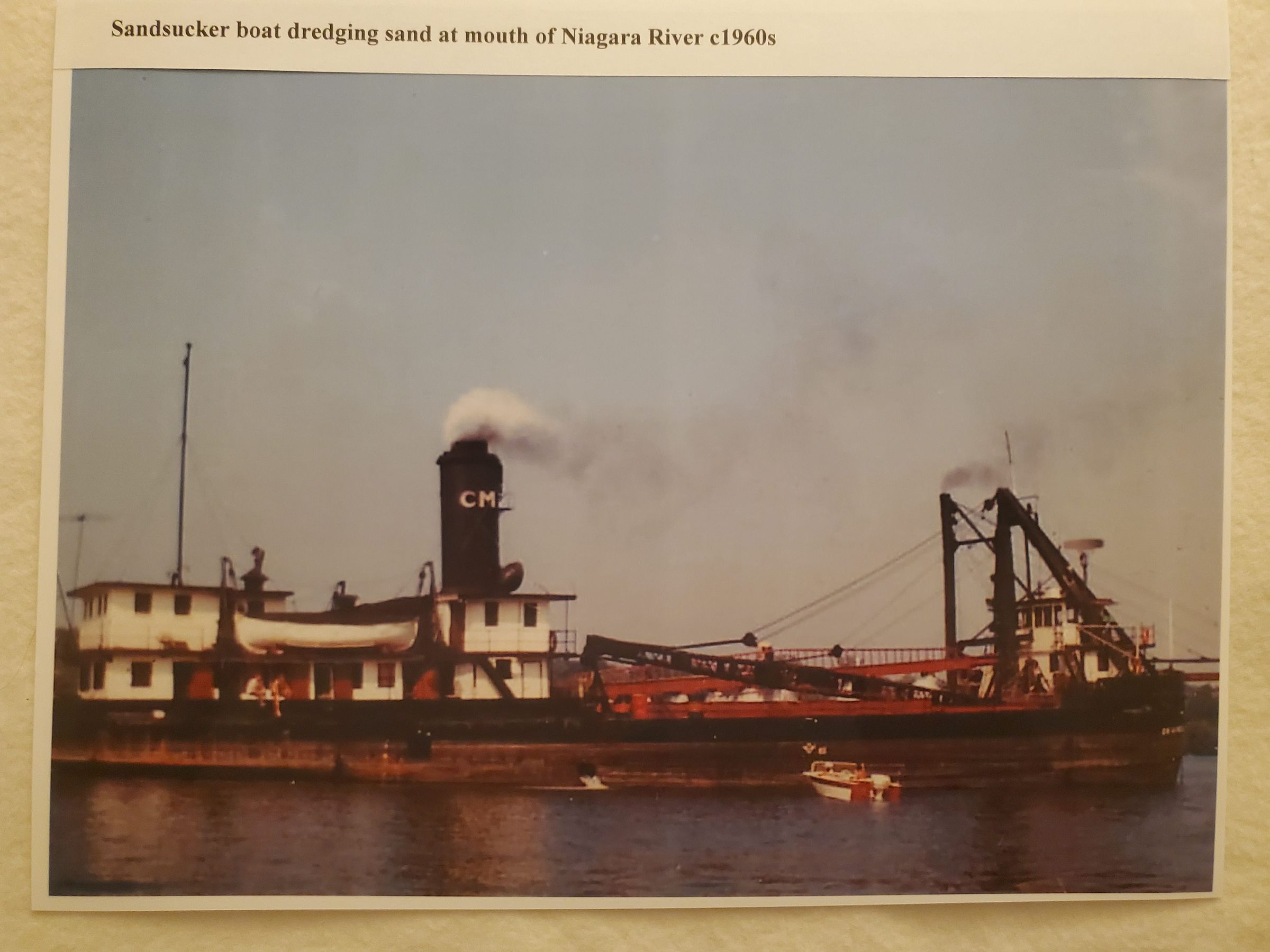 photo, colored; sandsucker boat dredging sand at mouth of Niagara River