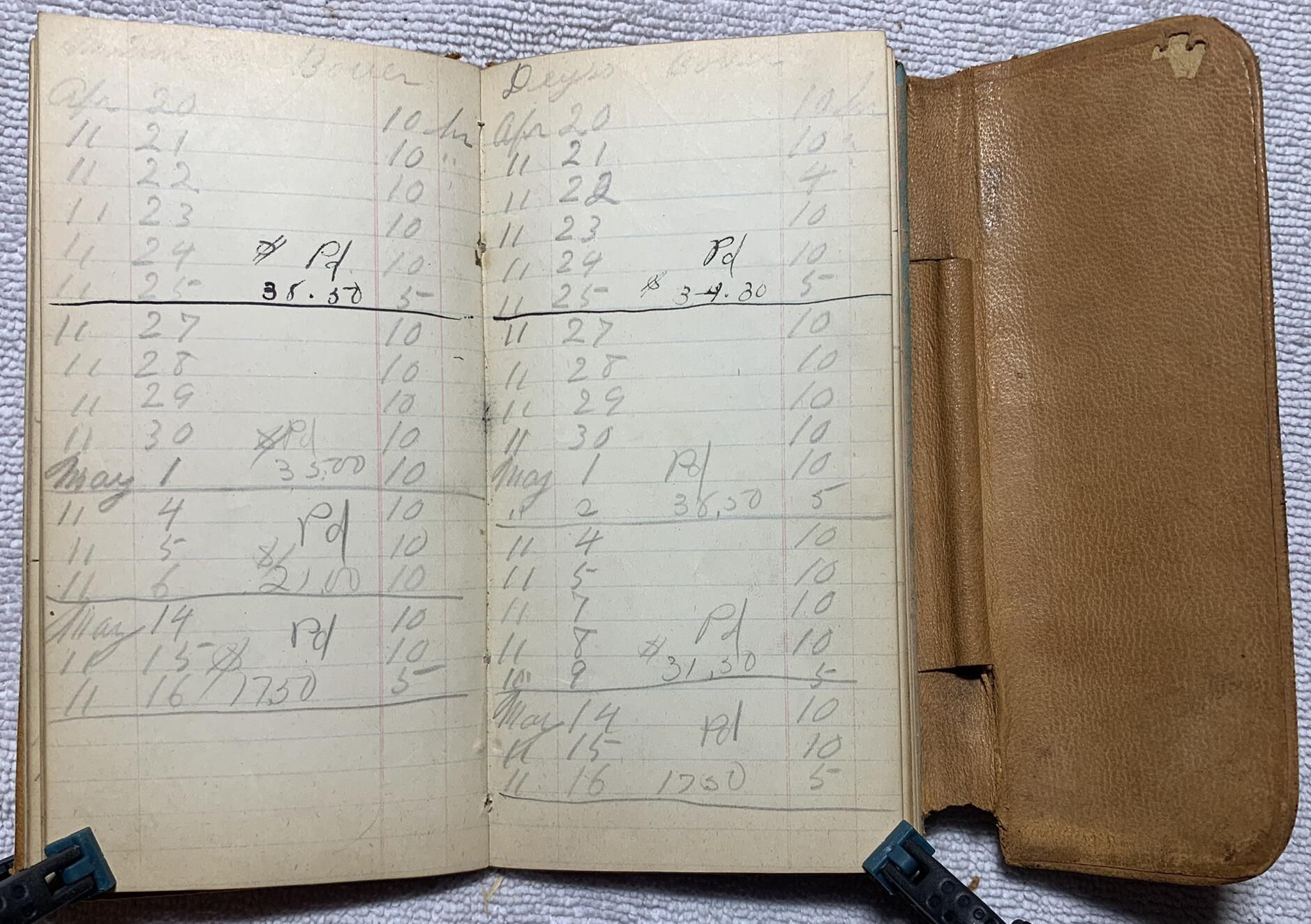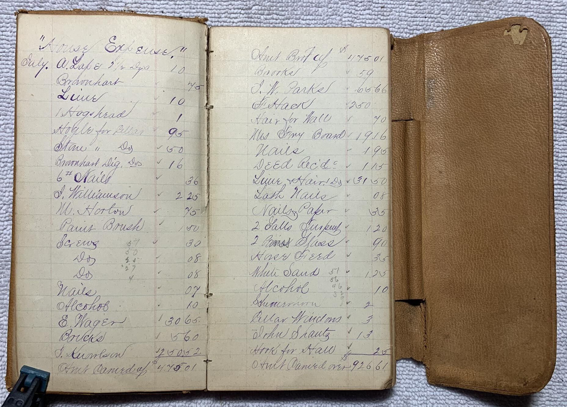 Sixteen-page PDF of a notebook of material and labor expenses for construction and/or renovation work initially kept by George Gault (1823 - 1907) of Sand Lake, NY, beginning in 1871 and subsequently passed through the generations and further updated by a later relative and fellow carpenter, Frank Hack, from approximately 1921 until 1927. George Gault received the notebook as a gift from his son, George Clinton Gault, on June 17, 1871, but only completed the first four pages. Subsequent entries were made by Hack per Gault's great-great-granddaughter and former Town of Sand Lake resident, Sharron A. Shepard. Per the example pages, the initial four pages of entries appear to relate to carpentry and/or renovation expenses perhaps on Gault's home and the later entries appear to relate to hours worked and wages paid during a series of construction contracts that Hack completed for various Sand Lake residents from roughly 1920 to 1927, with the exception of a single unattributed 1886 entry that appears toward the end of the notebook. Specifically, Hack apparently paid himself $.90 an hour and local employees named Dibbler, Middleton, Deyss, Schreiner, and Lester $.70 an hour for work completed for the Shortsleeve, Bauer, Karl, Burrough, Kane, Kehn, Larkin, Reichard, and Gregory families, among others, as well as the Methodist Episcopal (ME) Church. George Gault also reportedly worked for some of the mills that were located throughout Sand Lake and as an Assistant Sand Lake Postmaster around 1900. The PDF available here only includes about a 20% sampling of the pages in the notebook since they tend to be quite repetitive. The calfskin notebook cover remains amazingly soft and supple in spite of being over 151 years old and helps explain why the notebook was saved and reused for so many years. The PDF is downloadable while fully logged into the system. Refer to the example pages for a preview of its content. Agnes Hack, the wife of Gault descendant and Frank Hack's son, Charles "Chuck" Hack, donated the notebook to the Town in 1978. Per the "St Pierre and Shepard Faith Mills Documents Collection" entry of this site, the notebook eventually inspired the donation of a huge collection of extremely rare Faith Mills documents to the Town of Sand Lake by his great-great-granddaughter, Sharron A. Shepard, in exchange for the Town of Sand Lake sending her the original notebook. However, a much higher resolution PDF of the entire notebook is stored off-line and available upon request under the following file name with "1886," rather than 1927, reflecting the mistaken assumption that the notebook was only maintained until 1886 due to Frank Hack seldom dating his later entries: