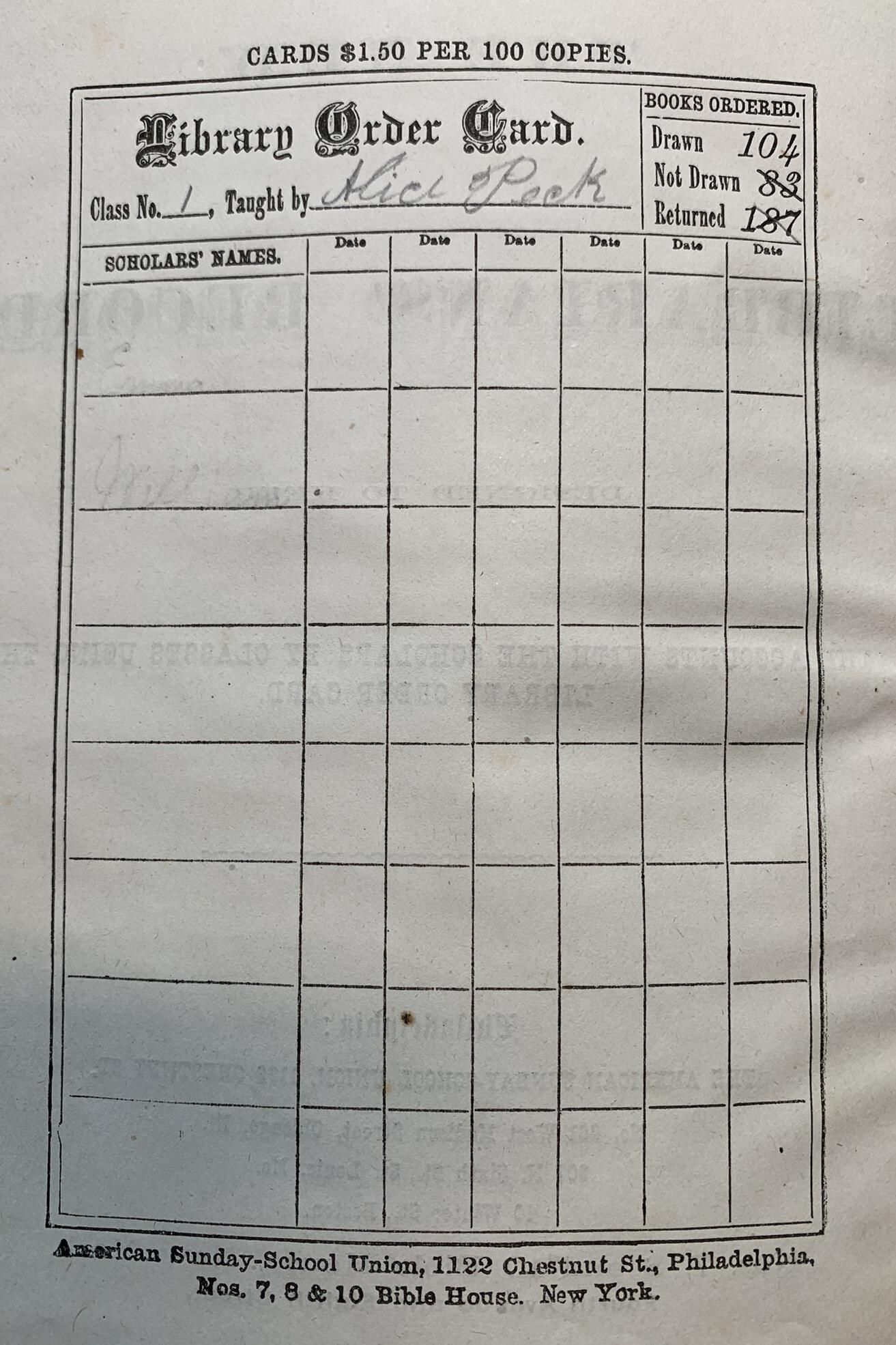 1876-1881 Librarian's Record Log - Likely for Sunday SchoolEntry/Object ID