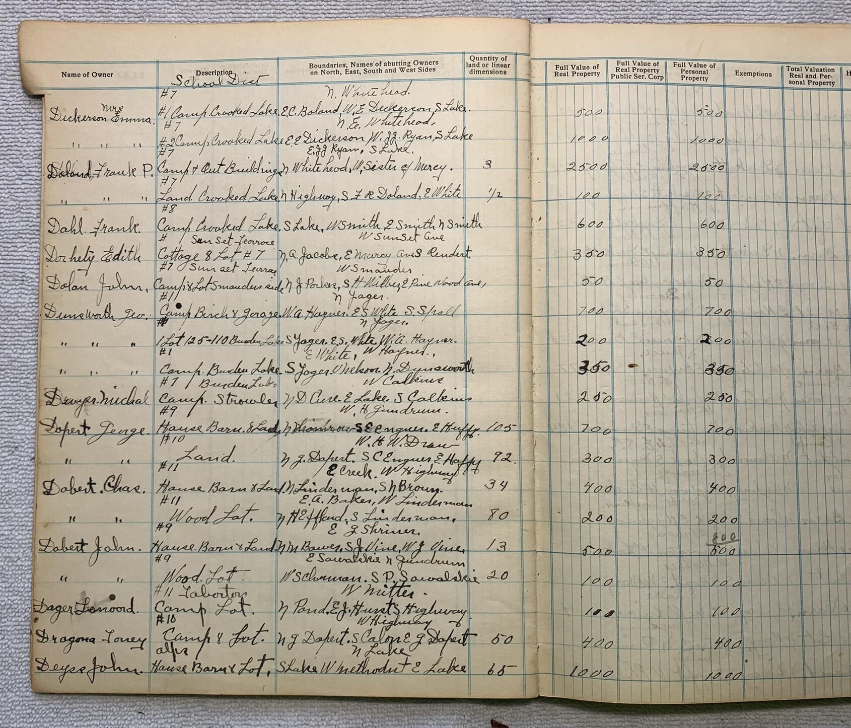 1912 (ca.) Real Property Valuations and Dog CensusEntry/Object ID
