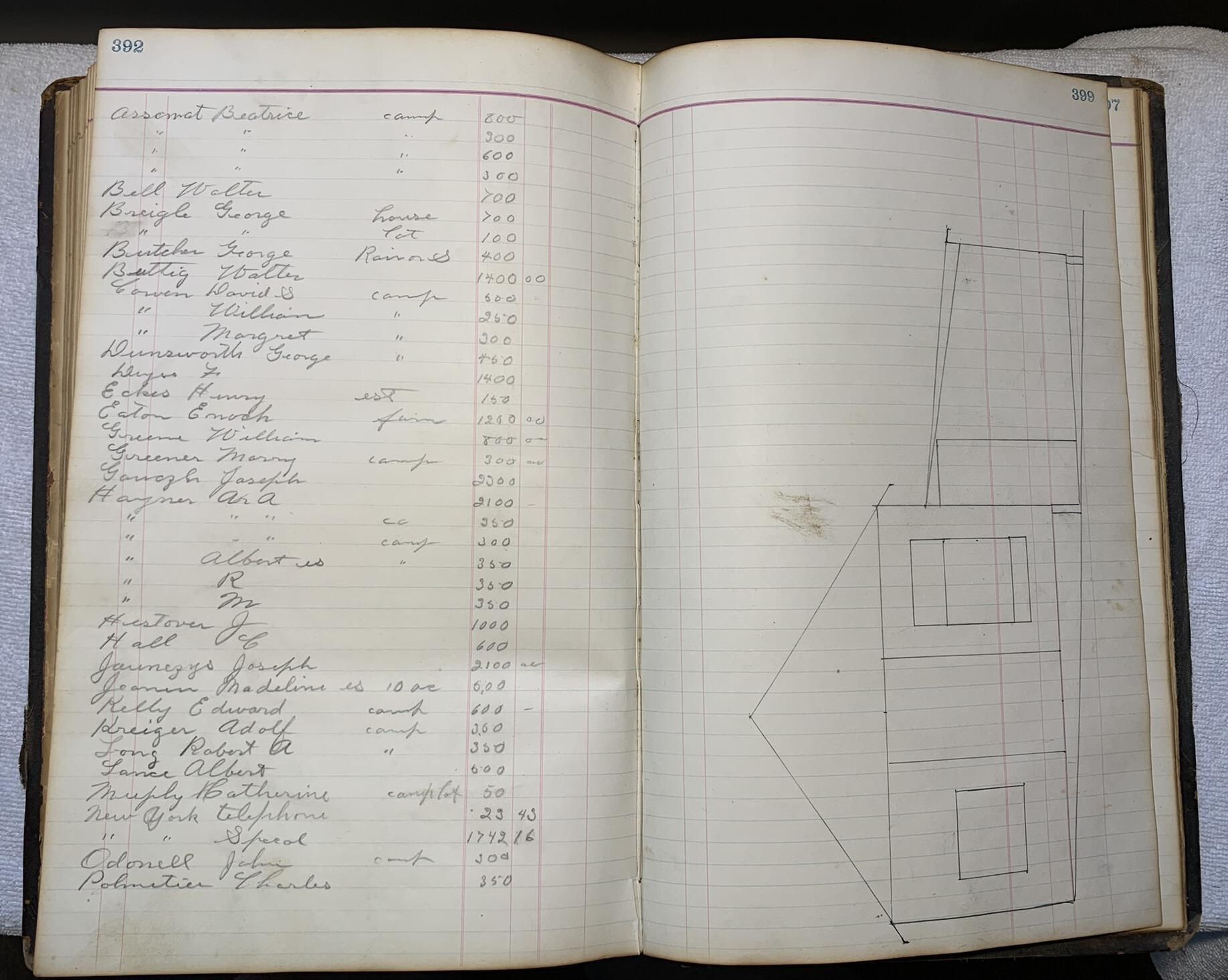 Sixty-six-page PDF of 1913 to 1929 annual school expenses, anticipated tax assessments, and planning notes apparently made by Alfred Deyss (also noted as Fred Deyss) who served as a Trustee of School District Number One during the early 20th century. This appears to more of an informal notebook and workbook that Alfred kept to support his Trustee duties given the frequent doodles, cross-outs, and informal entries as compared to the formal entries and attestations found in the other official School District Number One entries found in this folder. For example, the, "1839-1929 School District No. 1 Annual Meeting Ledger," entry in this folder formally notes the appointment of Alfred as a Trustee and the, "1906-1910 School Tax Lists and Apportionments," entry displays examples of the formally adopted school tax lists and budgets that Alfred obviously helped develop. Note that the entries chronologically continue from 1913 through 1929 and stamped page number 187 in the ledger before skipping forward to stamped page number 388 where additional notes for 1918 through 1924 can be found along with sketches of apparent plans for schoolhouse replacements or additions and notes regarding the purchase and sale of livestock such as pigs and cows. In summary, Alfred took his Trustee duties very seriously and obviously devoted a great deal of time and effort to the District. The entries also mention Mabel Katherine Deyss and that Ms. Mabel D. Harrington donated the workbook to the Town in August of 1994. The PDF is downloadable while fully logged into the system. Refer to the example page for a preview of its content. A much higher resolution PDF is stored off-line and available upon request under the file name: