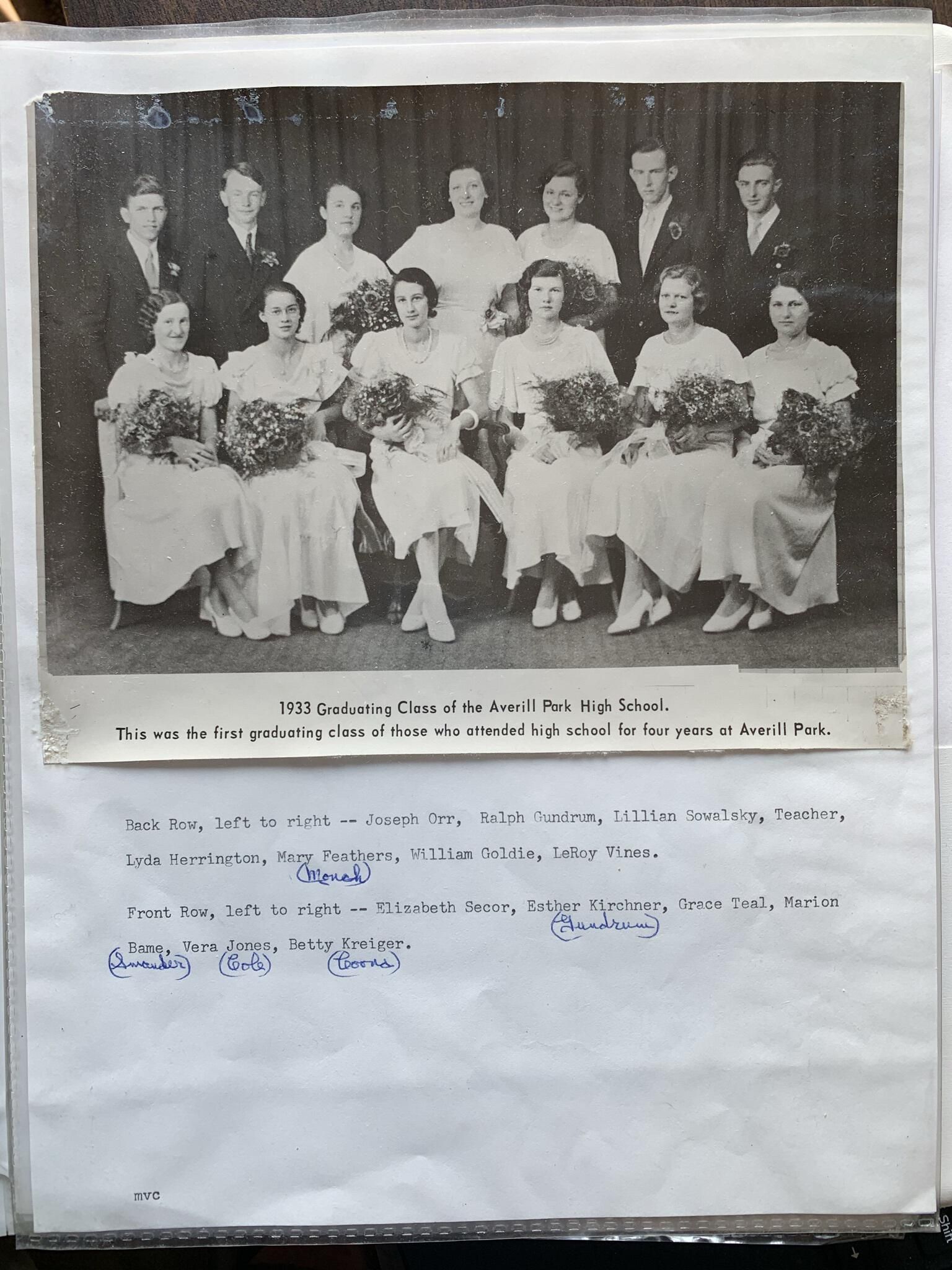 Averill Park High School (APHS) Graduating Class Photos 1932 to 1955Entry/Object ID