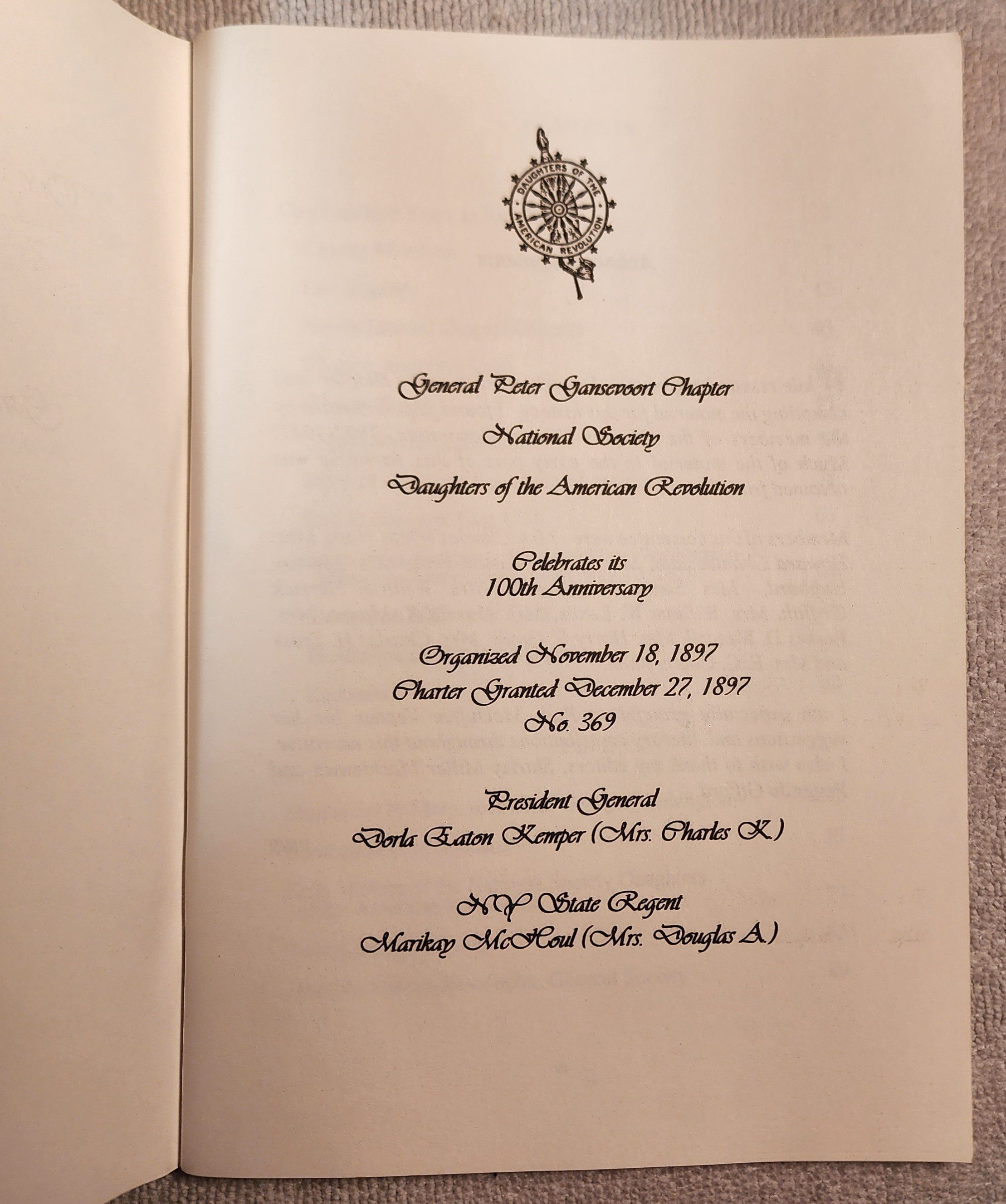DAR, 100 Year Anniversary, History, Peter Gansevoort ChapterEntry/Object ID