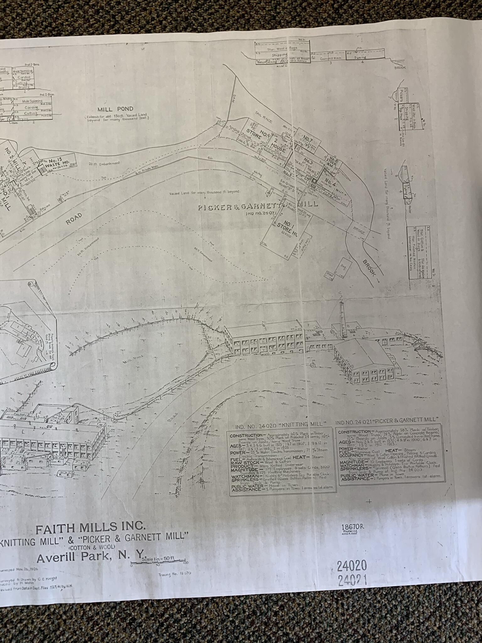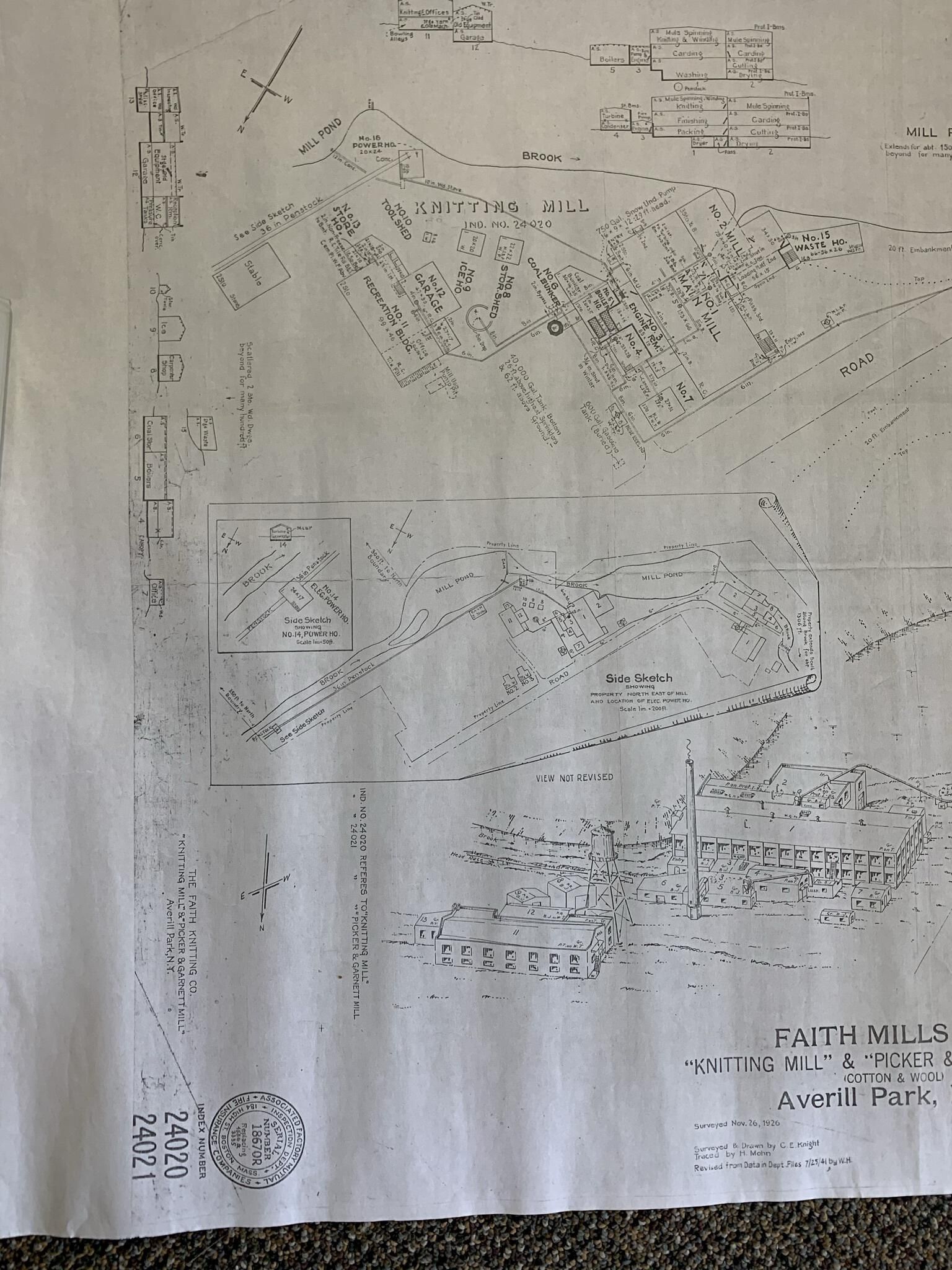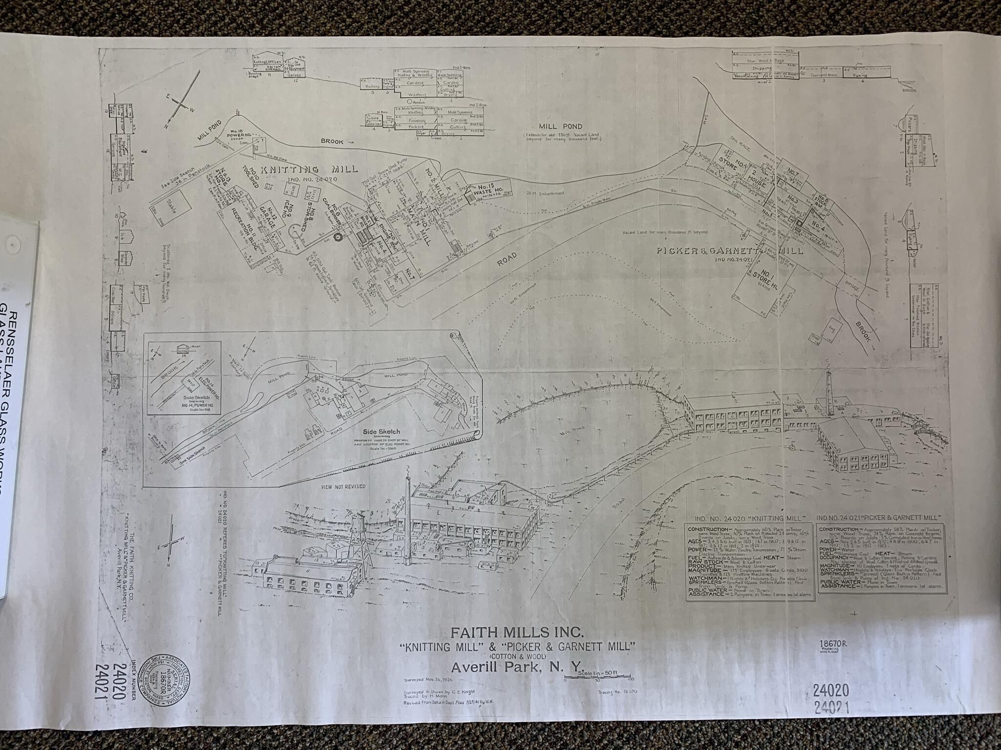 November of 1926 survey of the Faith Mills knitting factory site. Located in the 2nd drawer of SLHS FC1.Acquisition