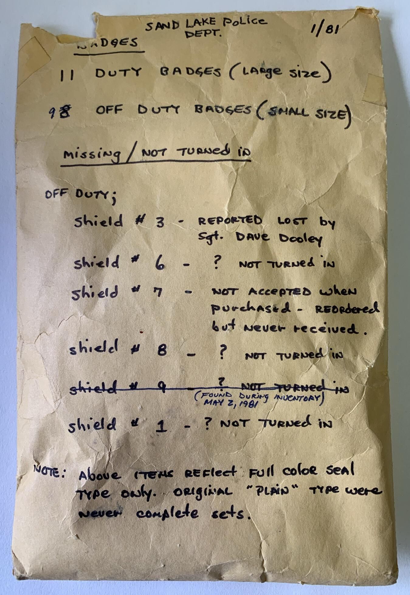 Former Sand Lake Police Department - Photos and BadgesEntry/Object ID
