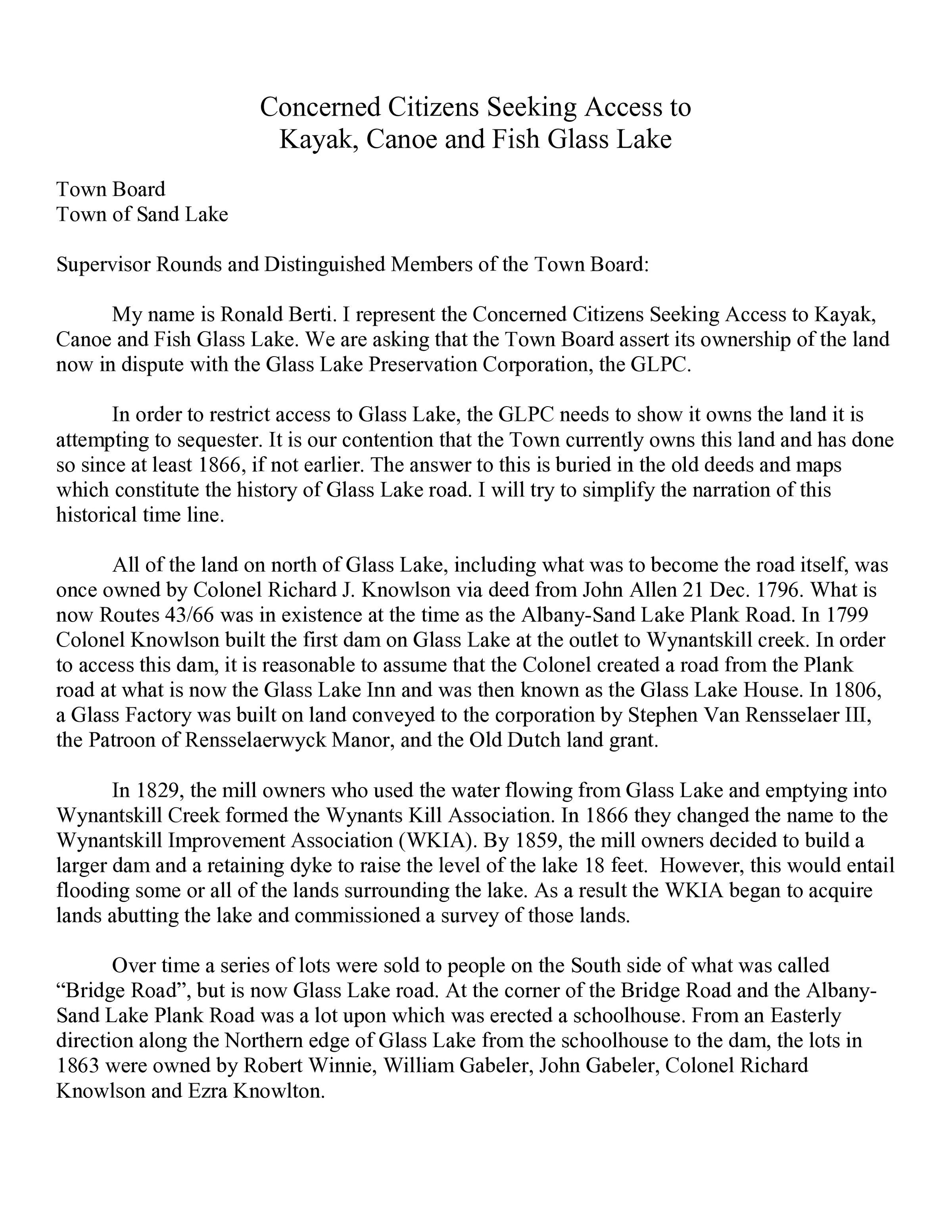 Research completed by Ron Berti in support of allowing public access to Glass Lake at the Glass Lake dam. The full PDF can be downloaded while fully logging into the system.Cataloged By