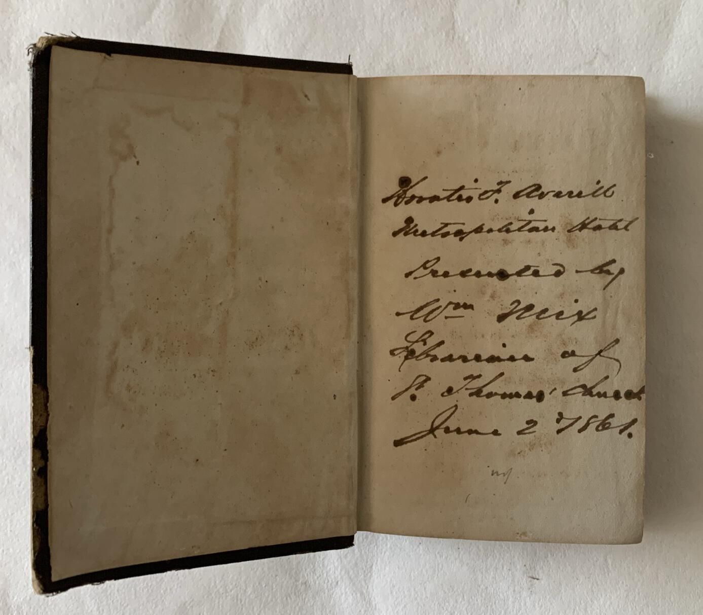 Metropolitan Hotel , June 2, 1861 , Protestant Episcopal Church , prayer book , Psalter , W. Benjamin ,Cataloged By