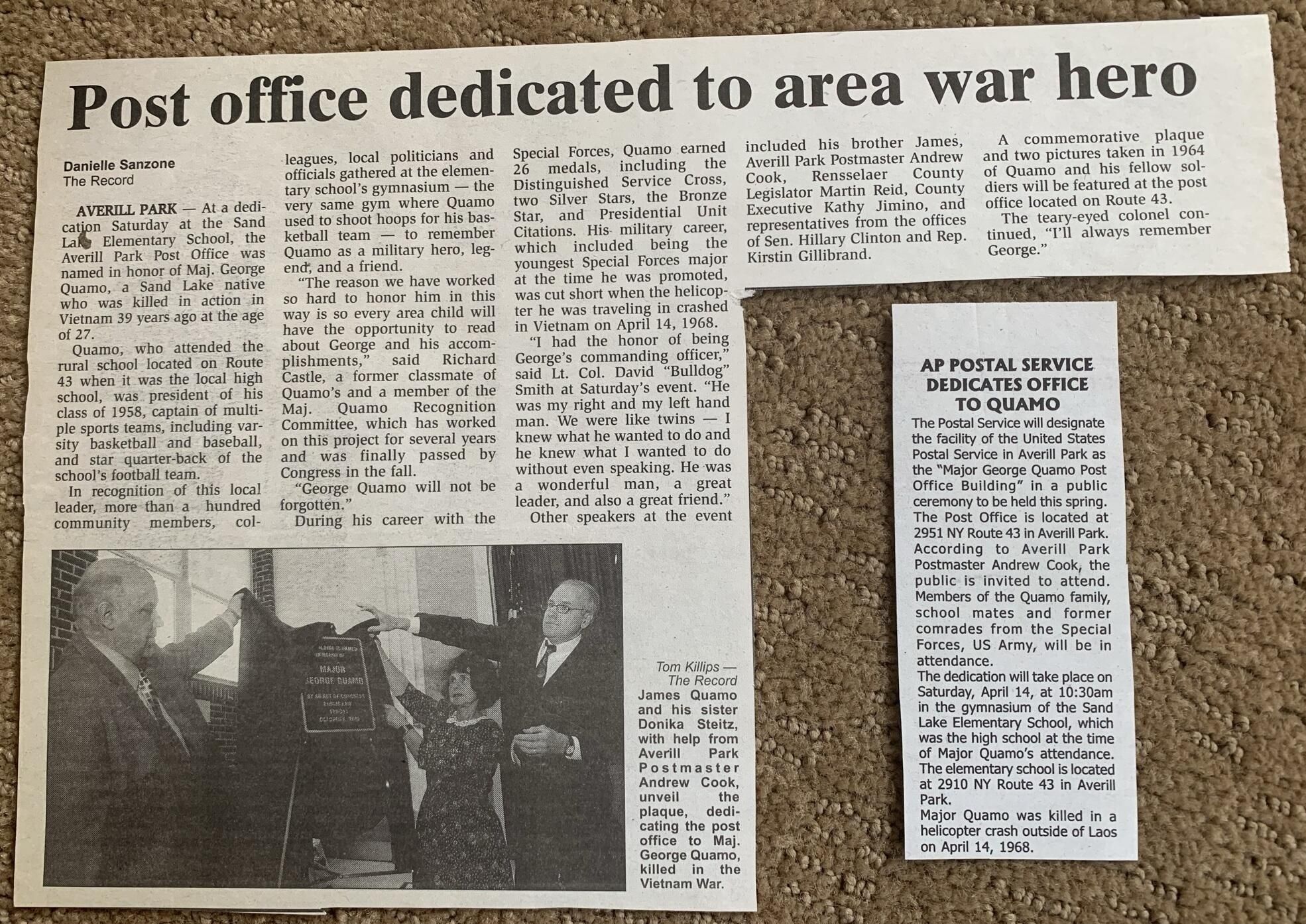 APHS Alumni , United States Army , Vietnam War , Green Beret , Special Forces , Purple Heart , Silver Star , Distinguished Service Cross , KIA , Hero , Post Office , dedication , Memorial Day Parade , Albany Times Union , Khe Sahn Marines Magazine , Tom HaggertyCollection