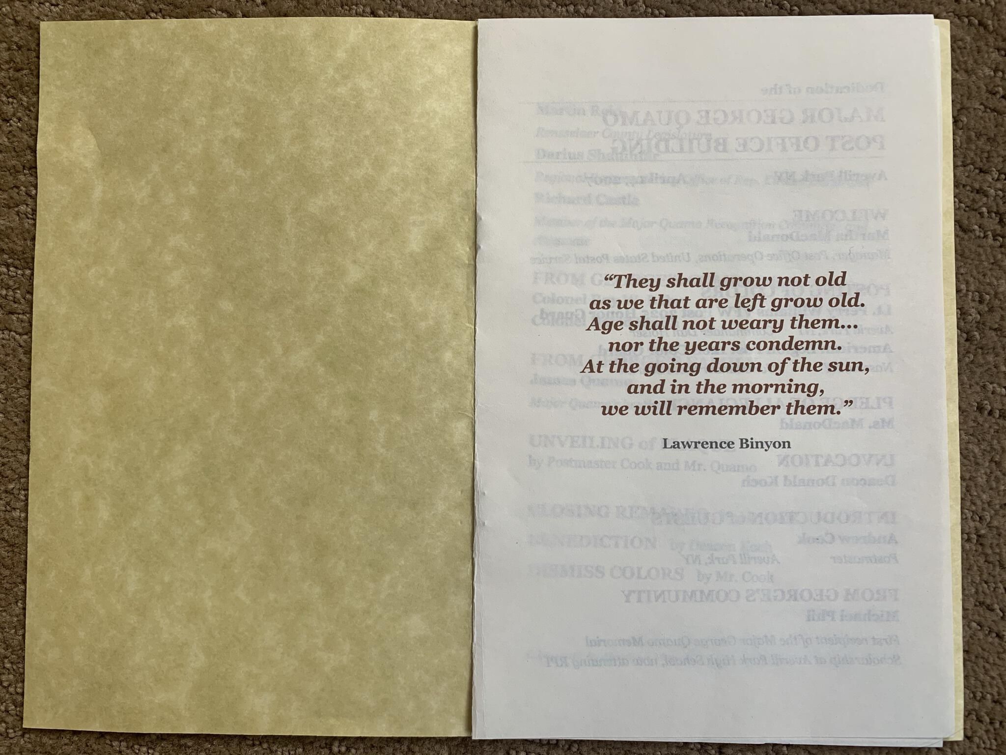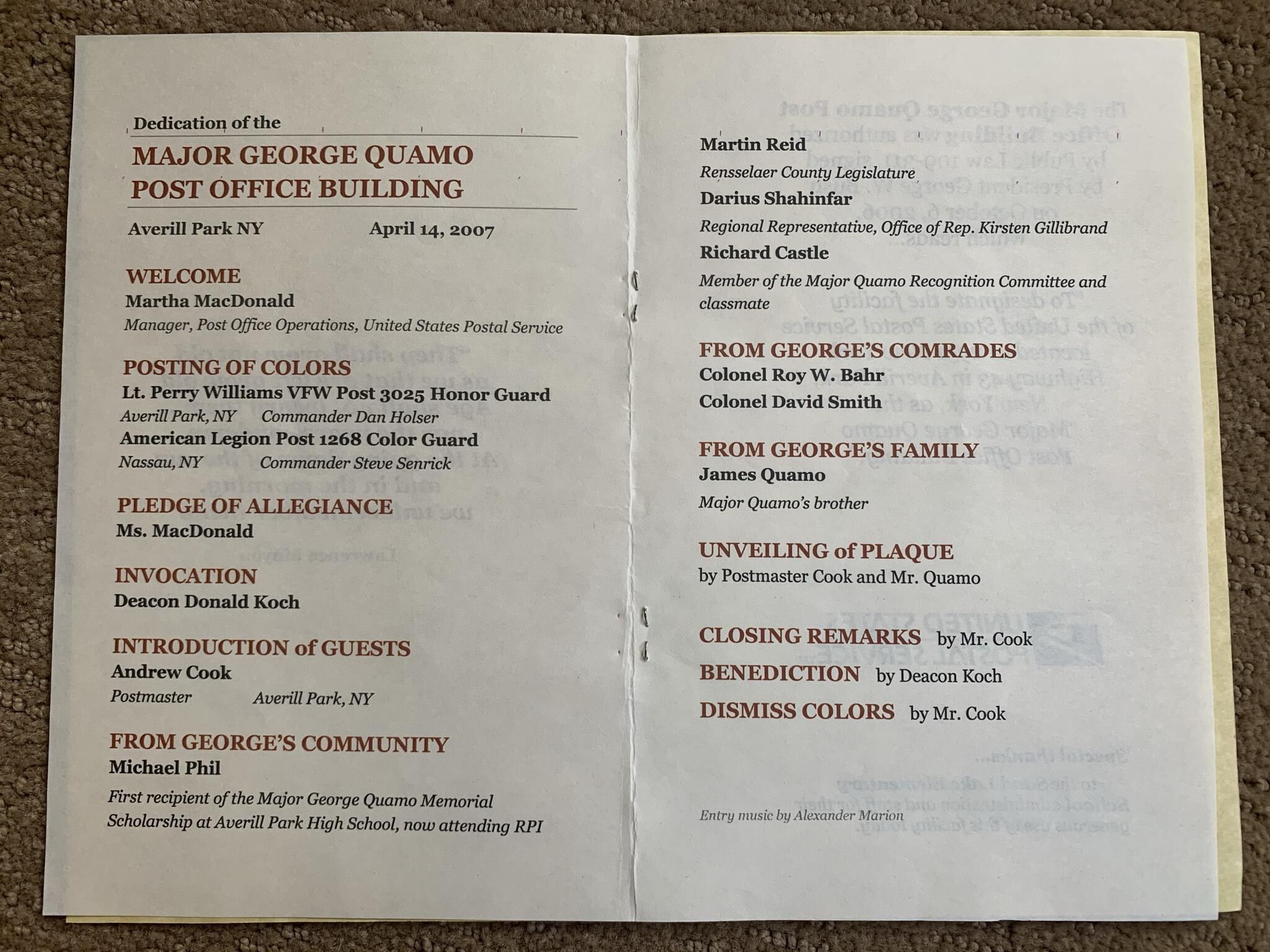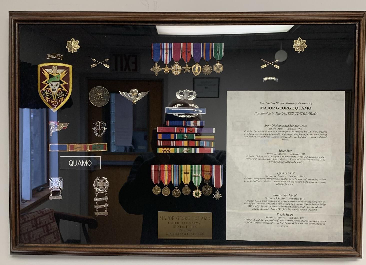 Major George C. Quamo Memorial Plaque, Display and historical references. Quamo was a graduate and star football quarterback of Averill Park High School and Silver Star and Distinguished Service Cross winner for numerous acts of heroism under fire. He died during an aircraft craft crash in while completing a subsequent mission in Vietnam.Context