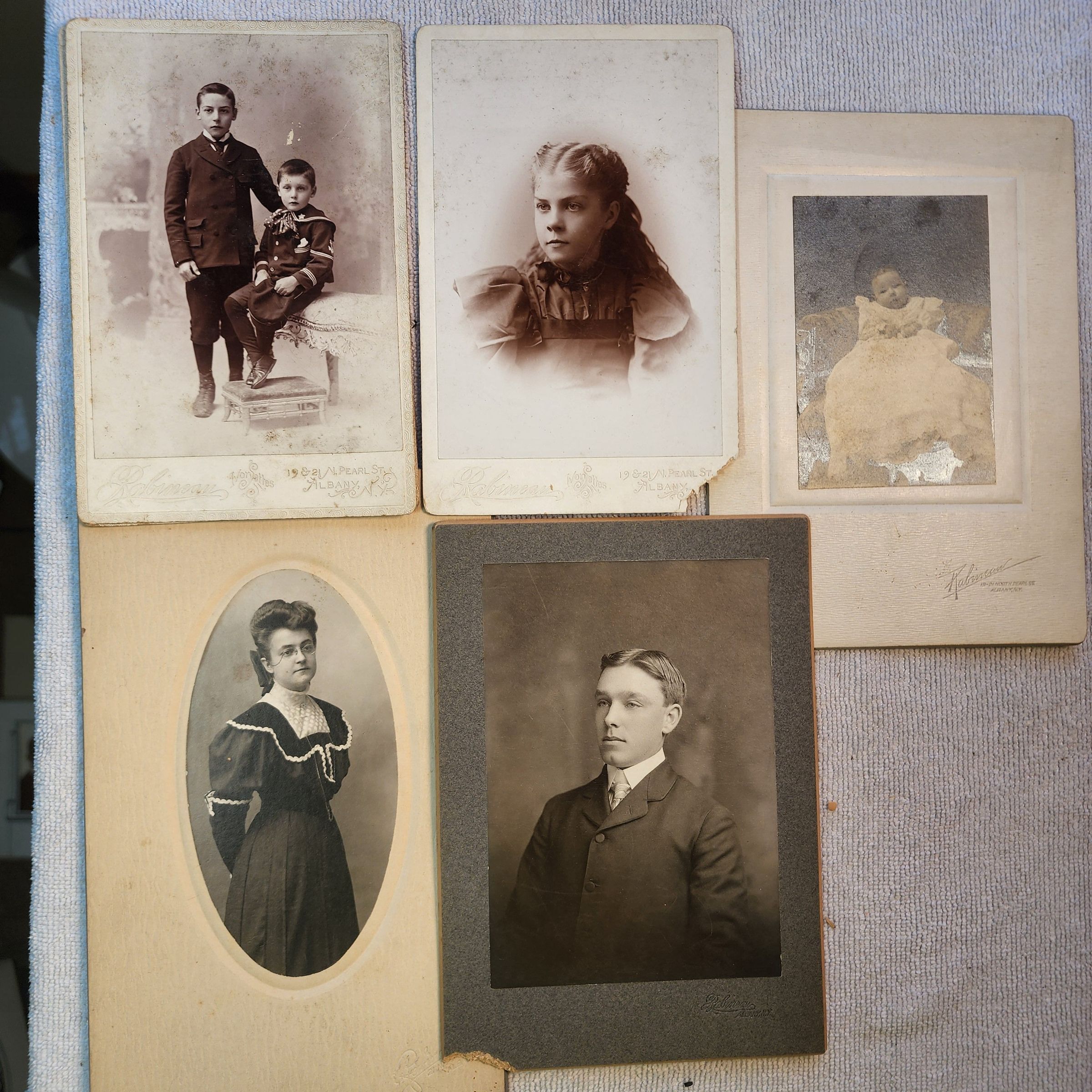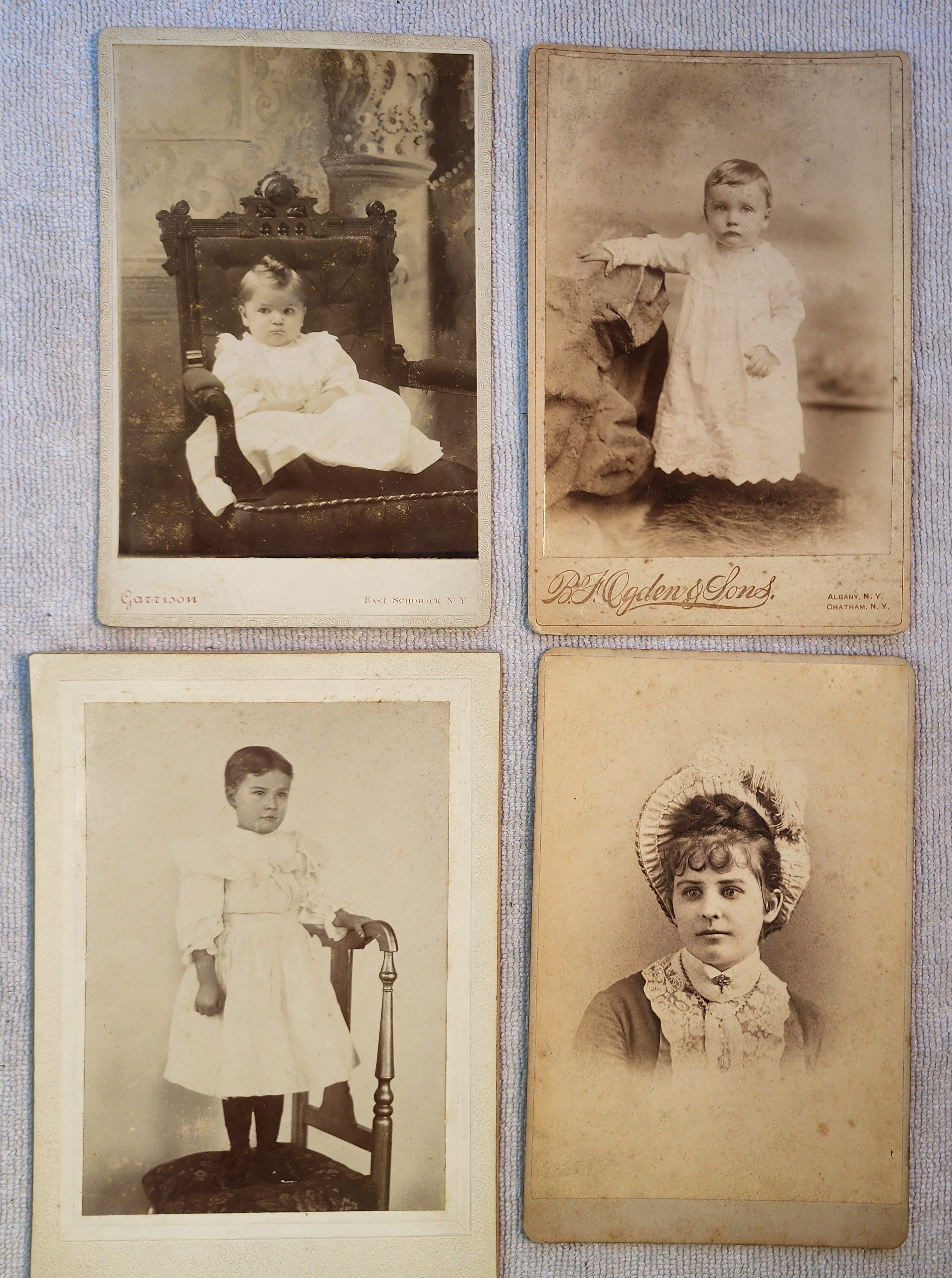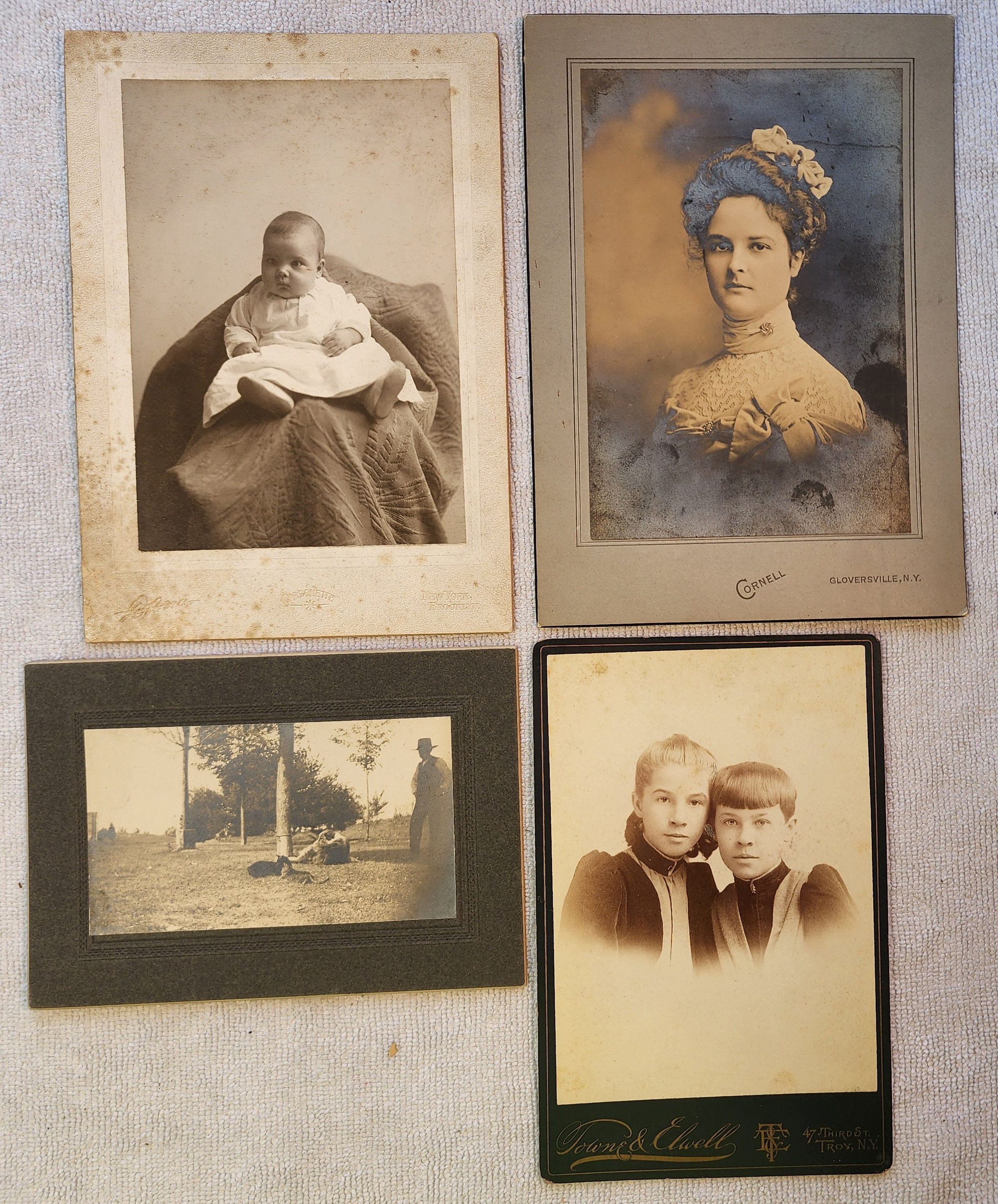Miscellaneous photos which include little or no notation of their original ownership and origin and may or may not include or relate to past residents of the Town of Sand Lake. Basically, the photos were either donated to the Town of Sand Lake Historian's Office without any reference to their origin or a verbally provided reference to their origin at the time of their donation was never documented and has been long since forgotten. Please contact the Town Historian's Office if you recognize the origin or subjects of any of these photos. Any potentially useful notations found on the photos are included in the description of each entry along with a description of any reasoning for grouping photos together due to apparent family and/or source connections. The photos include numerous examples of elegantly produced and mounted Cabinet Card and Carte de Visite style photos taken by a wide variety of professional photographers located throughout the upper Hudson and Eastern Mohawk Valleys. Refer to the web links portion of this entry for a brief history of such photos.Cataloged By