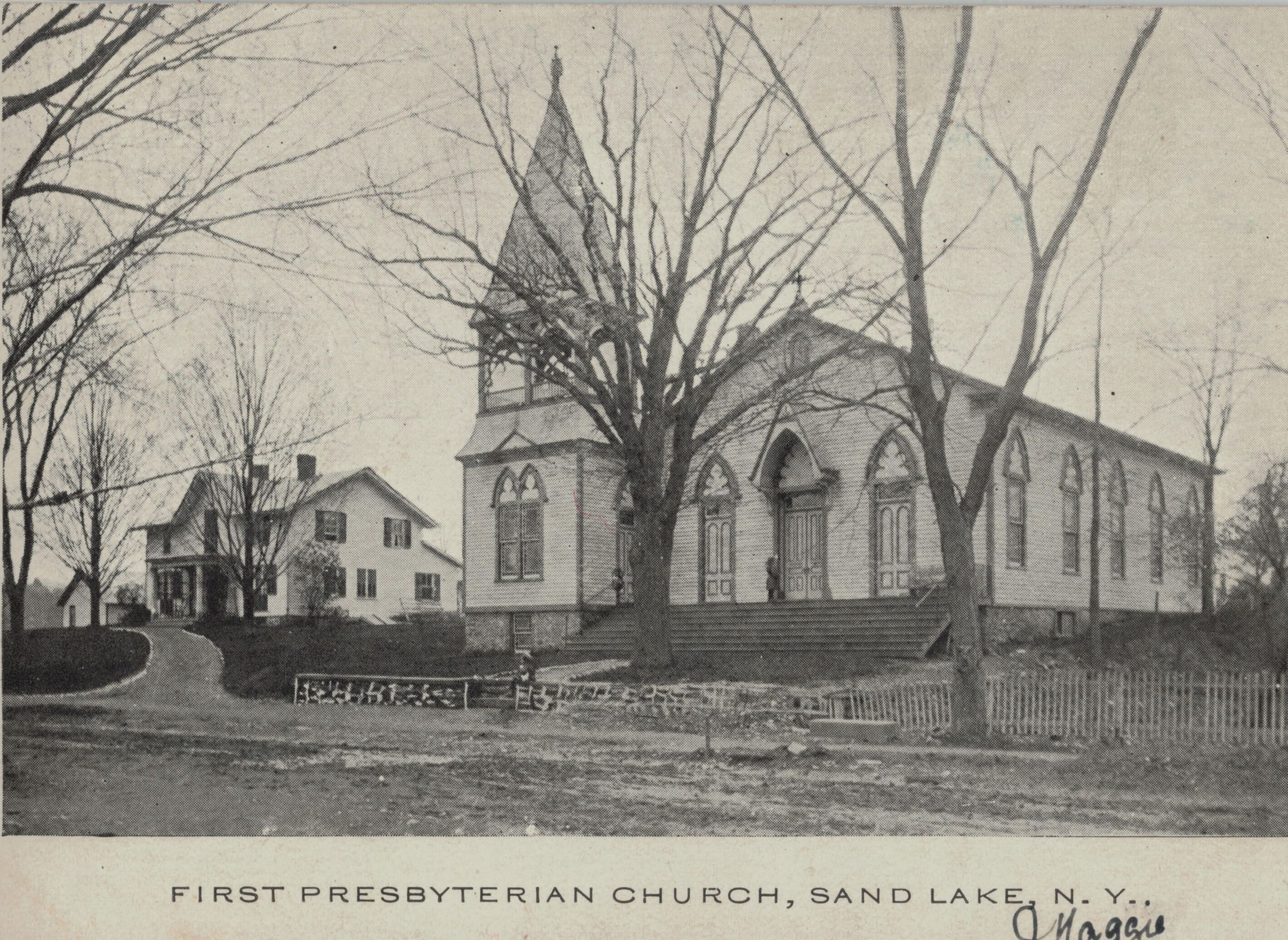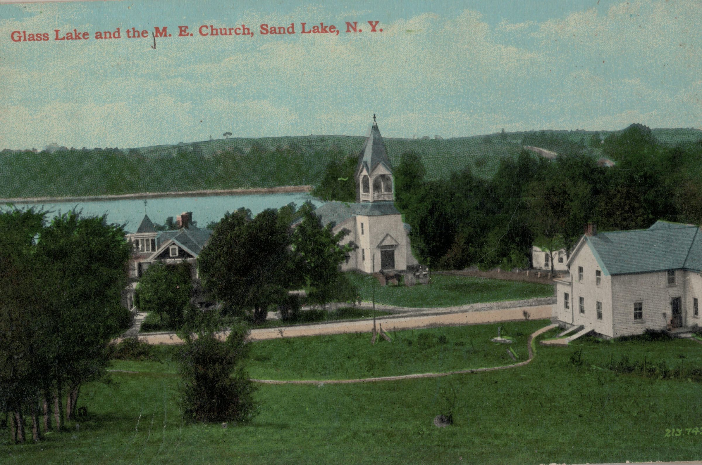 Postcards in the Robert Shuey postcard collection related to churches and schools located throughout the entire Town of Sand Lake, NY.Context
