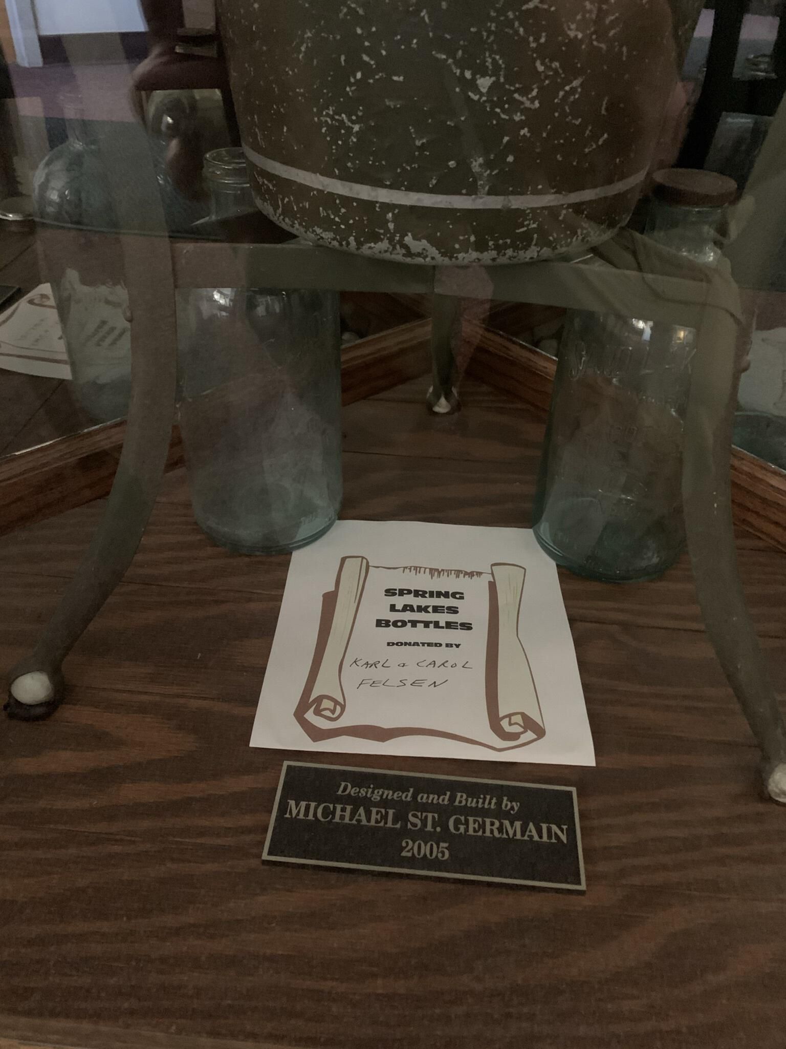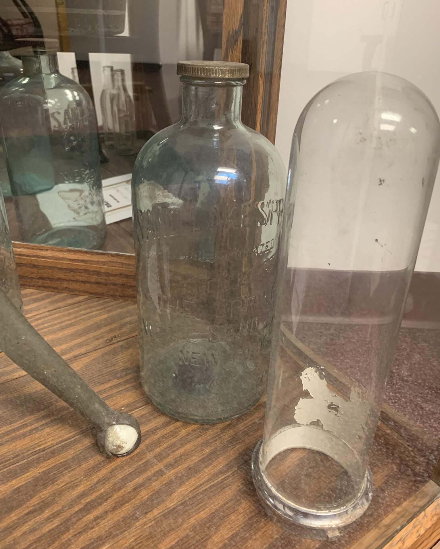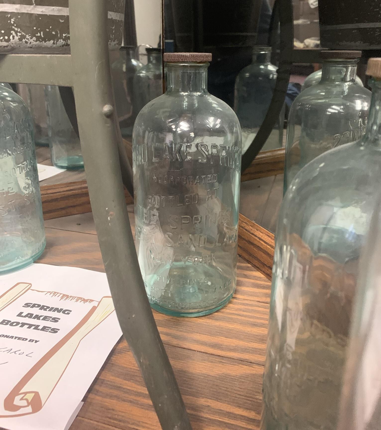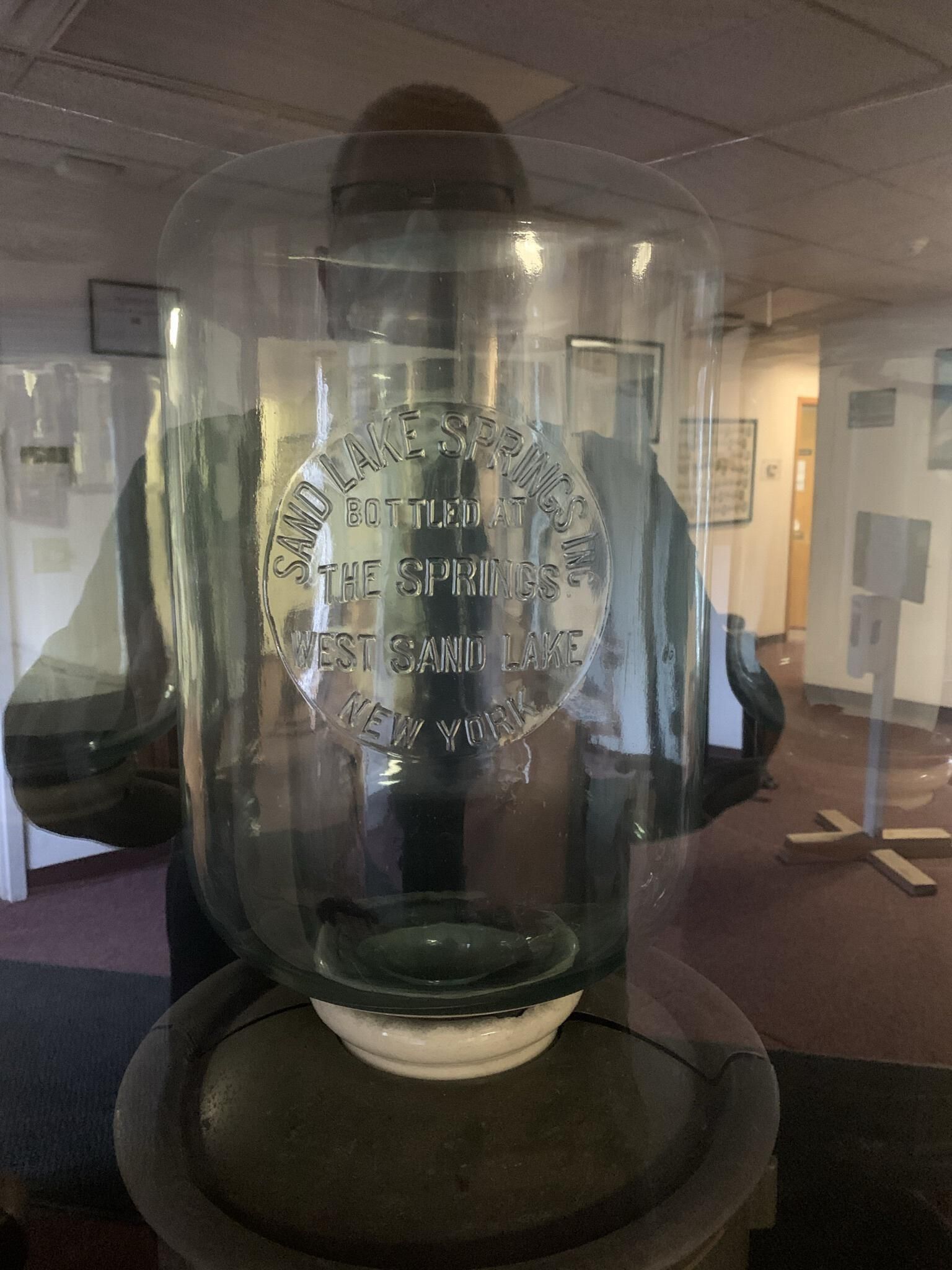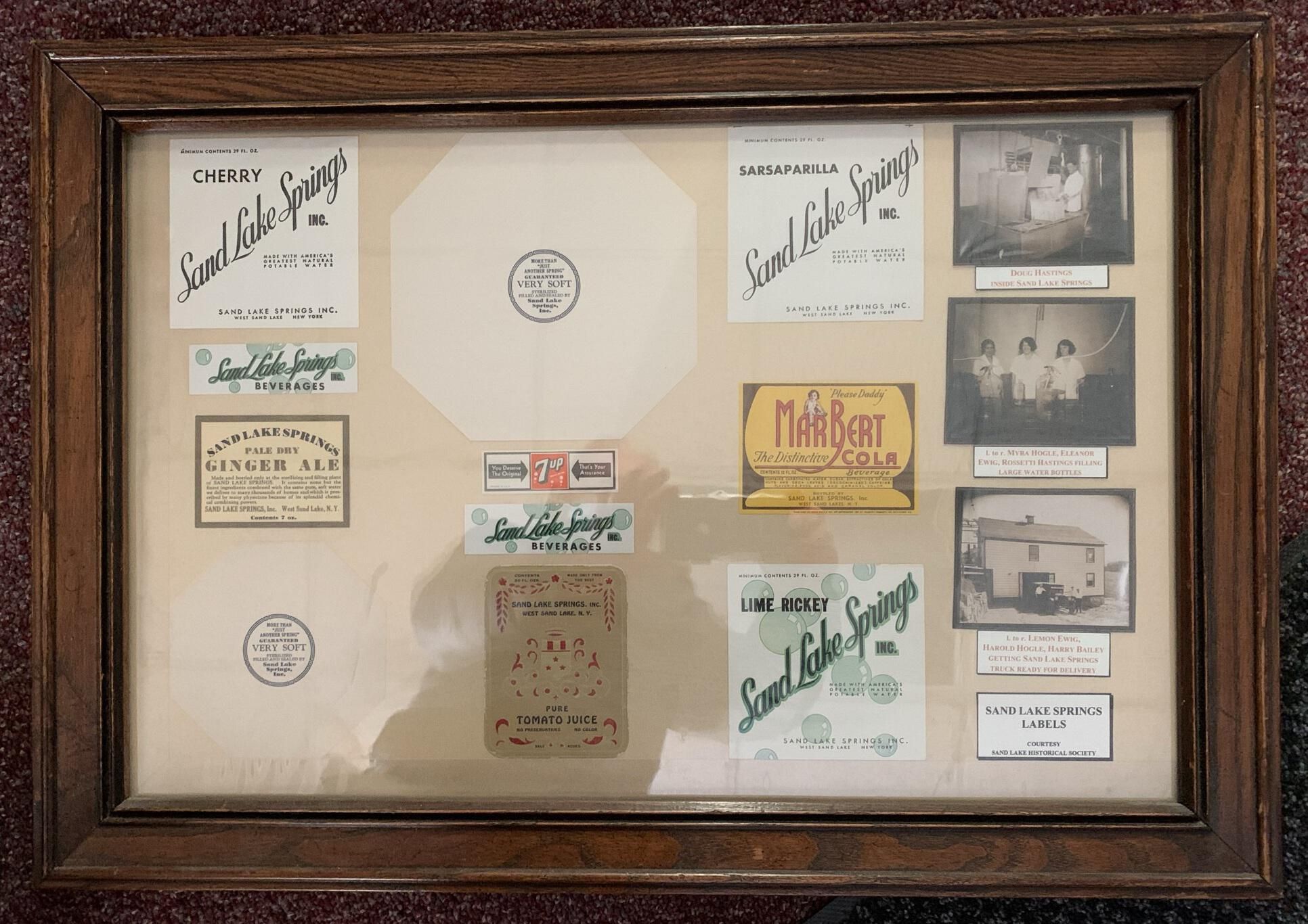 Sand Lake Springs Display and Artifacts. The display is located in the main entrance foyer of the Town Hall of the Town of Sand Lake, NY. The cabinet is too large, heavy, and risky to move to facilitate individually photographing the items stored therein. Organized by SLHS volunteers in 2005 and consisting of solely SLHS owned artifacts.Context