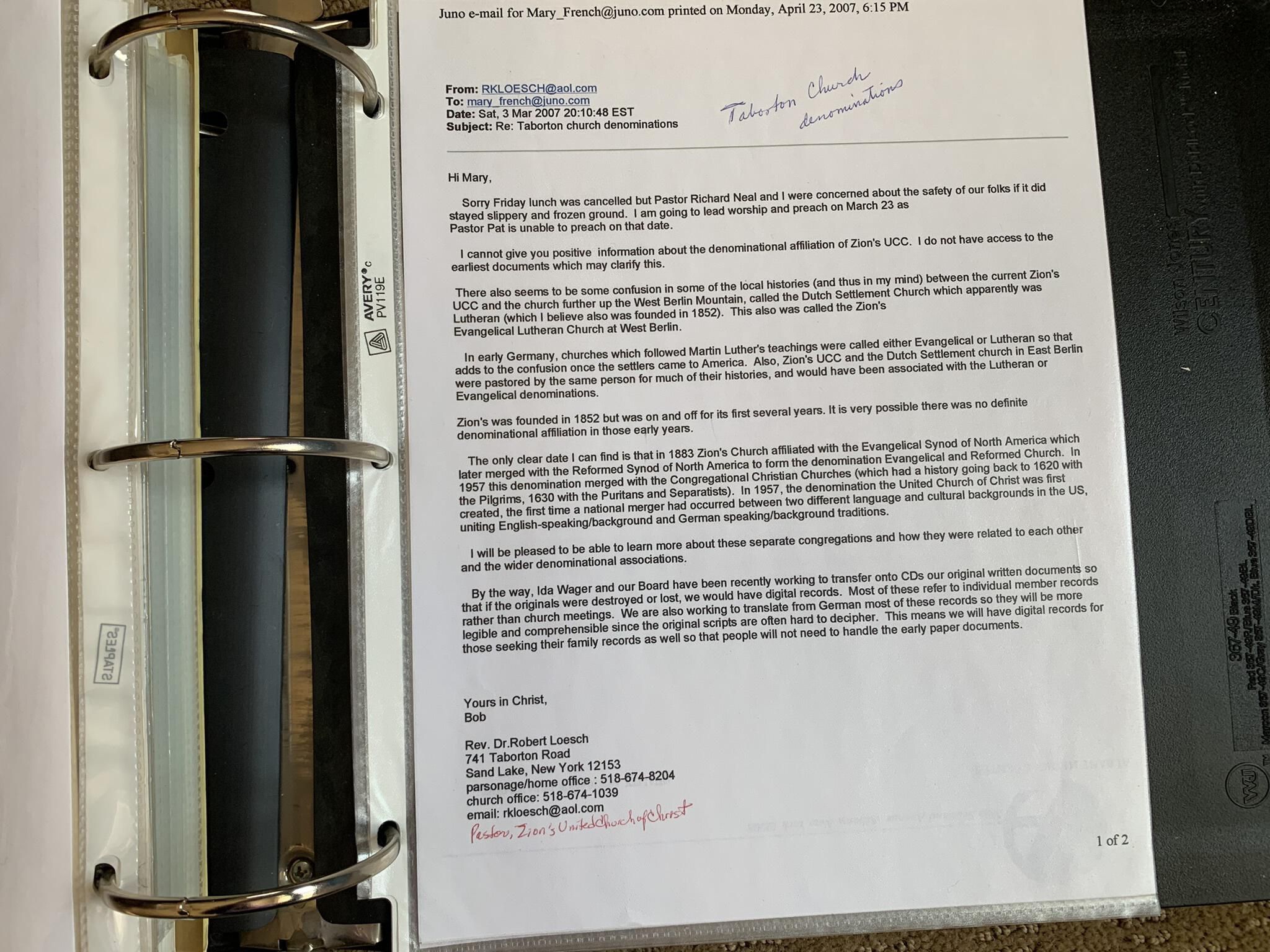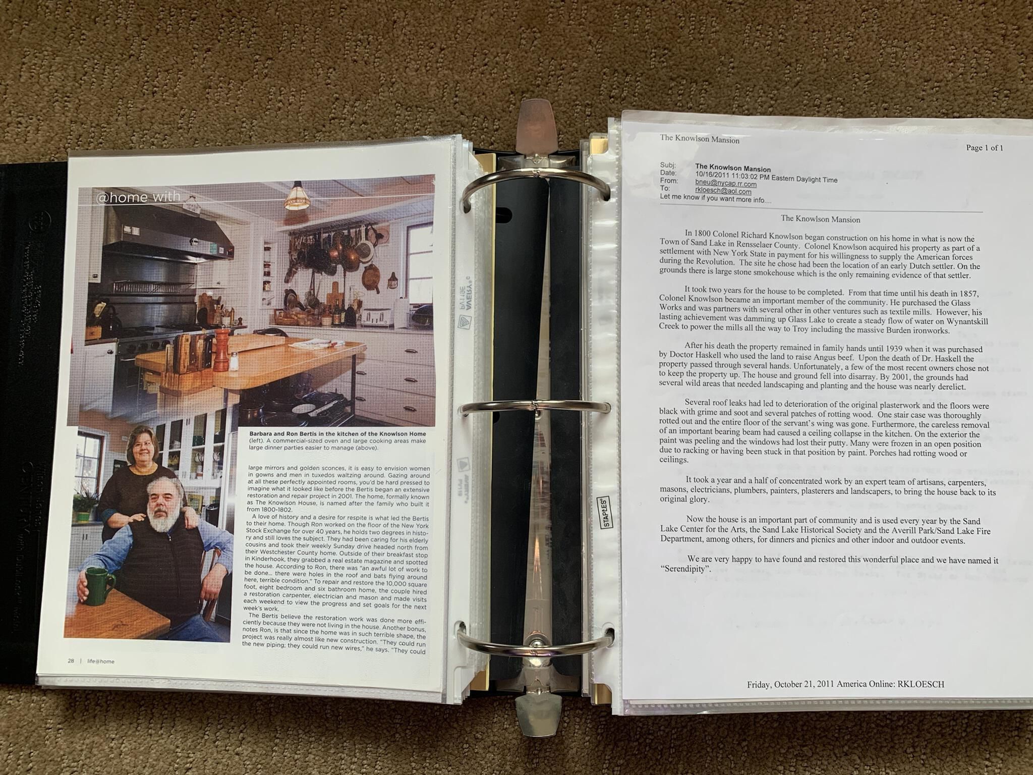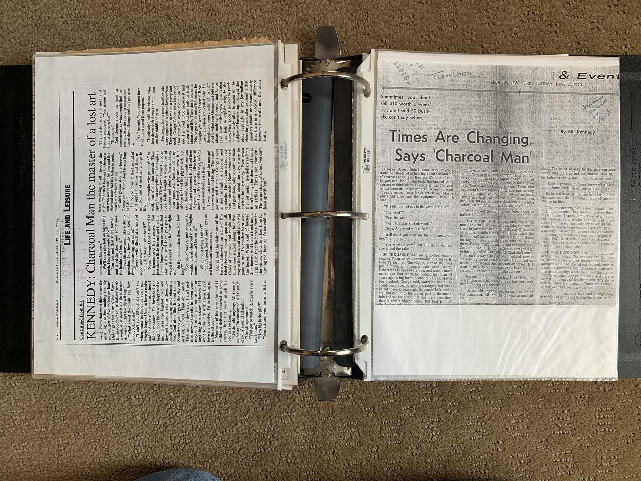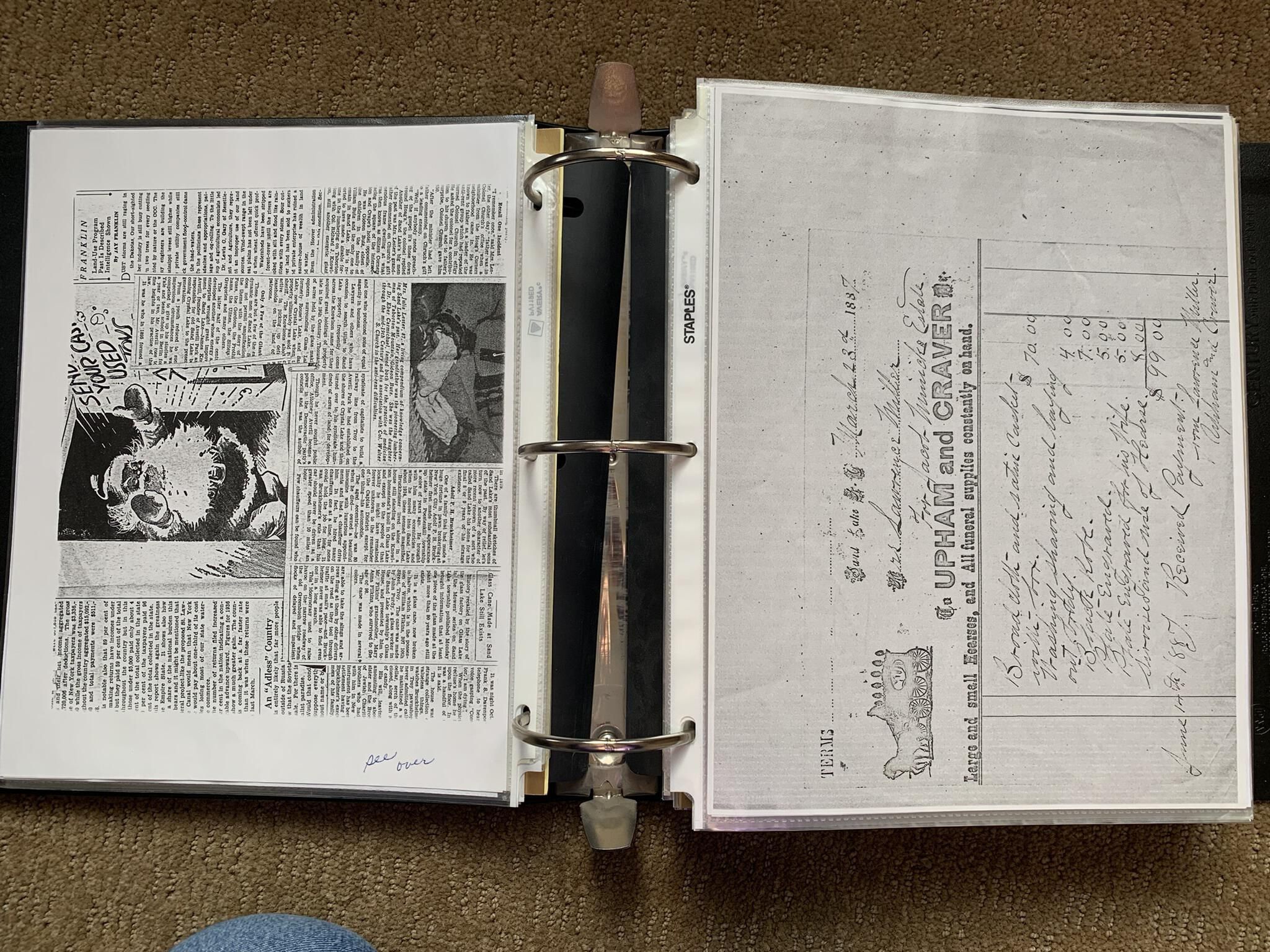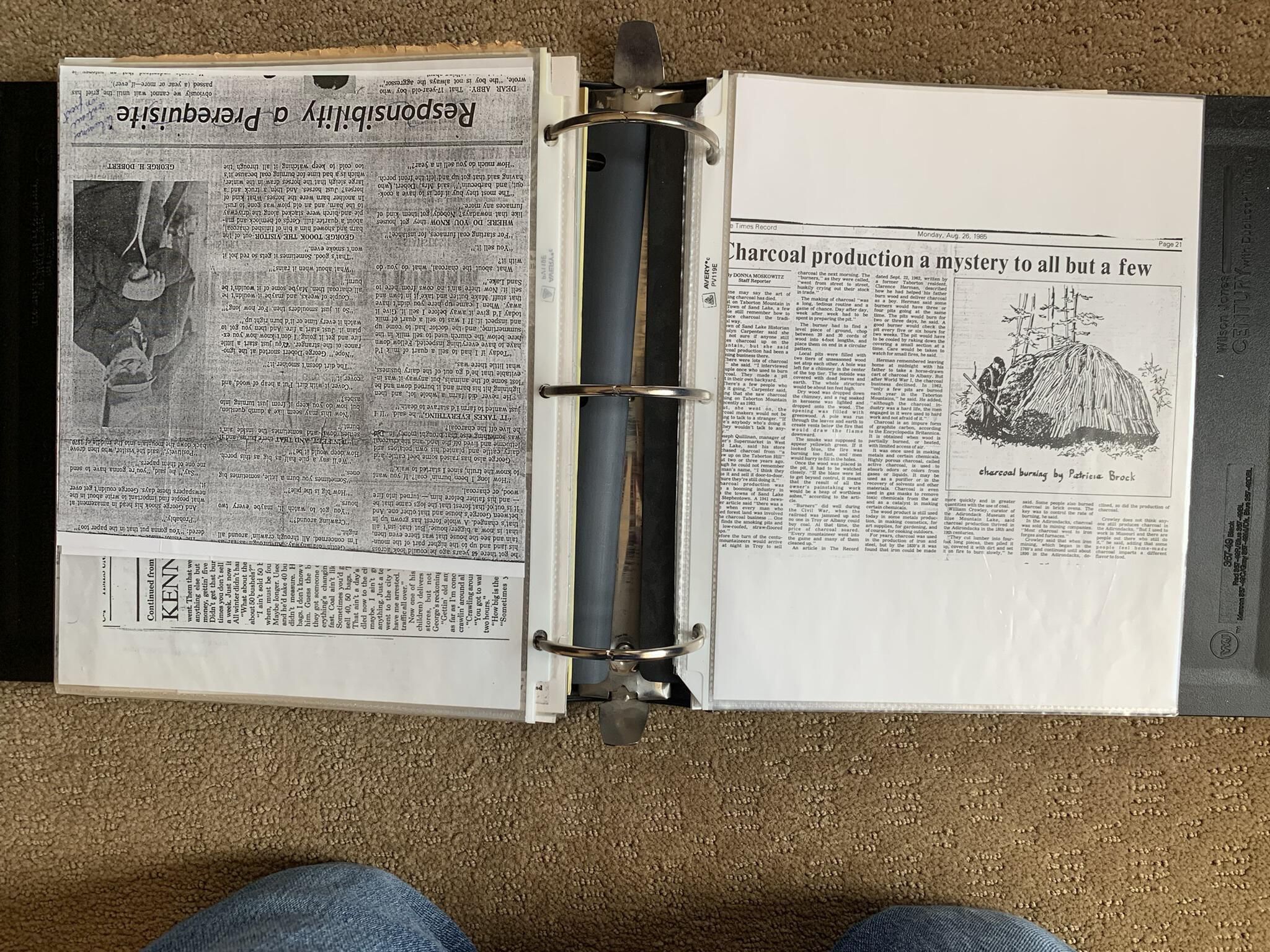 Binder of various newspaper articles, recollections, and memorabilia related to Town of Sand Lake historic hotels (particularly Crooked Lake Hotel), industry (particularly the Rensselaer Glass Factory and charcoal production), homes, churches, and the Sand Lake hamlet of Taborton. Much of the content already appears in other binders or could be obtained from online newspaper archives. Nearly all of the content consists of photocopies of original items. Several multi-page entries have been scanned to PDF and uploaded to the Informal Histories folder of this system as indicated below.Cataloged By