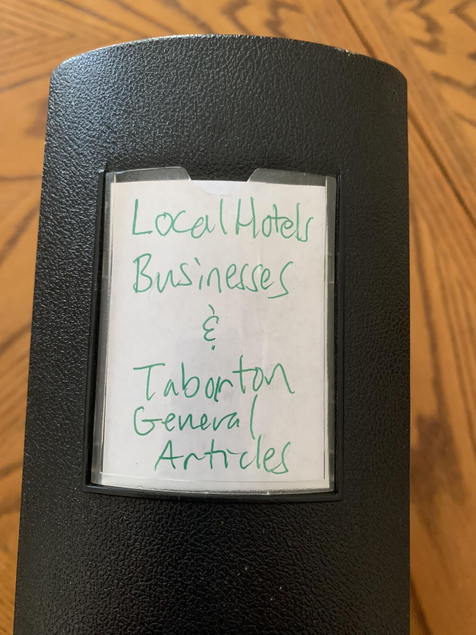 SLHS Local Hotels, Businesses, and Taborton General Articles BinderEntry/Object ID