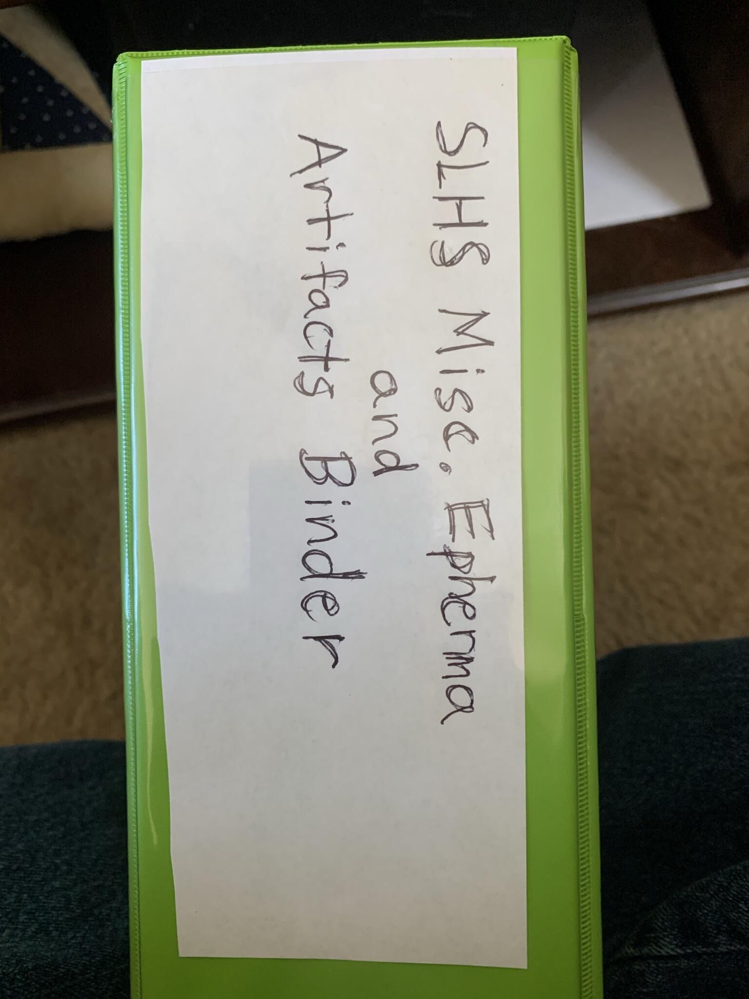 SLHS Misc. Ephemera and Artifacts binderEntry/Object ID