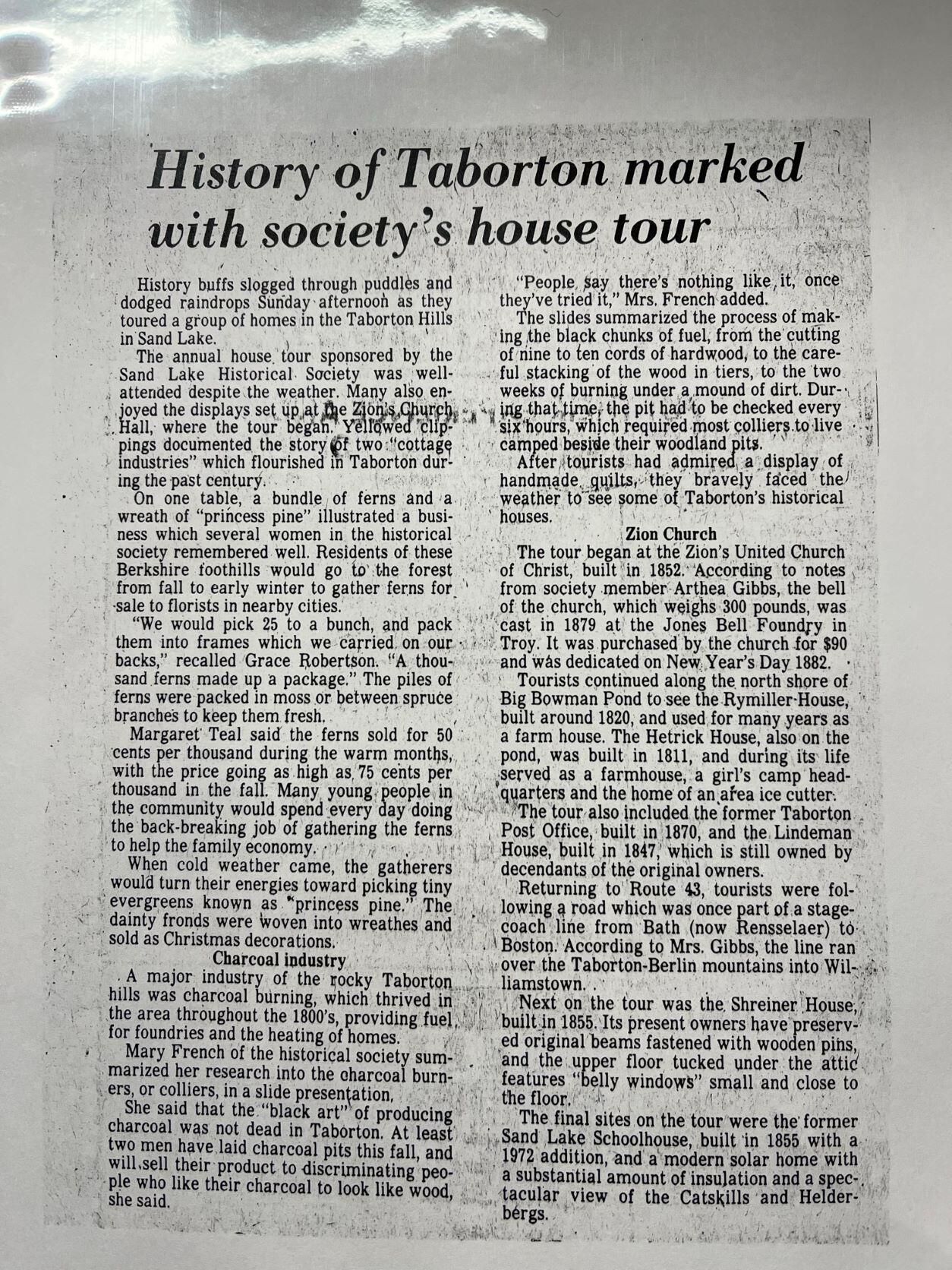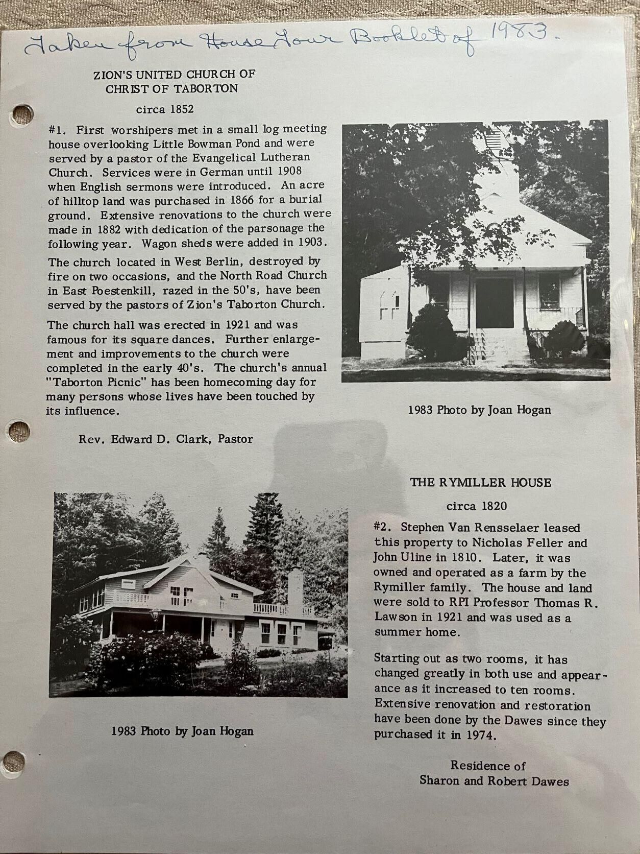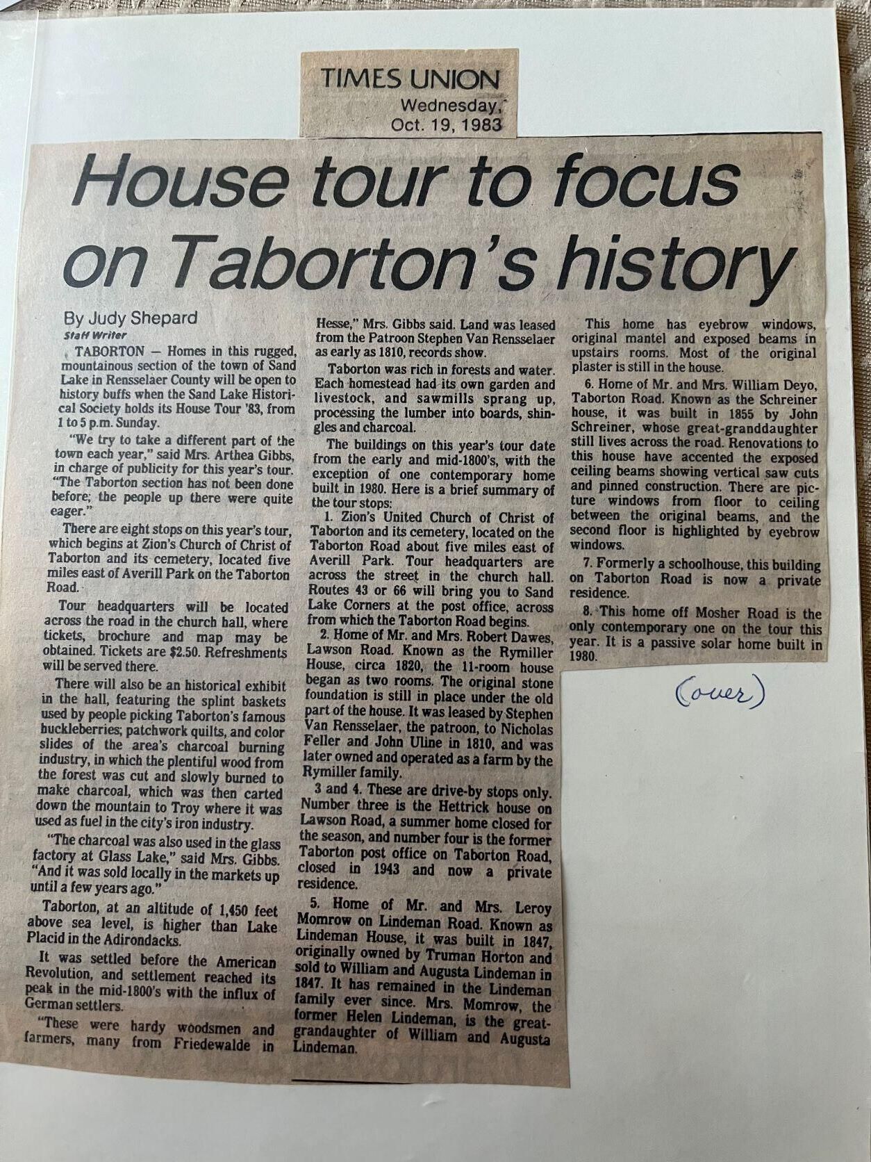 Taborton, Zion Church, Rymiller, Hetrick, Taborton Post Office, Lindeman, Schreiner, School District #9, Burridge, Times Union, Chatham CourierCollection