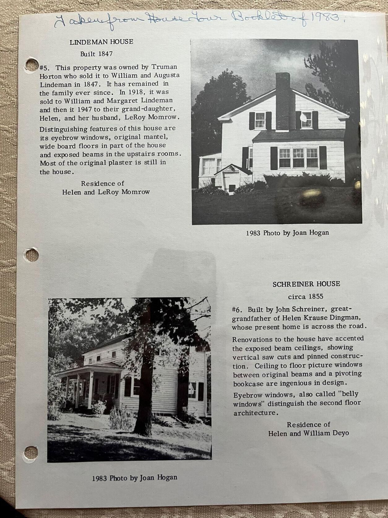 Pages from the 1983 SLHS Historical House Tour Brochure as well as local news stories and miscellaneous handwritten notes describing the neighborhood and sites on the tour.Context